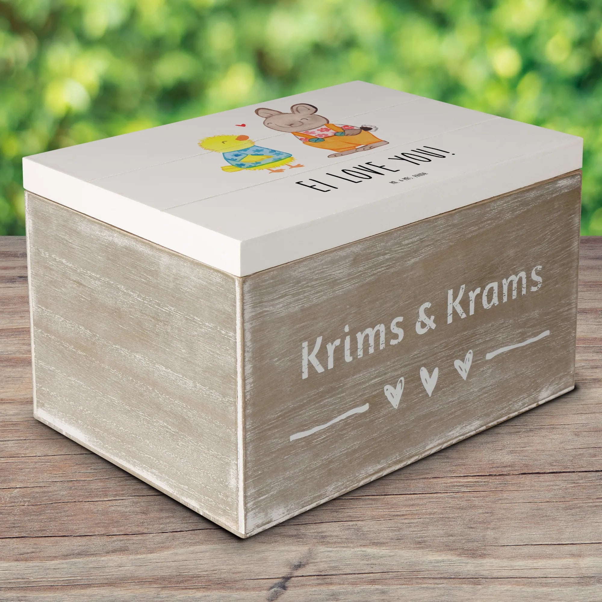 Der Slogan "Ei love you!" bringt nicht nur Ostergefühle, sondern auch die Botschaft von Freundschaft und Liebe in jedes Wohnzimmer. Ideal für die Aufbewahrung von besonderen Schätzen, Erinnerungen, Fotos oder als nachhaltige Geschenkbox für die Liebsten. Wenn du nach einer einzigartigen Erinnerungskiste suchst, die bei festlichen Anlässen wie Ostern, Kommunion oder Konfirmation glänzt, dann ist diese Dekokiste genau das Richtige für dich!