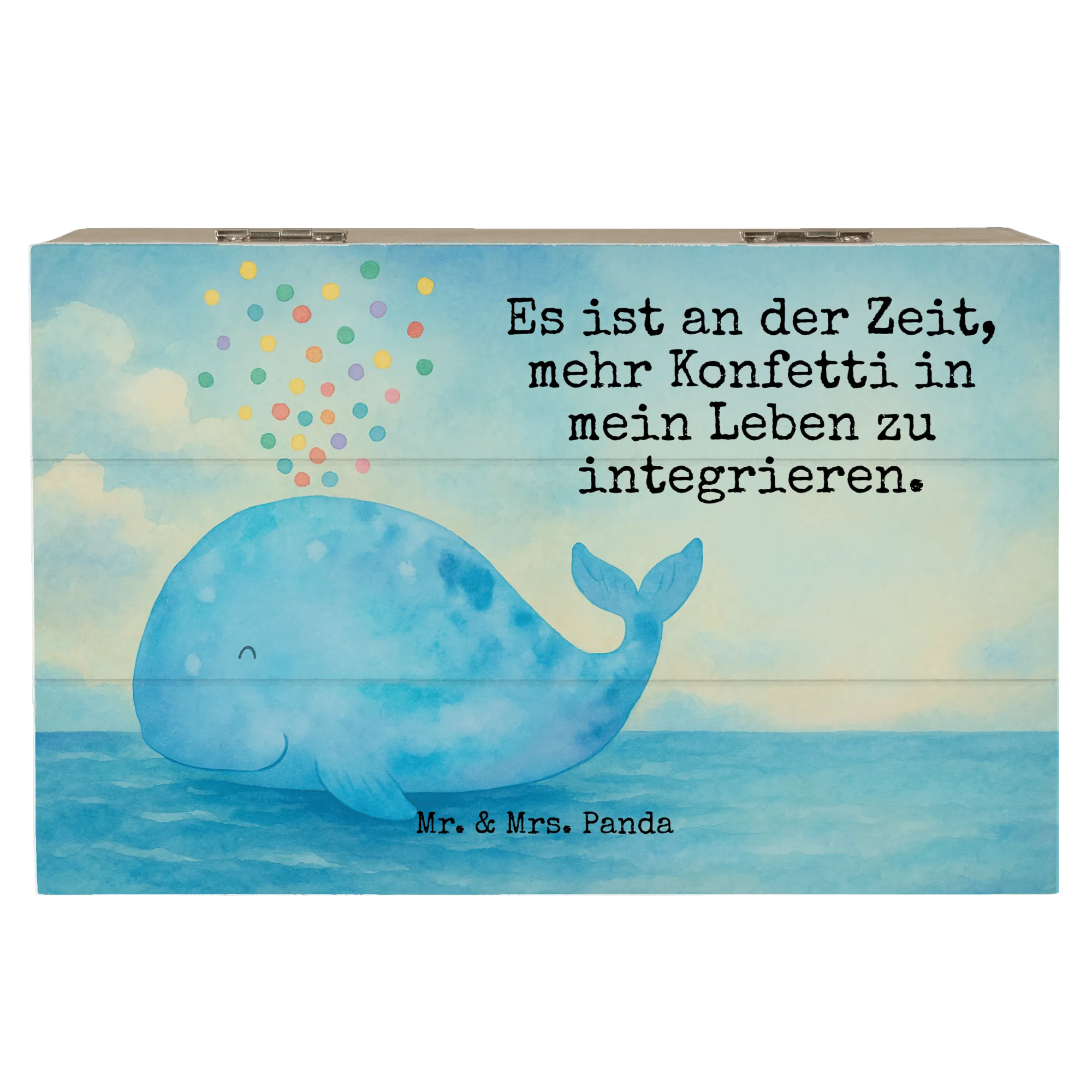 Skrzynia drewniana wieloryb konfetti Design - 22 x 15 cm - z napisem