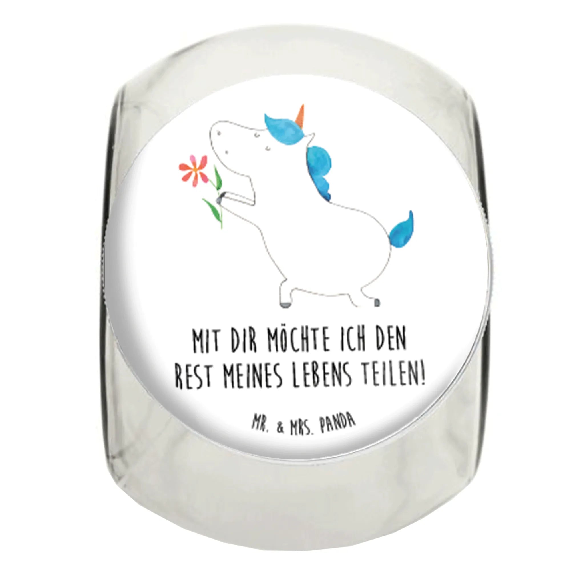 Die Einhorn-Kollektion von Mr. & Mrs. Panda steht für liebevoll handgezeichnete Motive, die nicht nur Kinderherzen höher schlagen lassen. Das zauberhafte Design des Einhorns mit der Blume bringt die Fantasie in deinen Alltag und ist ein liebes Geschenk für alle, die das Besondere schätzen. Lass deiner Kreativität freien Lauf: Fülle das Glas mit bunten Süßigkeiten, Tee oder sogar Gewürzen und mache so jemandem eine riesige Freude!