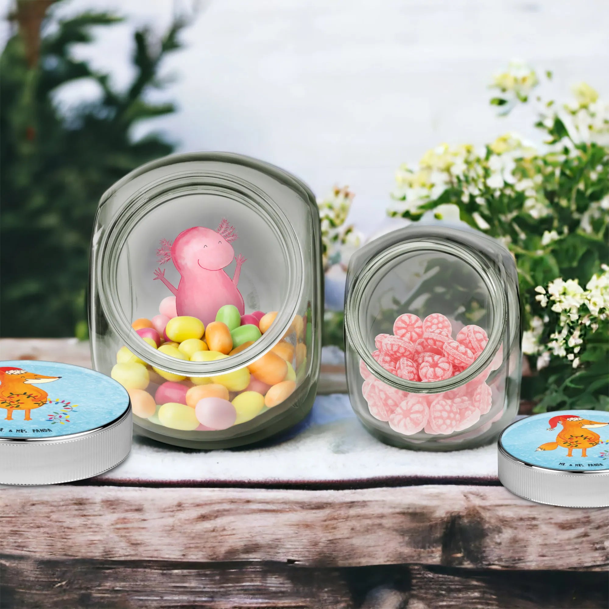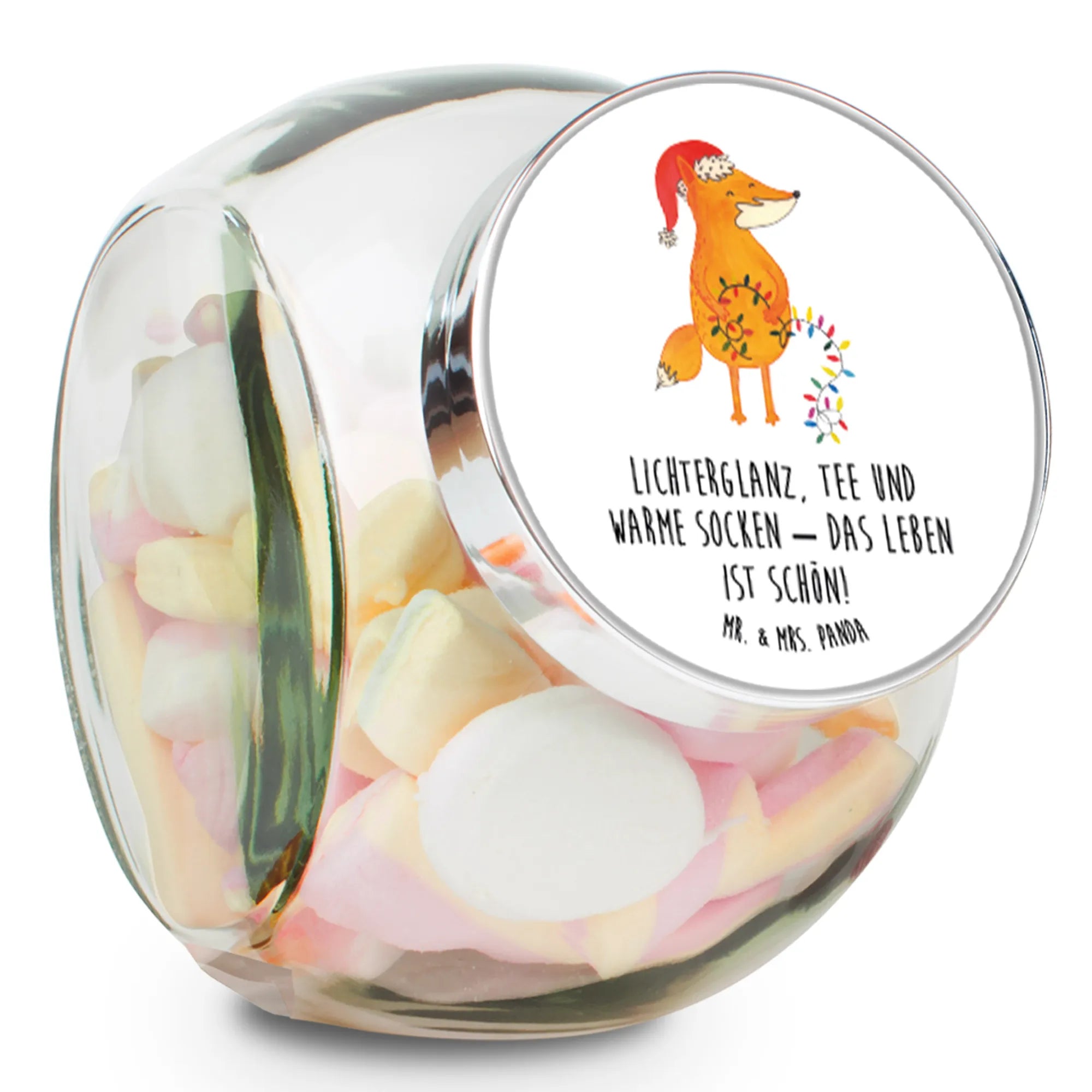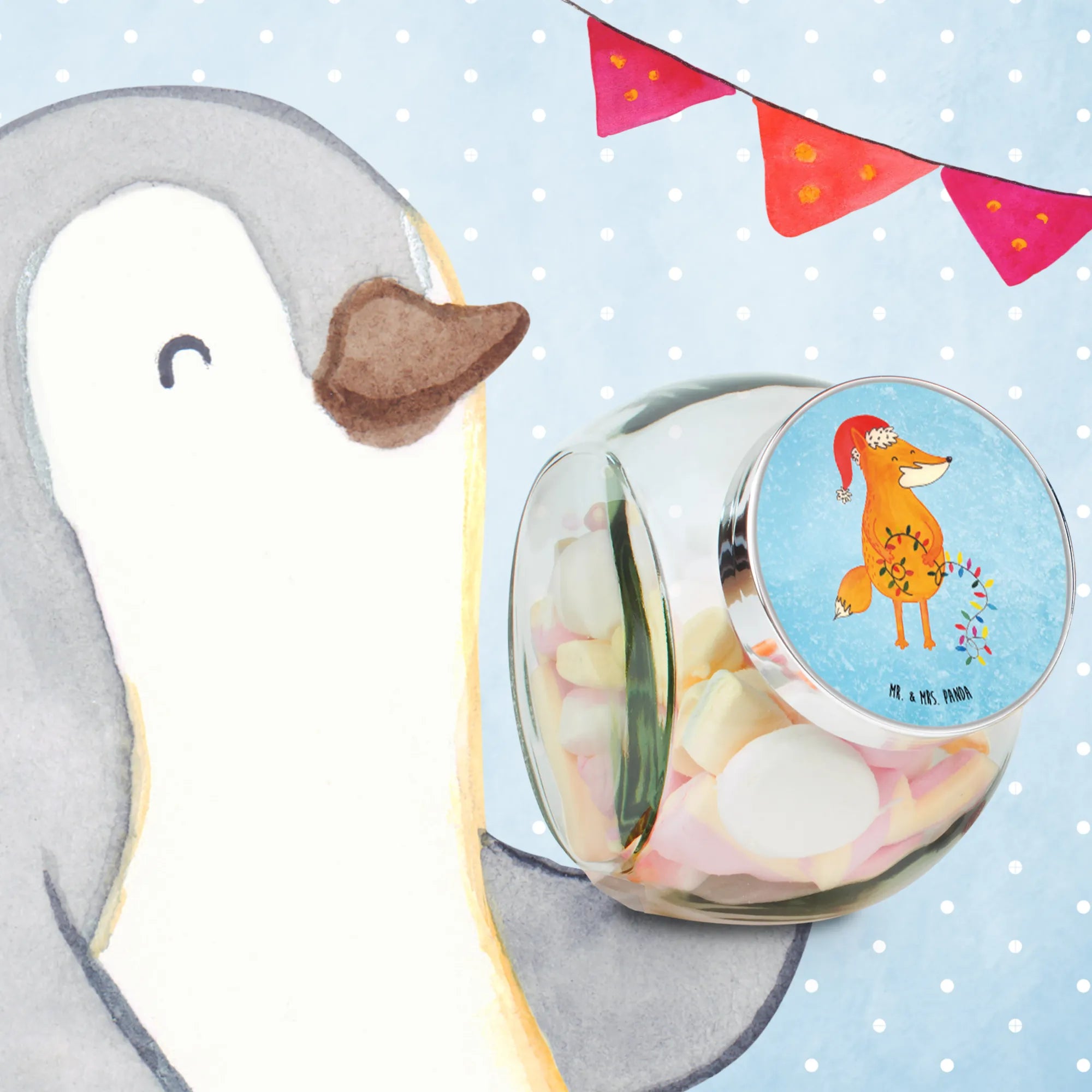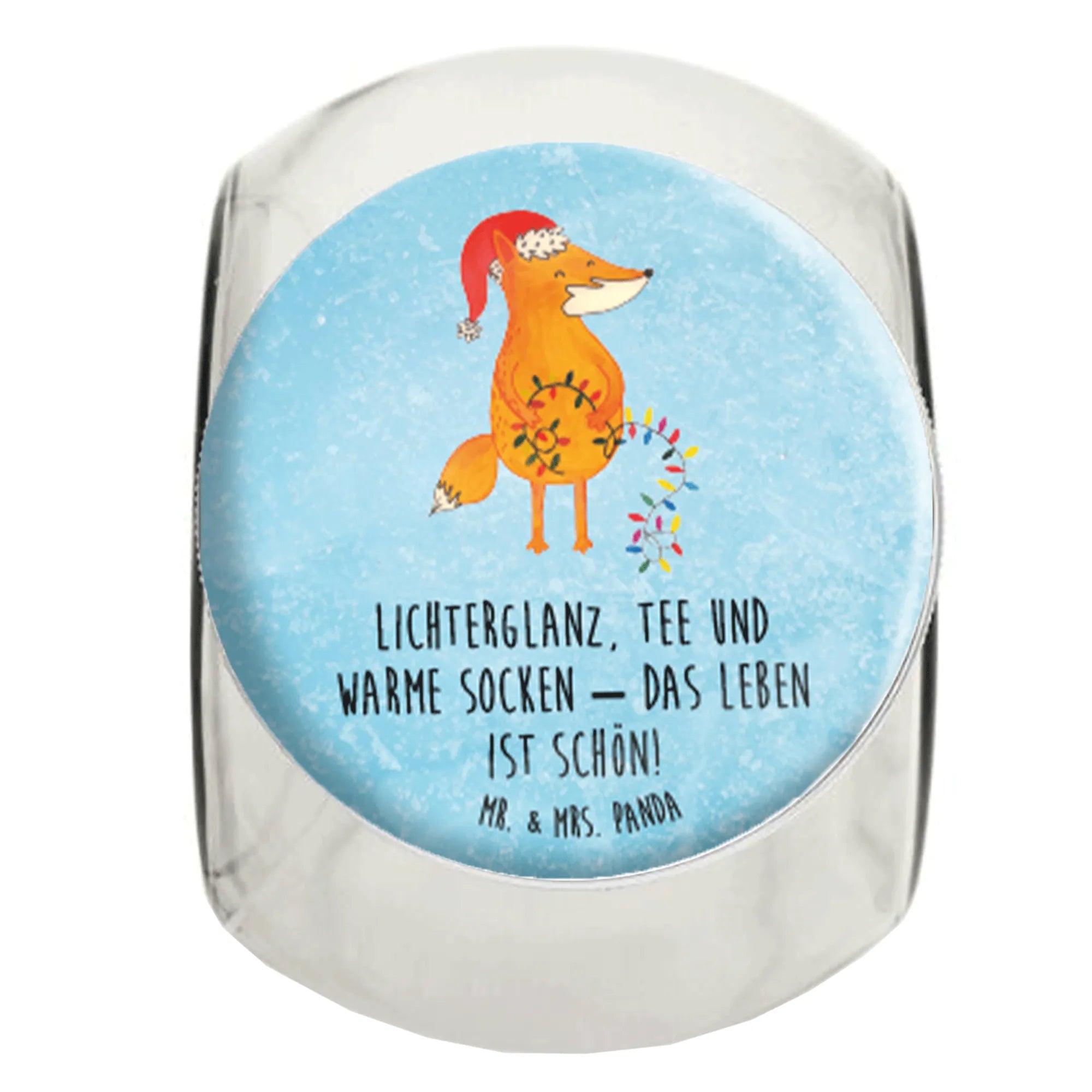 Słoik na cukierki lis Boże Narodzenie - XL 2000ml - z napisem - lodowoniebieski