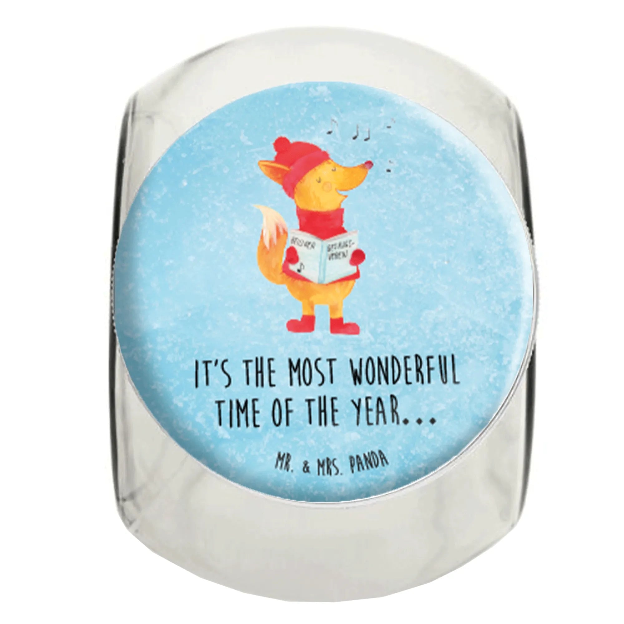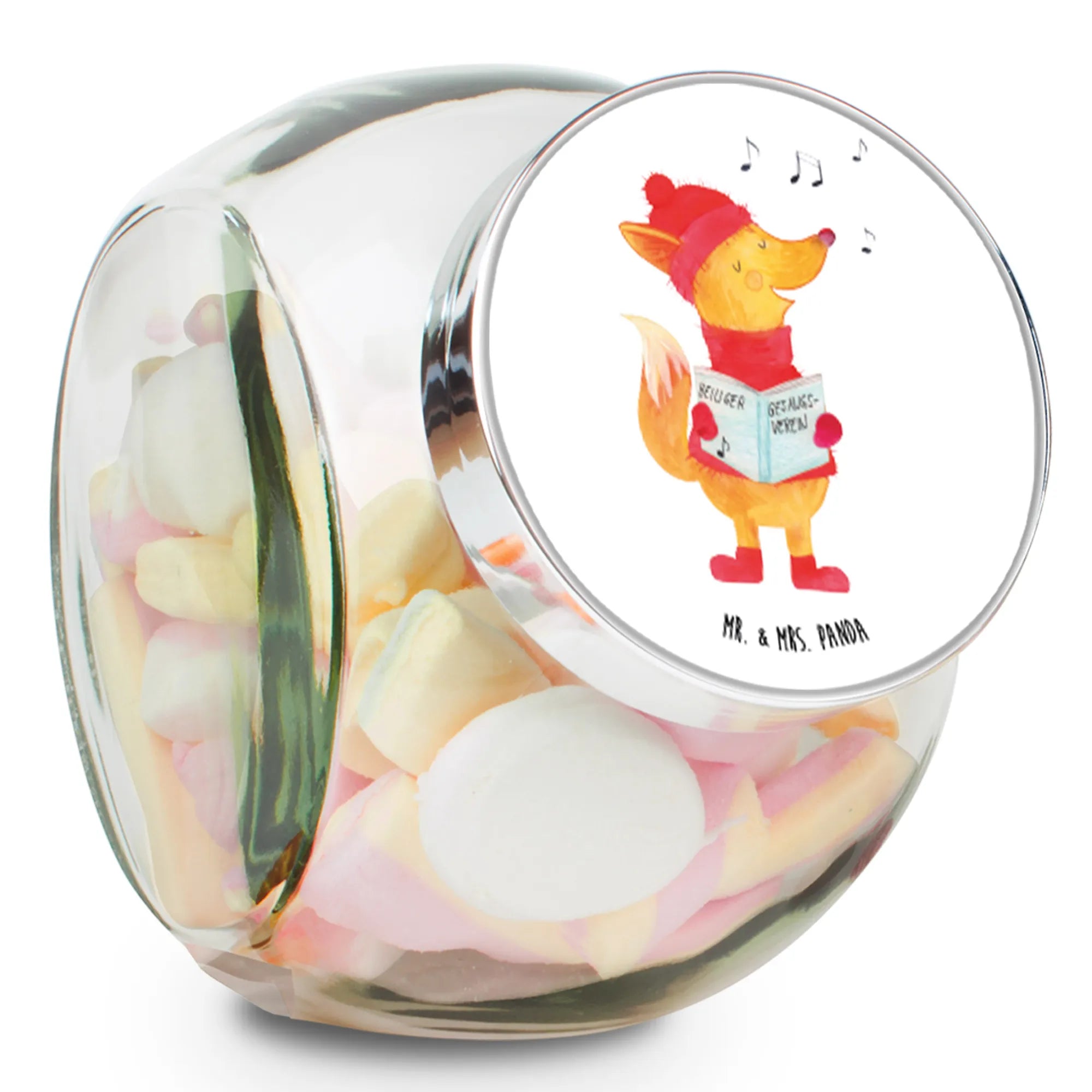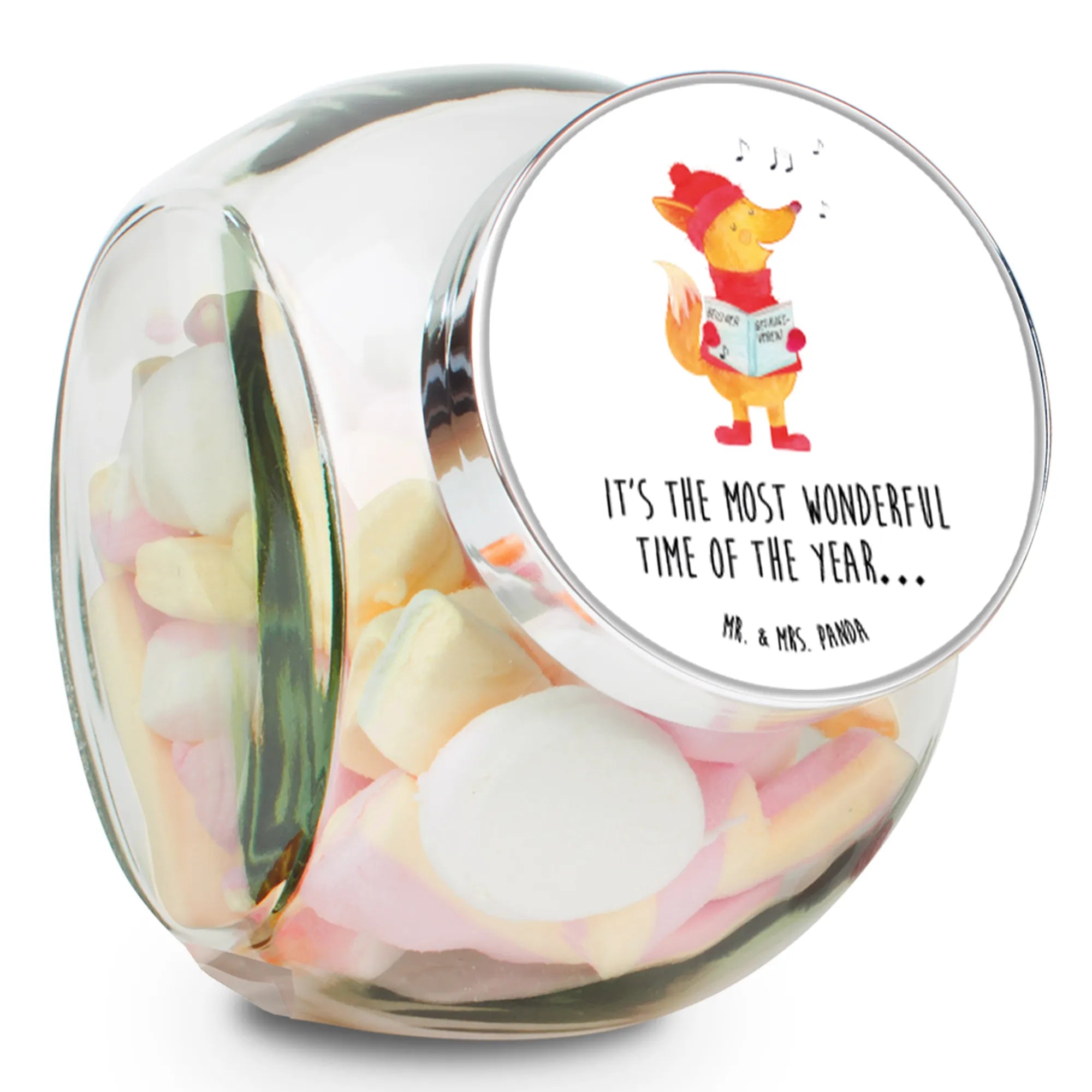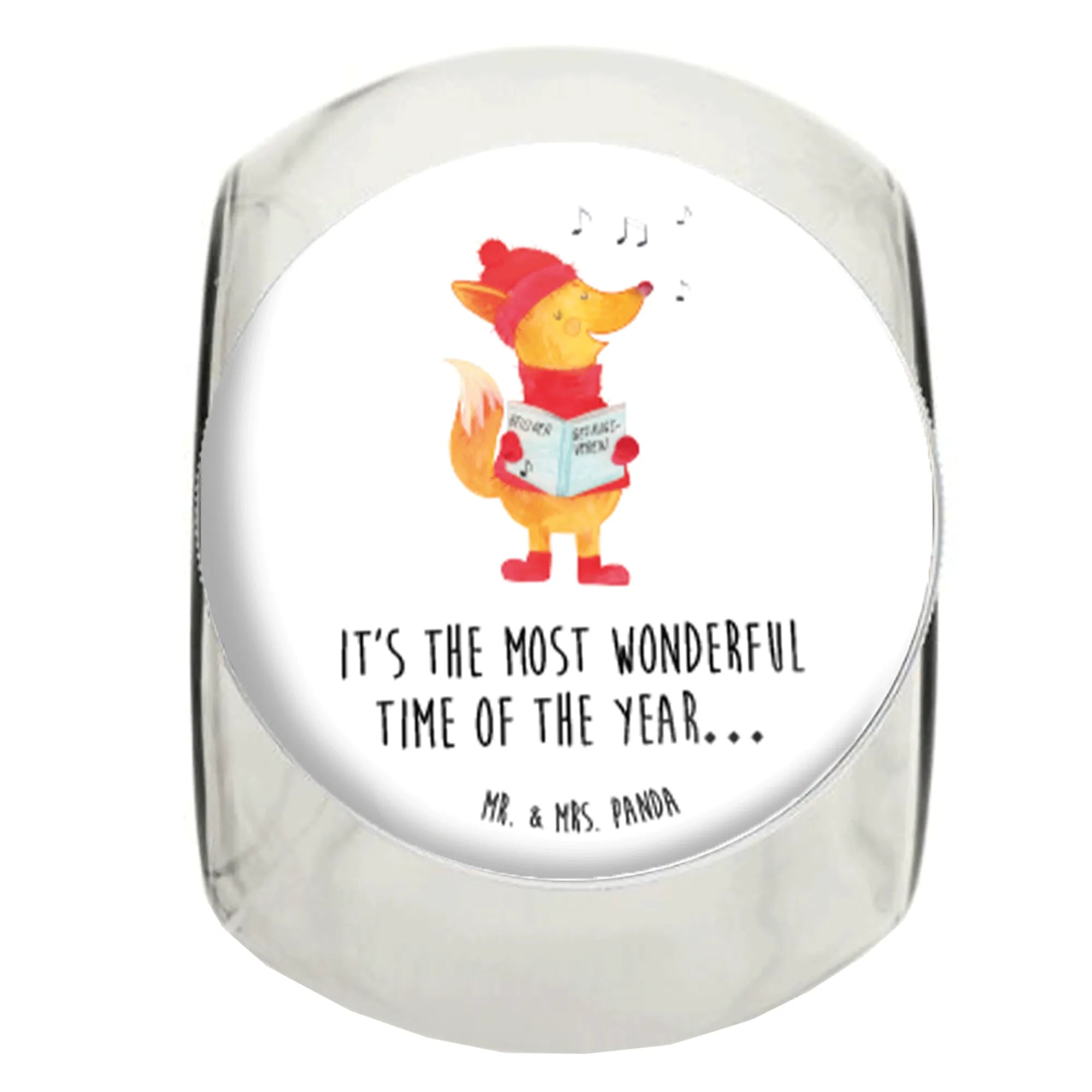 Das wunderschöne Bonbonglas von Mr. & Mrs. Panda mit dem fröhlichen Motiv des Fuchs Sängers aus unserer Winter Kollektion ist das perfekte Geschenk für alle, die die Weihnachtszeit lieben! Mit einem Füllvolumen von 2000 ml bietet es ausreichend Platz für all deine Lieblingsleckereien wie Bonbons, Kekse, Müsli, Tee oder Gewürze.