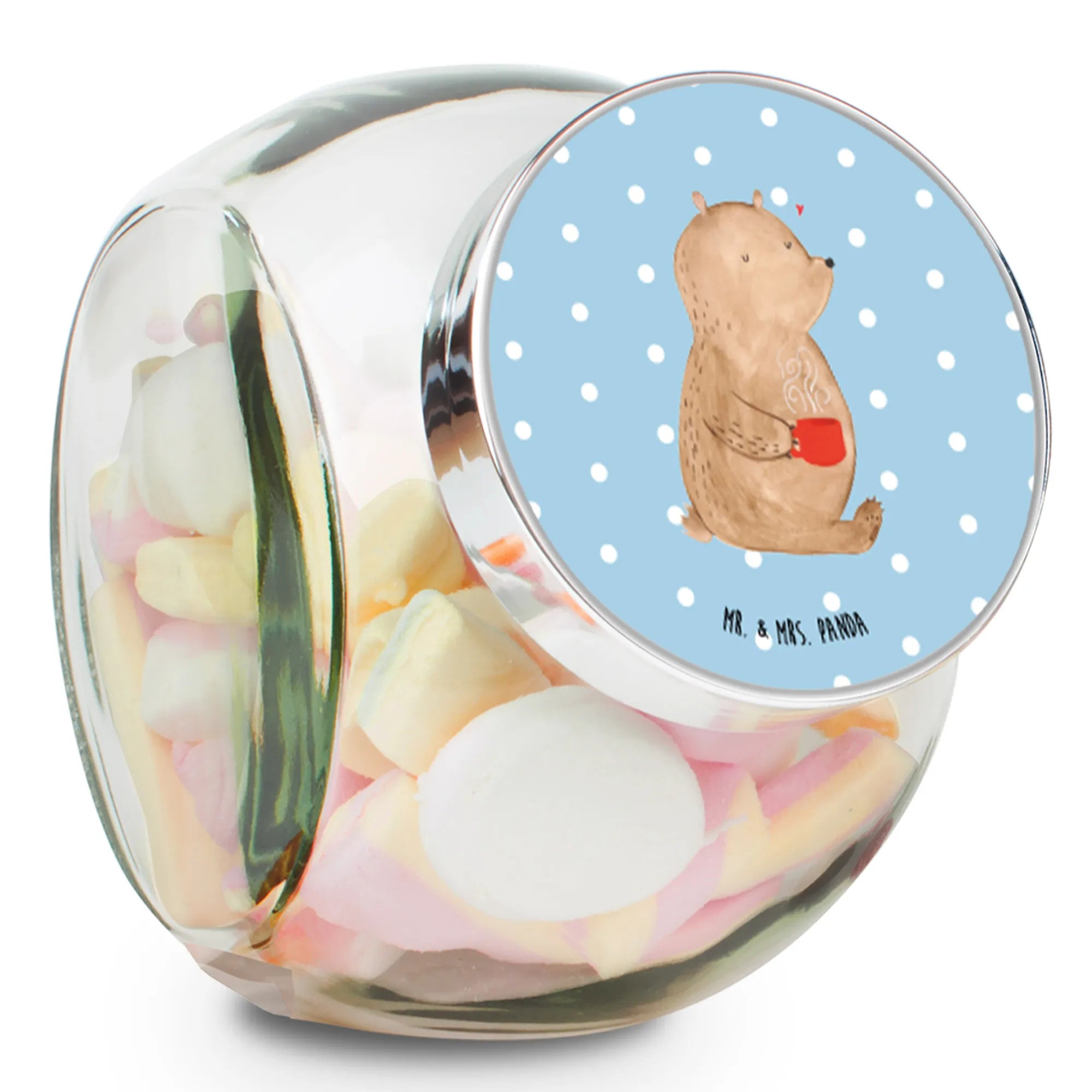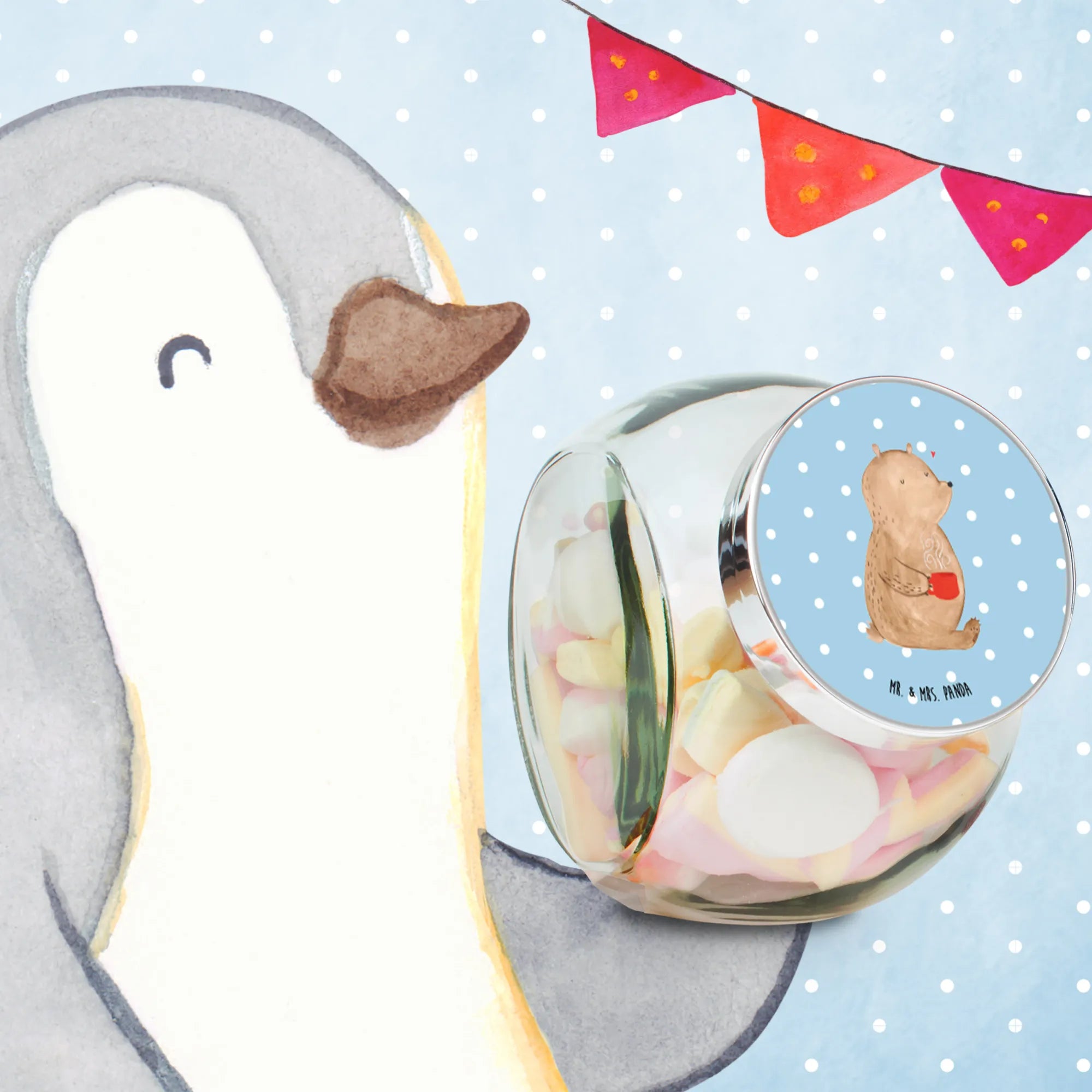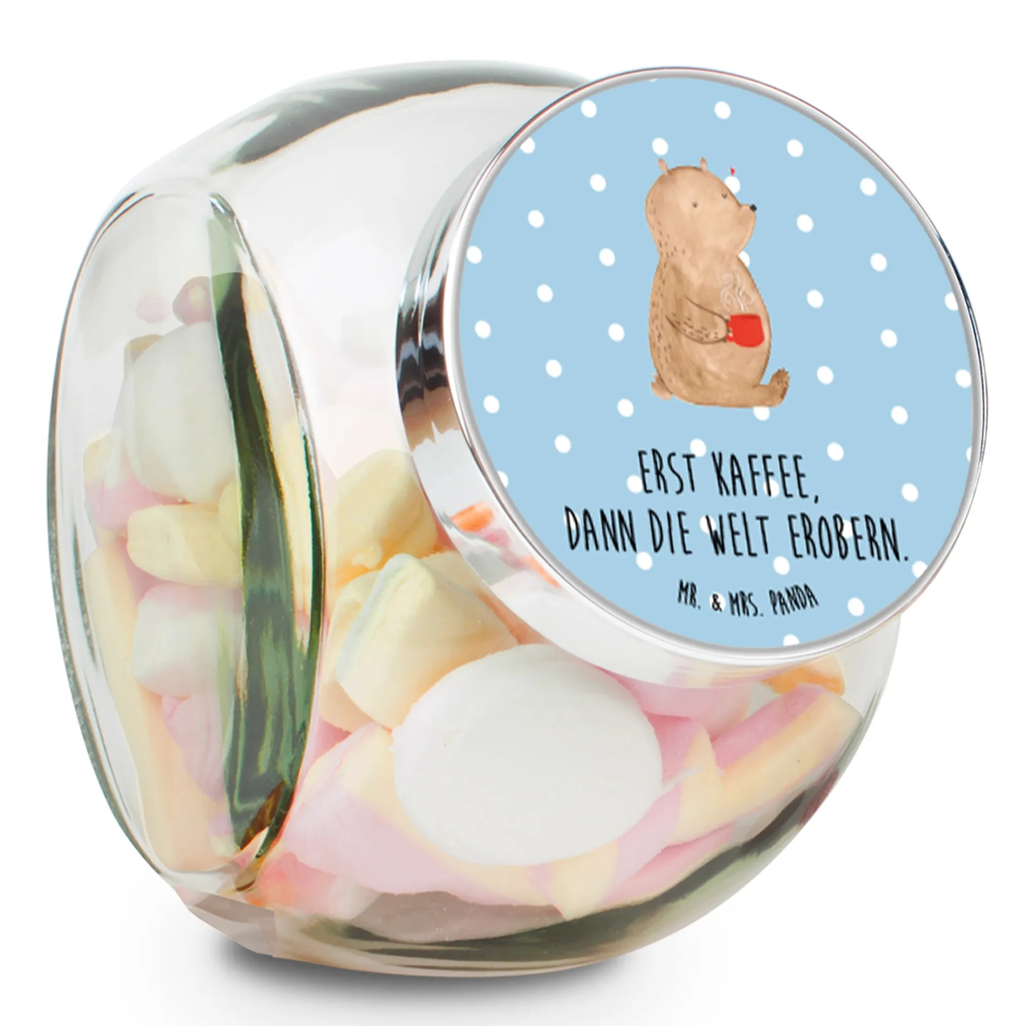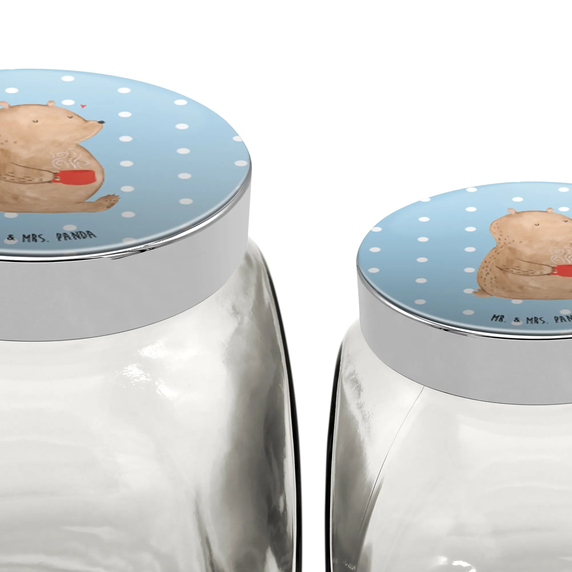 Das wunderschöne Bonbonglas von Mr. & Mrs. Panda mit dem niedlichen Bär Kaffee-Motiv ist der perfekte Begleiter für all deine Süßigkeiten und Snacks! Egal ob Kekse, Bonbons, Kaffee oder Tee – dieses Vorratsglas hält alles frisch und aromatisch. Mit einem Volumen von 2000 ml bietet es ausreichend Platz für all deine Lieblingsleckereien.