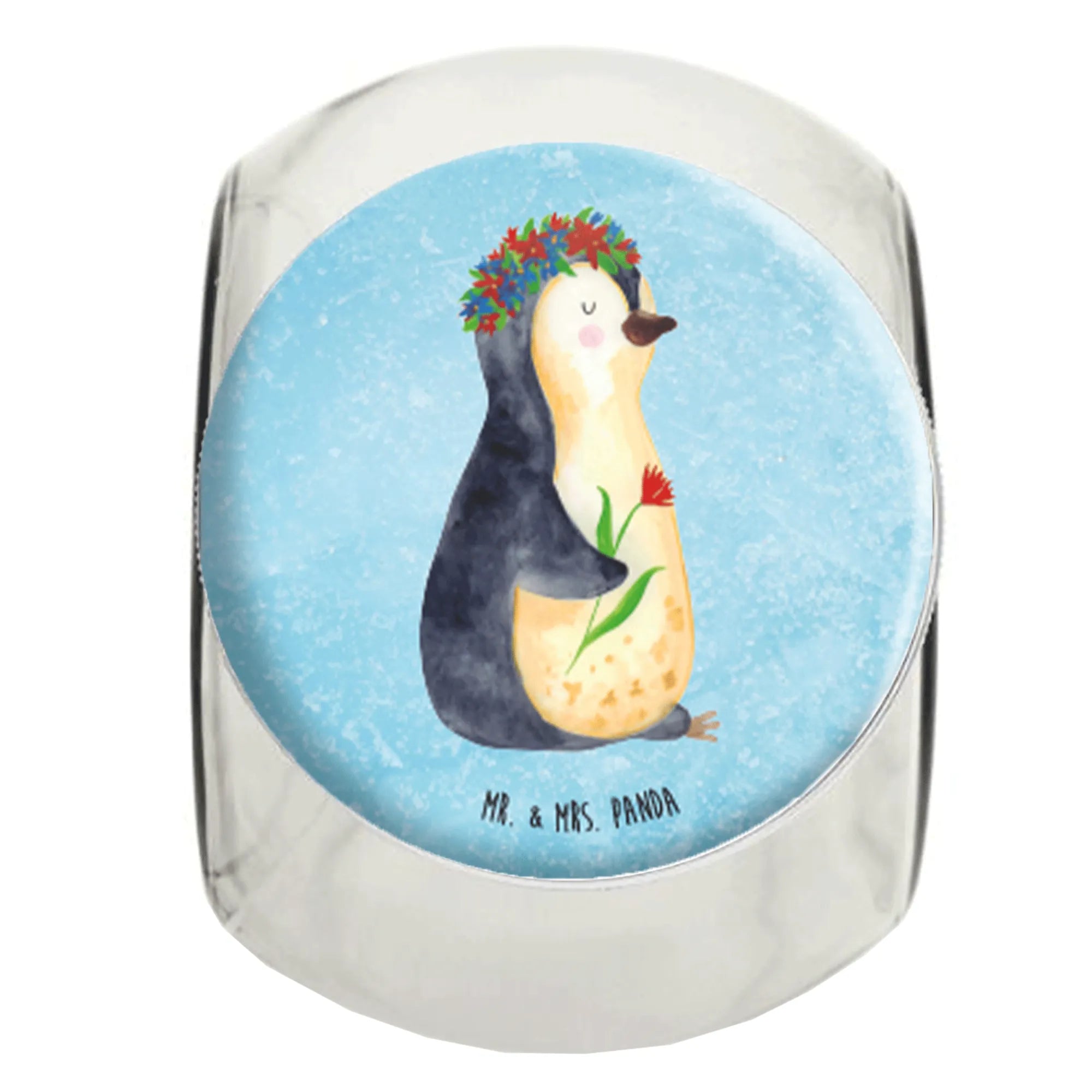 Słoik na cukierki pingwin kwiaty - L 870ml - z napisem - biały