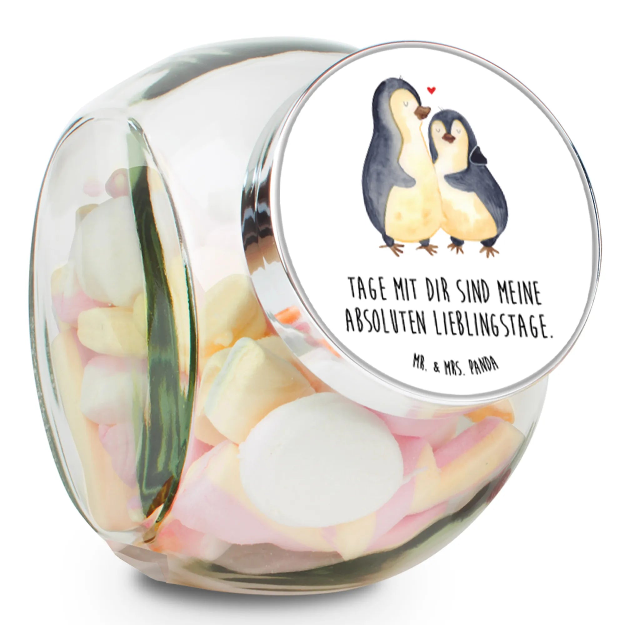 Słoik na cukierki Pingwin przytulać - L 870ml - z napisem - biały