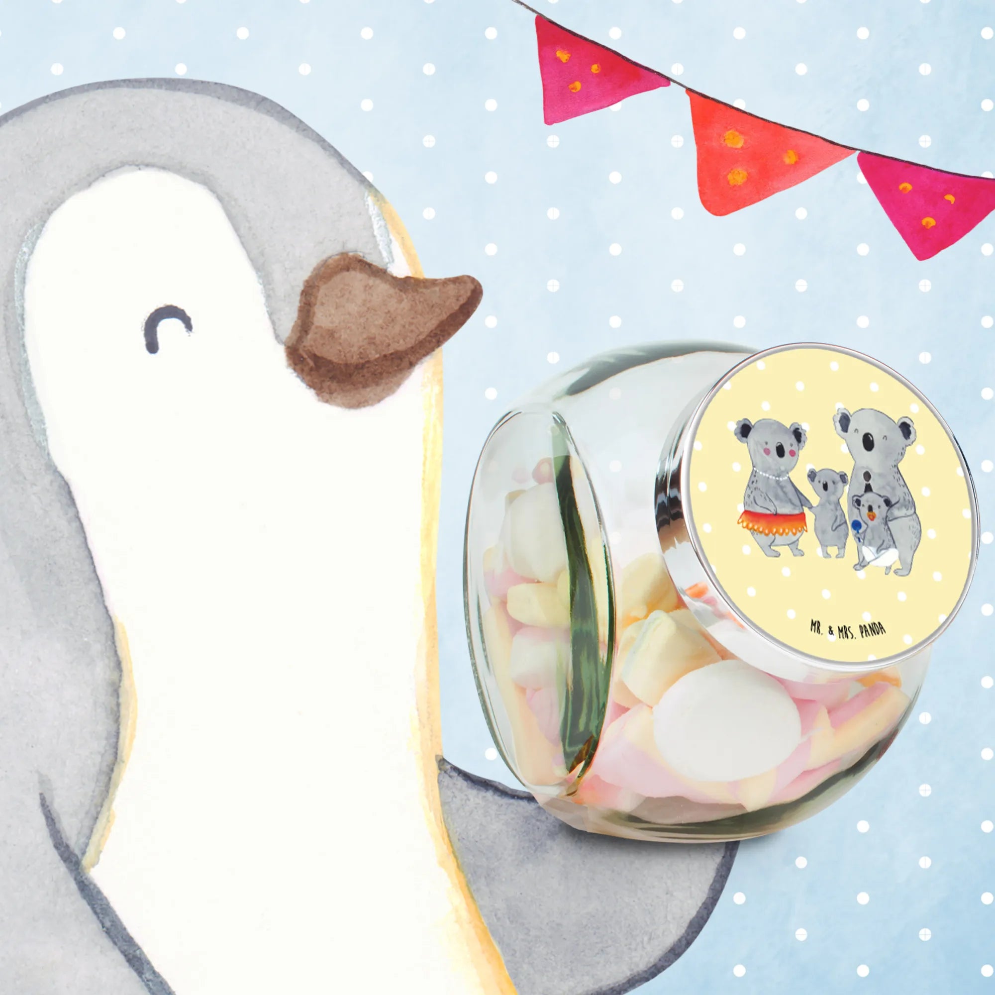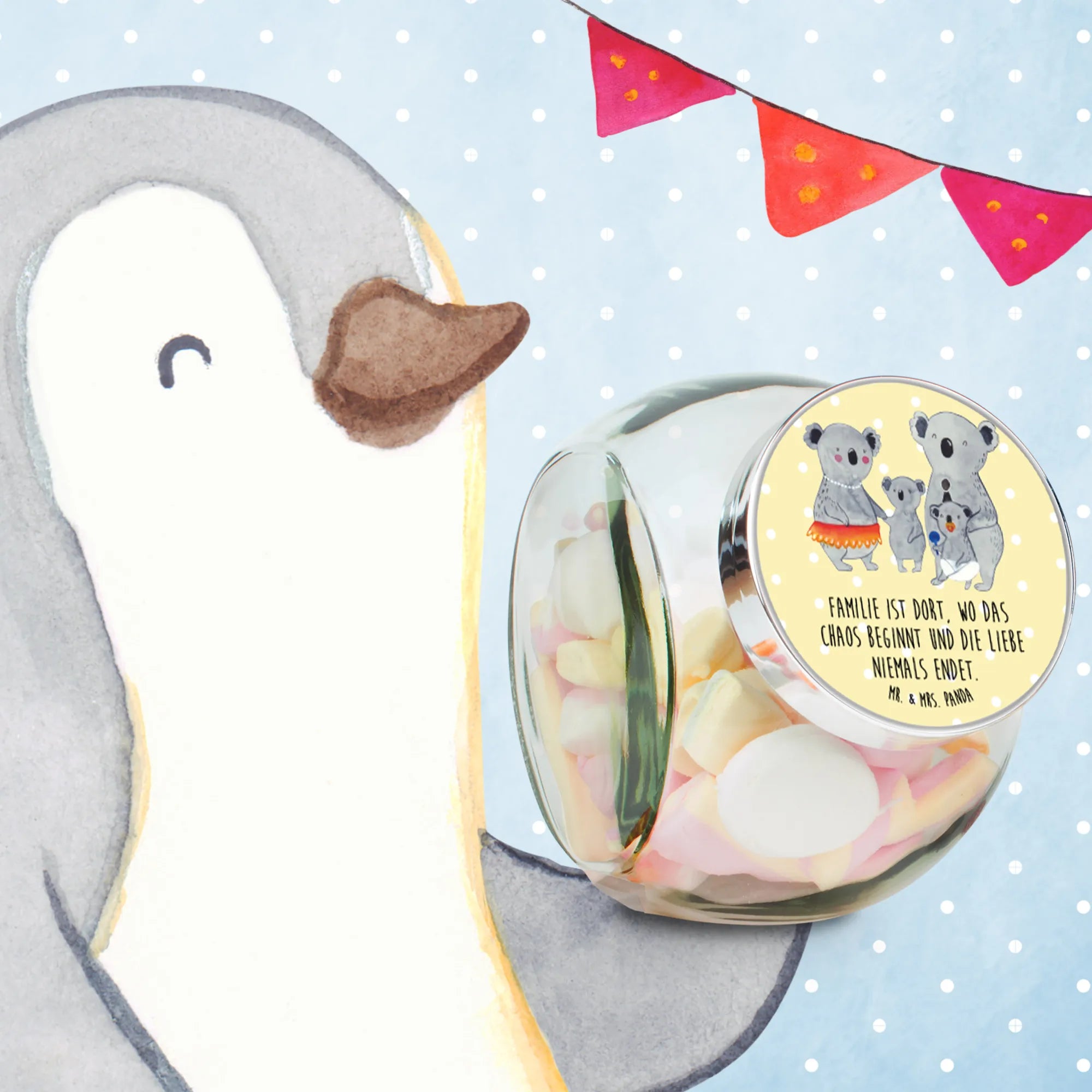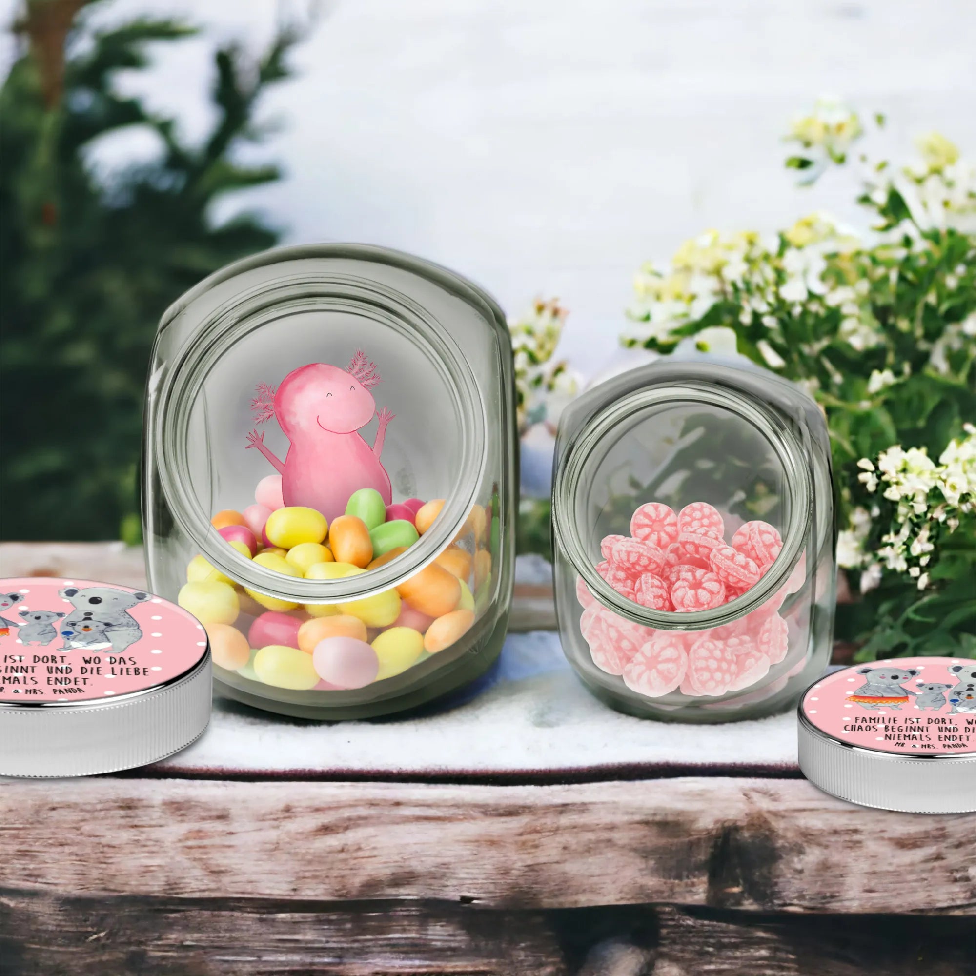 Słoik na cukierki Rodzina koali - L 870ml - z napisem - Pastelowy szary