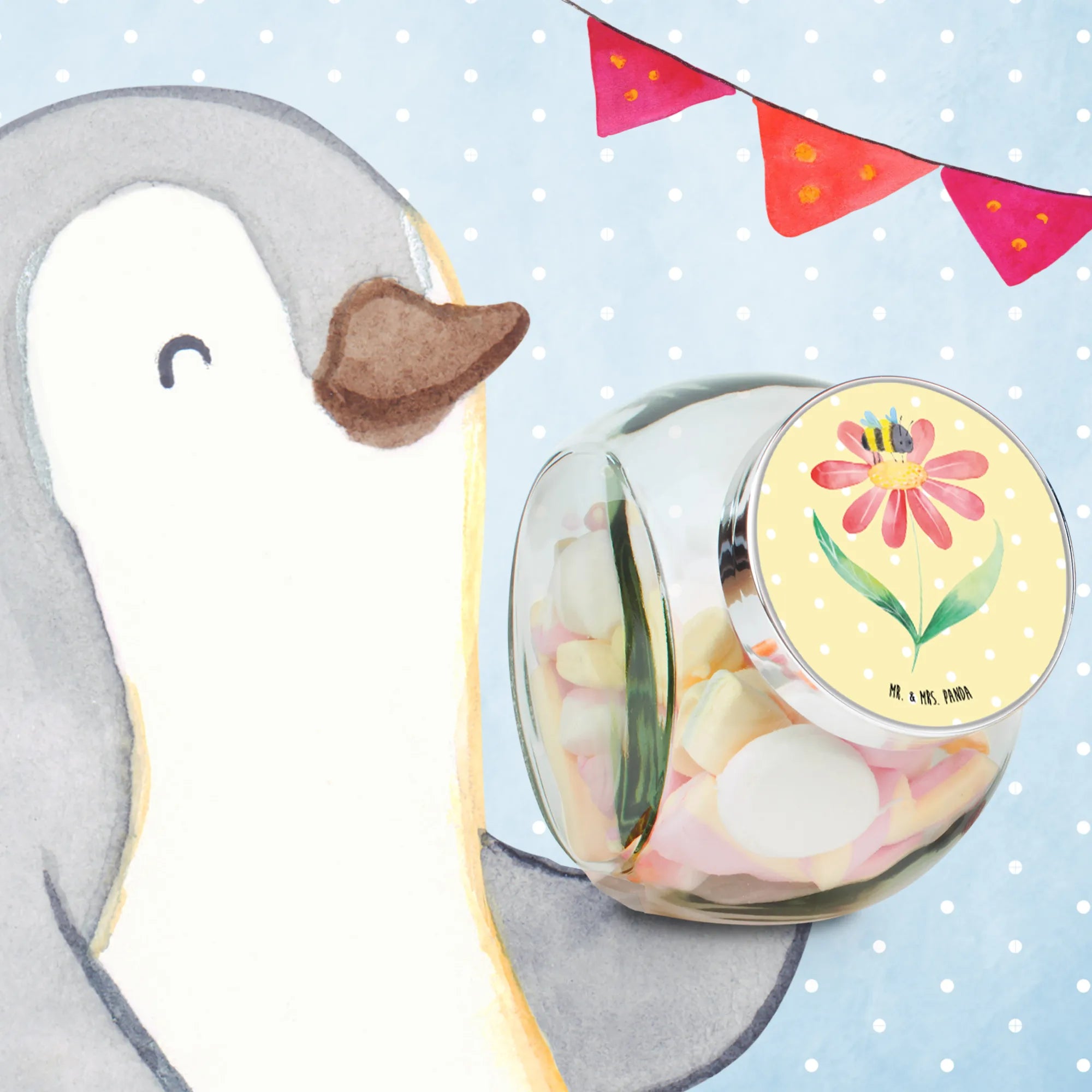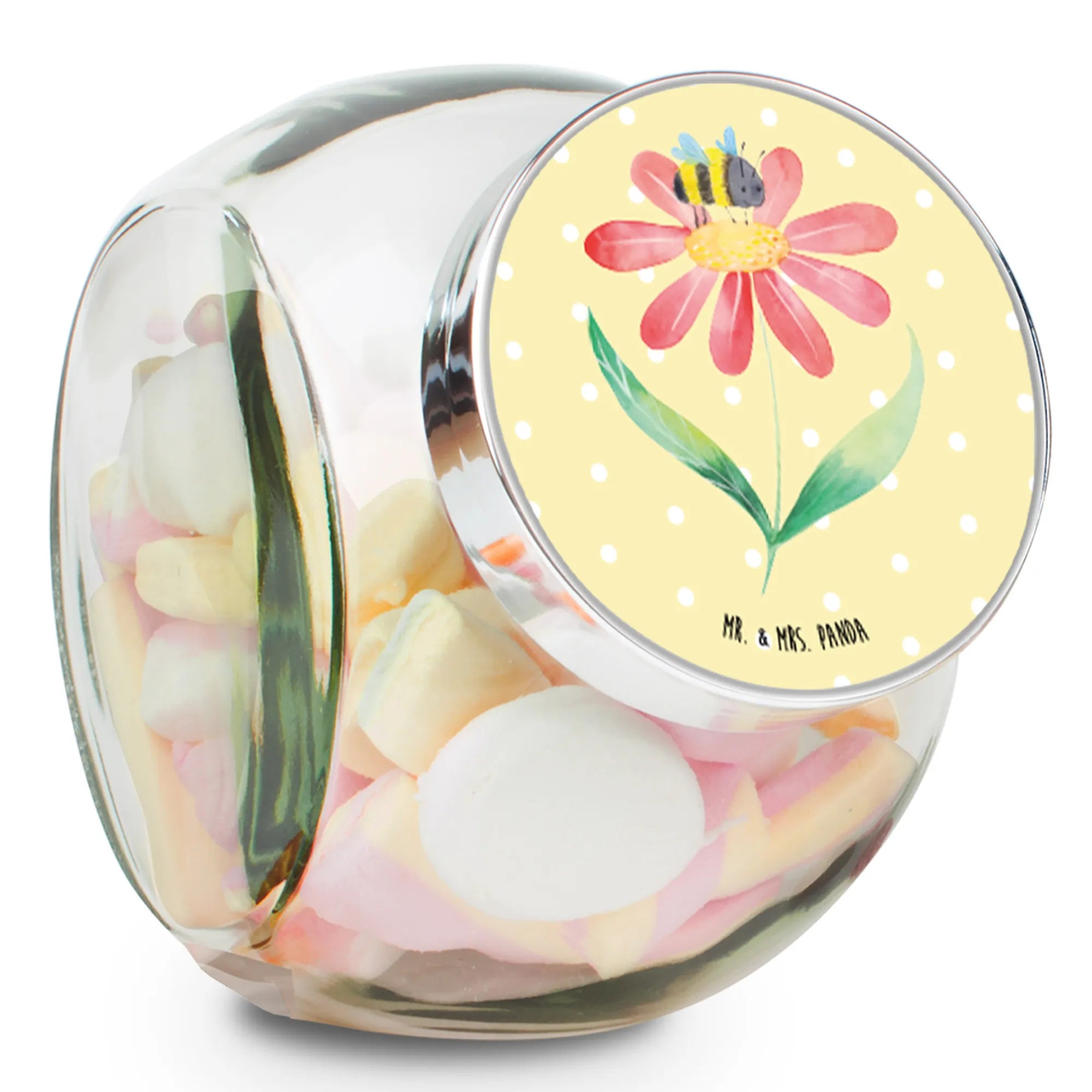 Słoik na cukierki trzmiel kwiat - XL 2000ml - z napisem - biały