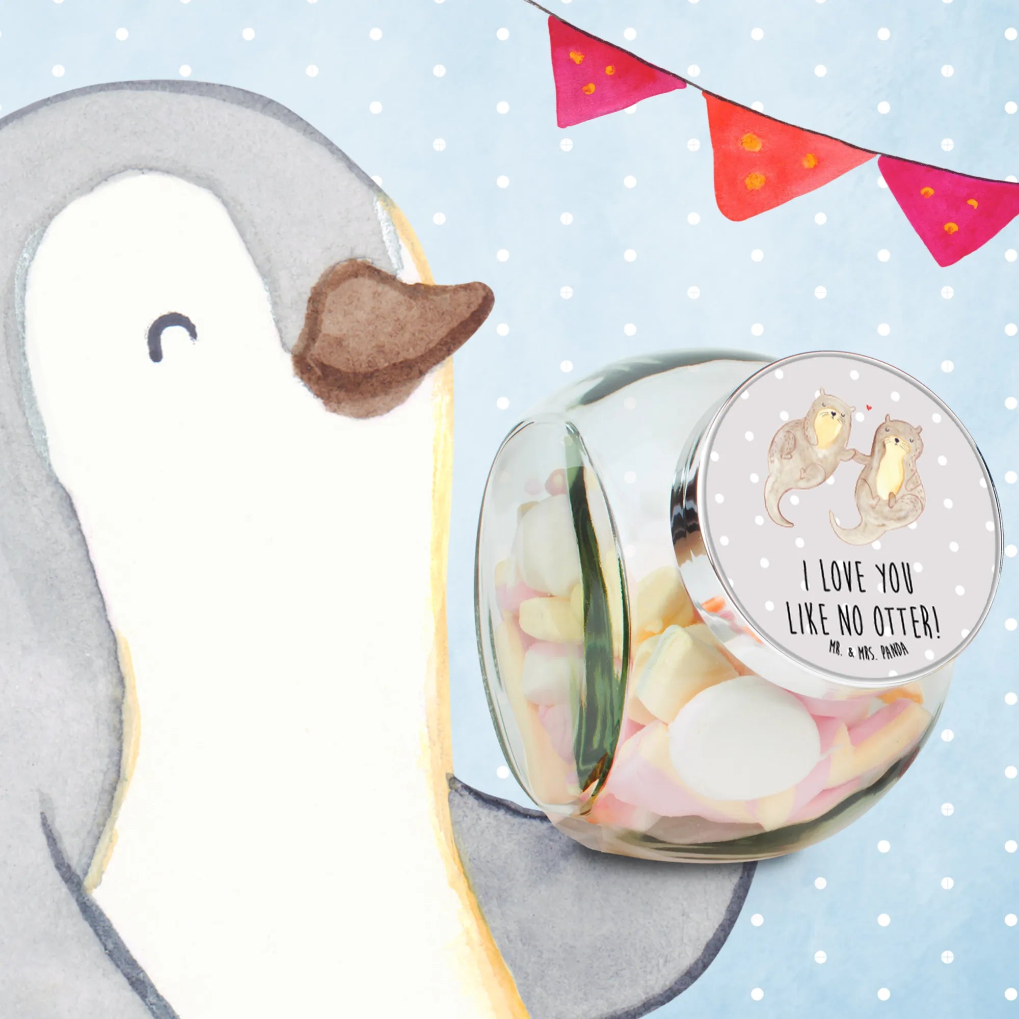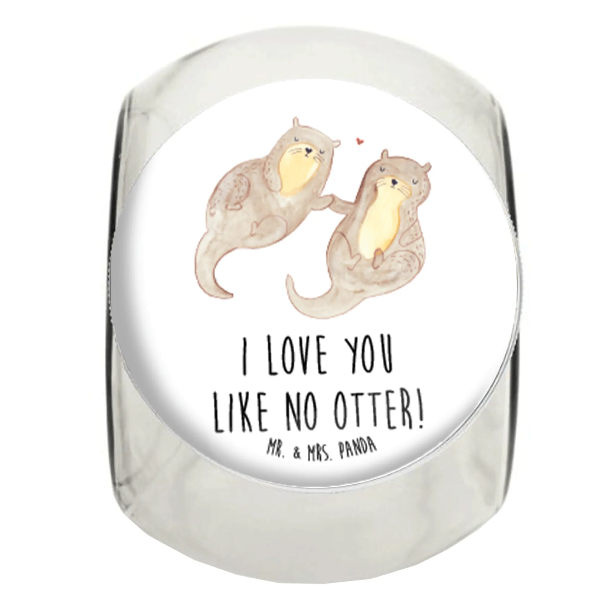 Entdecke das wunderschöne Bonbonglas mit dem bezaubernden Motiv "Otter händchenhaltend" aus der exklusiven Otter-Kollektion von Mr. & Mrs. Panda! 🦦 Dieses liebevoll gestaltete Glas ist nicht nur ein echter Blickfang in Deiner Küche, sondern auch perfekt geeignet für Süßigkeiten, Kekse, Tee oder Gewürze. Hergestellt aus hochwertigem Glas und versehen mit einem stabilen Kunststoffdeckel, sorgt das Bonbonglas dafür, dass Deine Leckereien immer frisch und aromatisch bleiben. Mit einem Füllvolumen von 870 ml hast du ausreichend Platz für all Deine Lieblingssnacks!