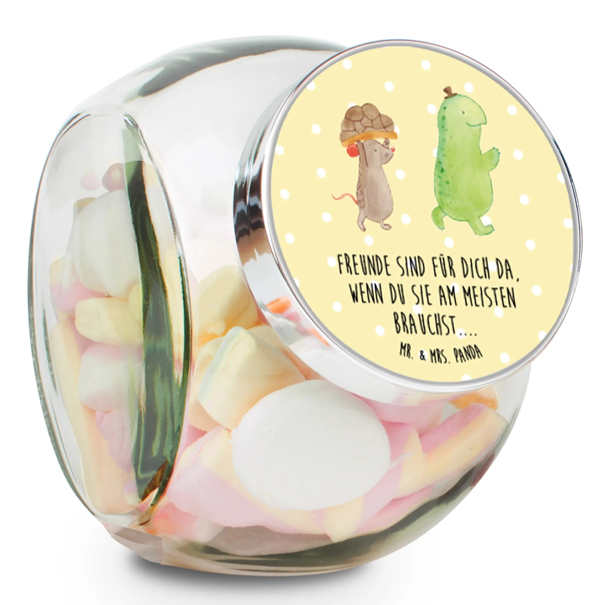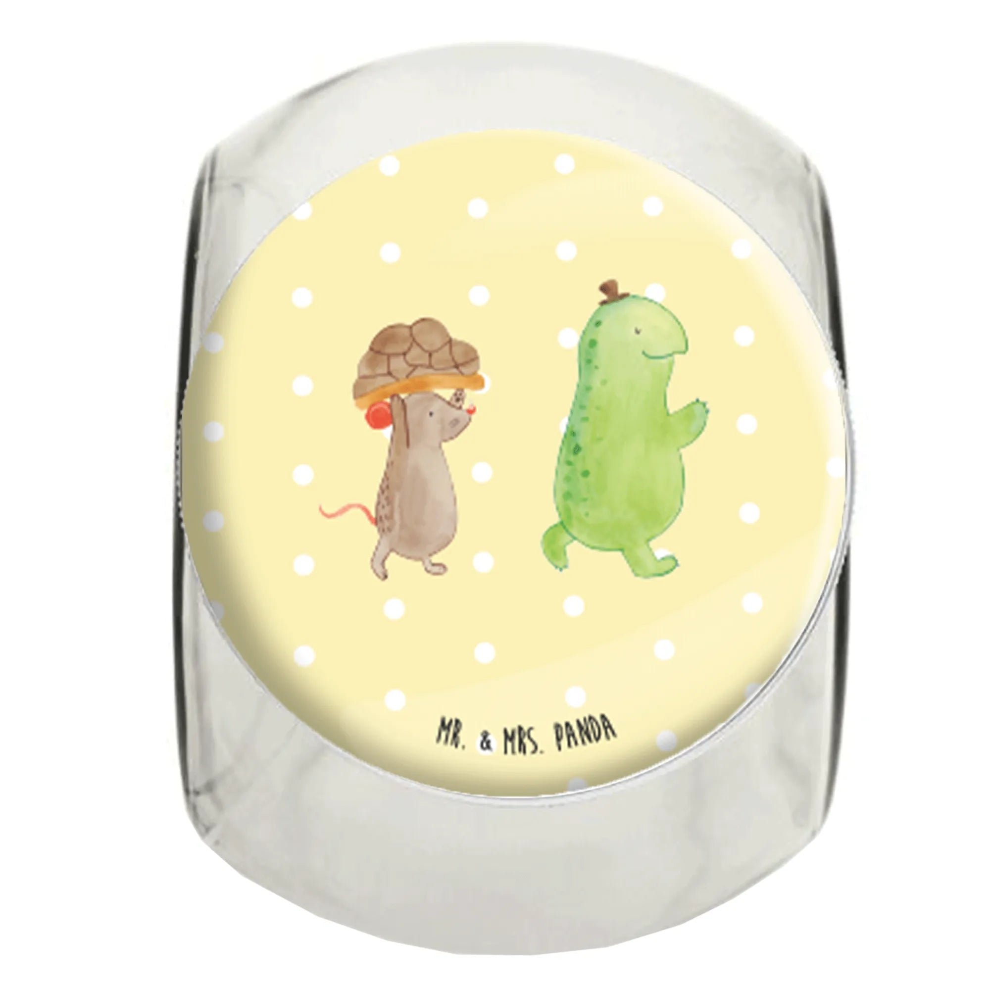 Słoik na cukierki żółw mysz - L 870ml - z napisem - Pastelowy żółty