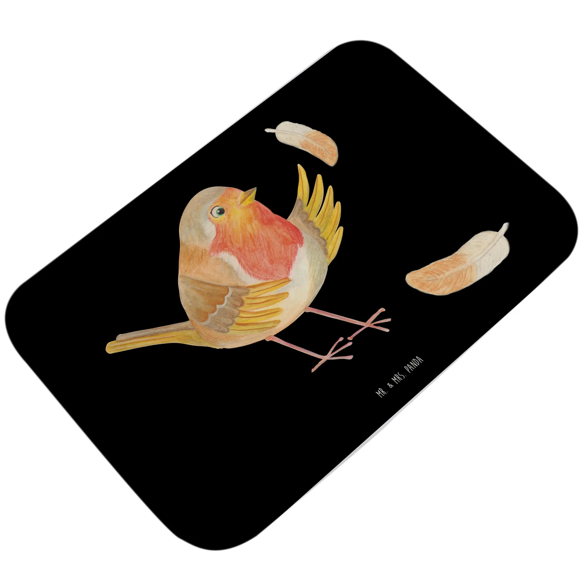 dywanik łazienkowy rudzik Pióra - z napisem - Czarny