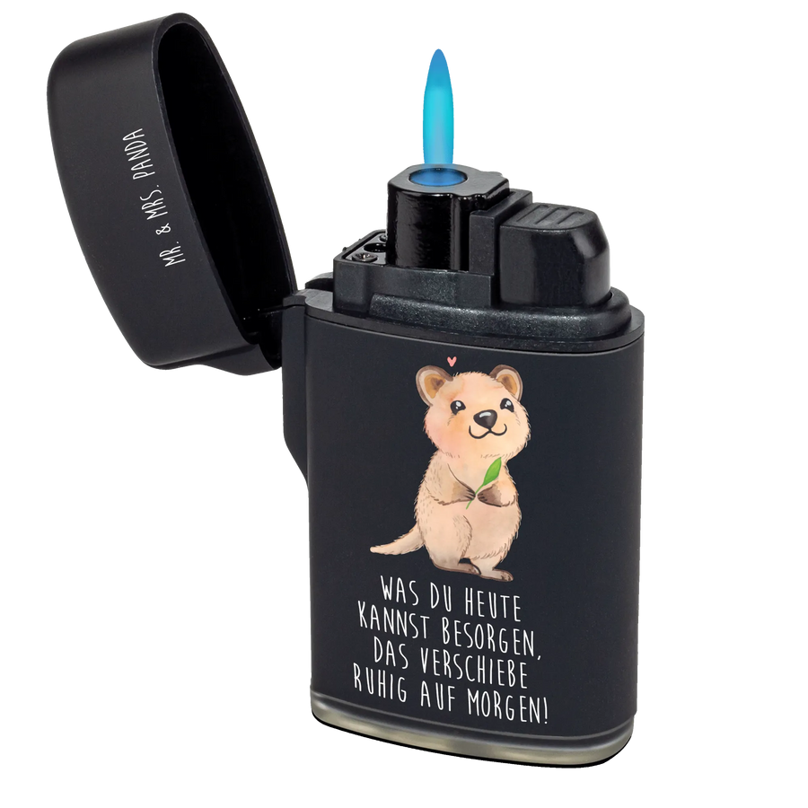 Mit seinem niedlichen Quokka-Motiv und dem witzigen Spruch "Was du heute kannst besorgen, das verschiebe ruhig auf morgen!" bringt es nicht nur gute Laune, sondern motiviert auch dazu, die Dinge endlich anzugehen. Das Feuerzeug ist hochwertig aus Kunststoff mit einem angenehmen Gummi-Sleeve gefertigt und liegt super in der Hand.