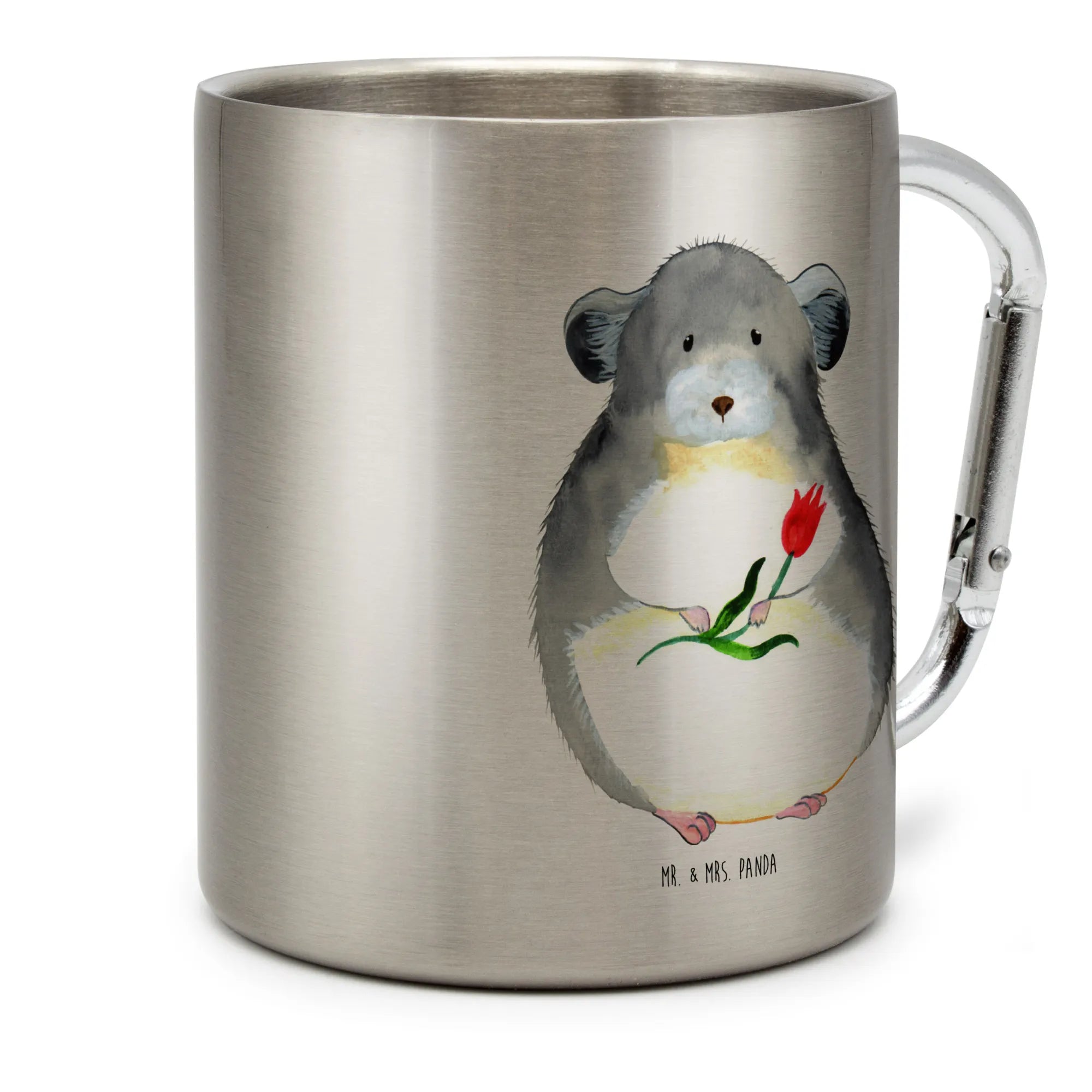 Kubek ze stali nierdzewnej szynszyla kwiat - z napisem