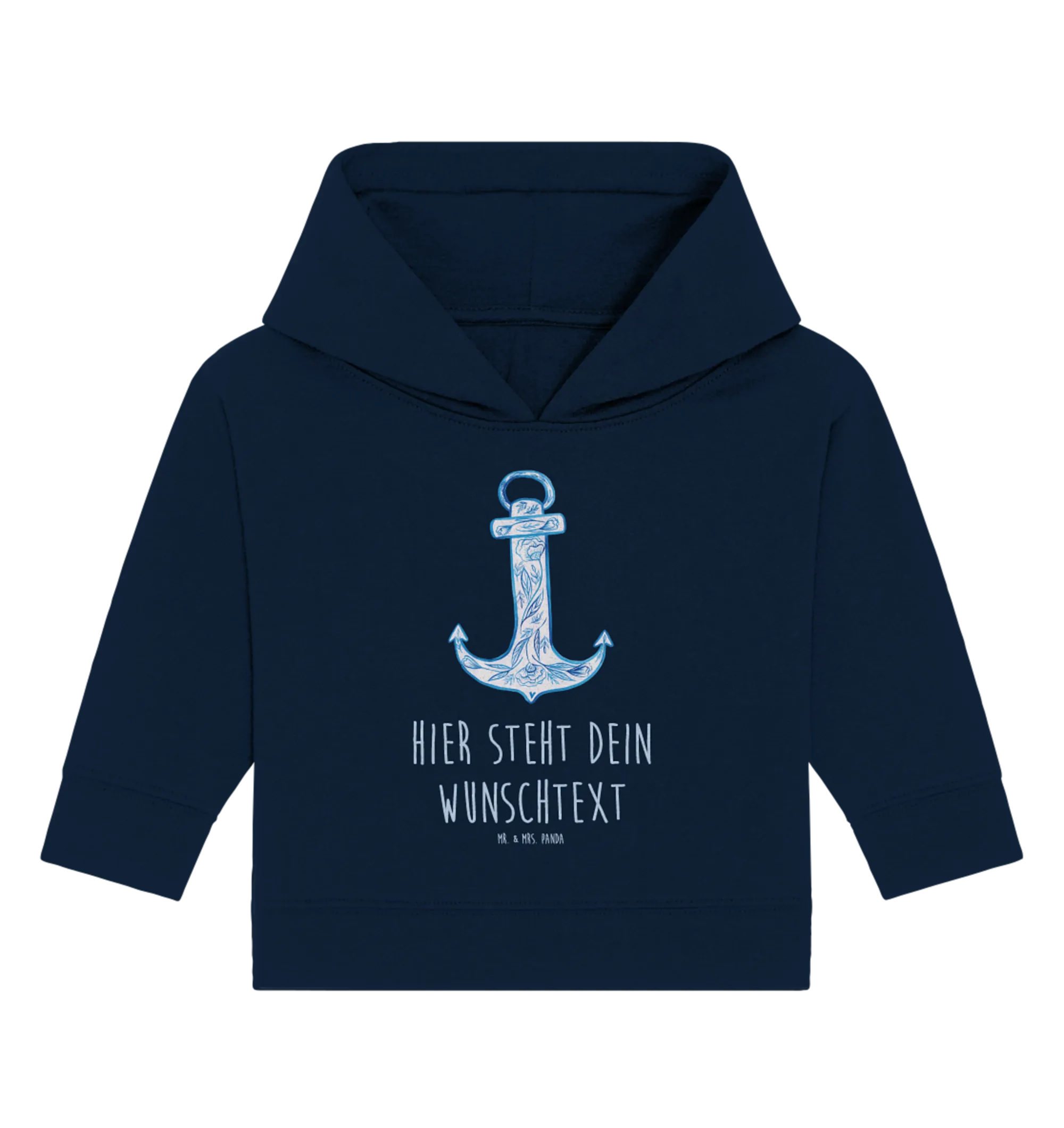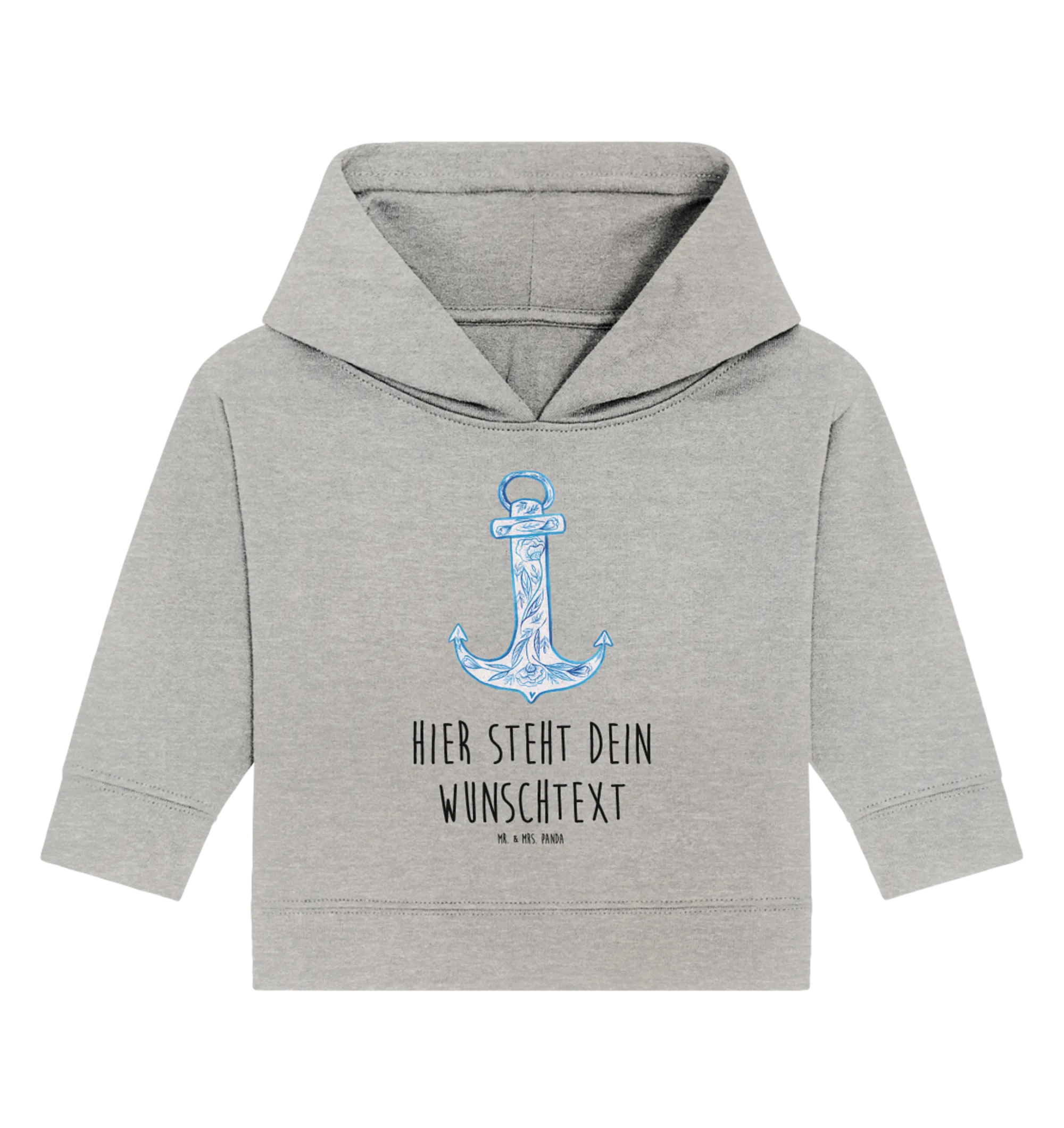 Der personalisierte Baby Hoodie mit dem süßen Anker Blau aus der Small World Kollektion von Mr. & Mrs. Panda ist der perfekte Begleiter für jedes kleine Abenteuer! Der Hoodie ist nicht nur stylisch, sondern auch praktisch und liebevoll gestaltet. Aus 100% Öko-Baumwolle gefertigt, bietet er höchsten Tragekomfort und ist sanft zur empfindlichen Babyhaut.