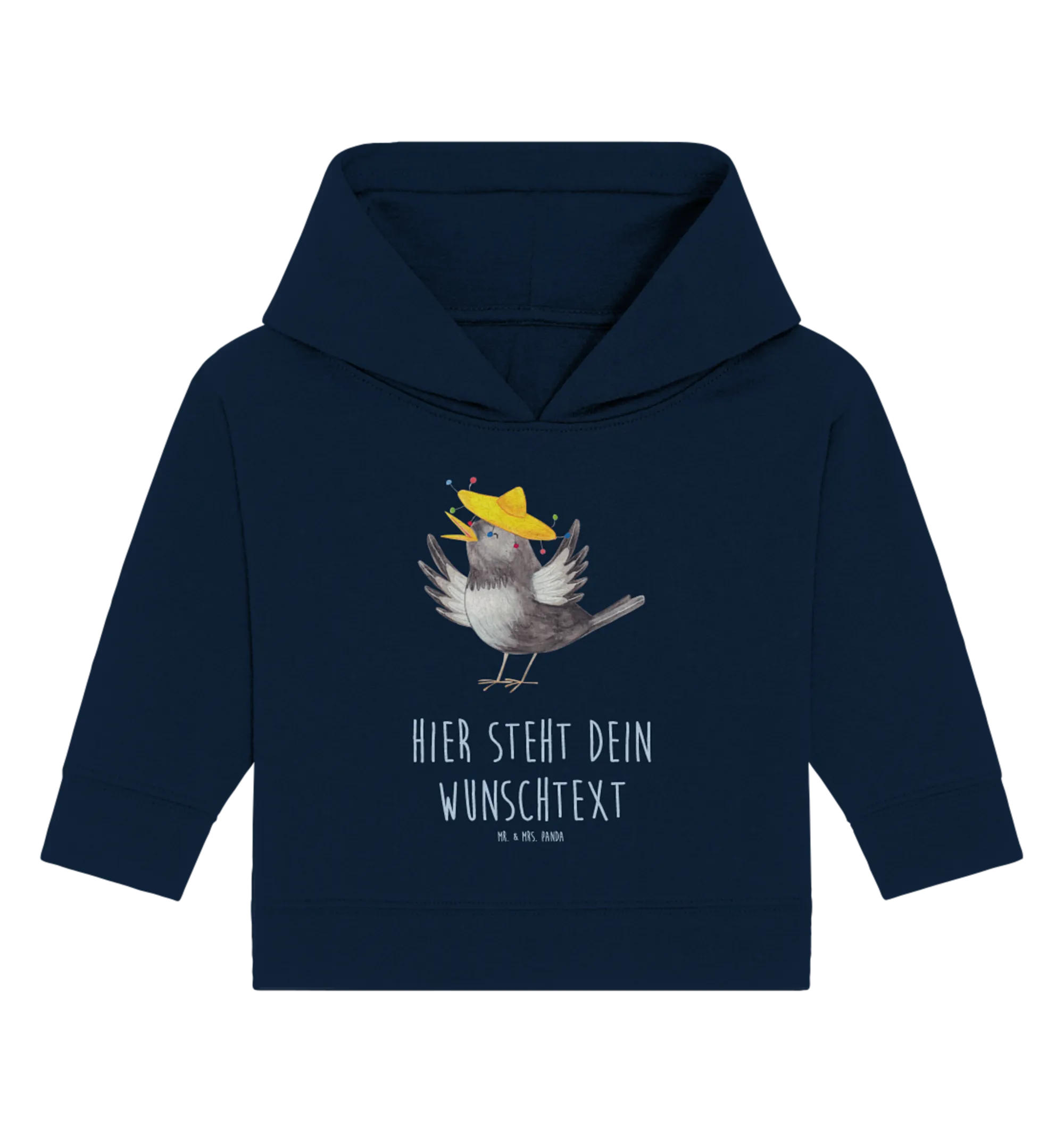 Der personalisierte Baby Hoodie mit dem niedlichen „Rabe mit Sombrero“-Motiv aus der Small World Kollektion von Mr. & Mrs. Panda ist das perfekte Geschenk für kleine Fröhlichmacher und ihre Eltern. Warum? Nun, dieser Hoodie bringt nicht nur Wärme und Komfort, sondern auch jede Menge gute Laune! Der putzige Rabe, der fröhlich mit seinem lustigen Sombrero tanzt, verbreitet sofort Freude und sorgt für ein breites Grinsen auf den Gesichtern der Eltern.