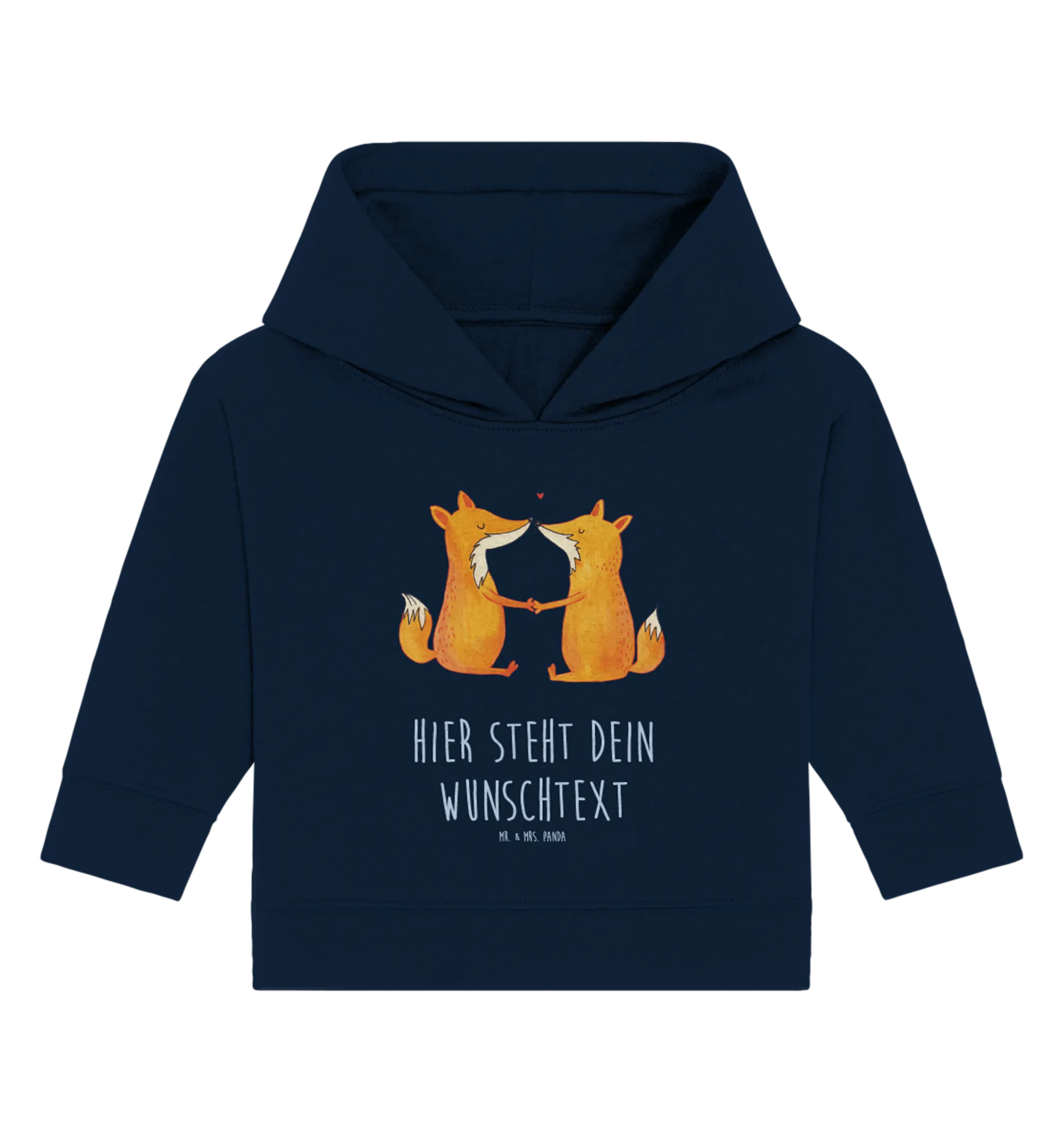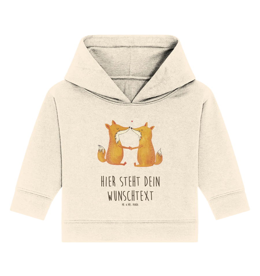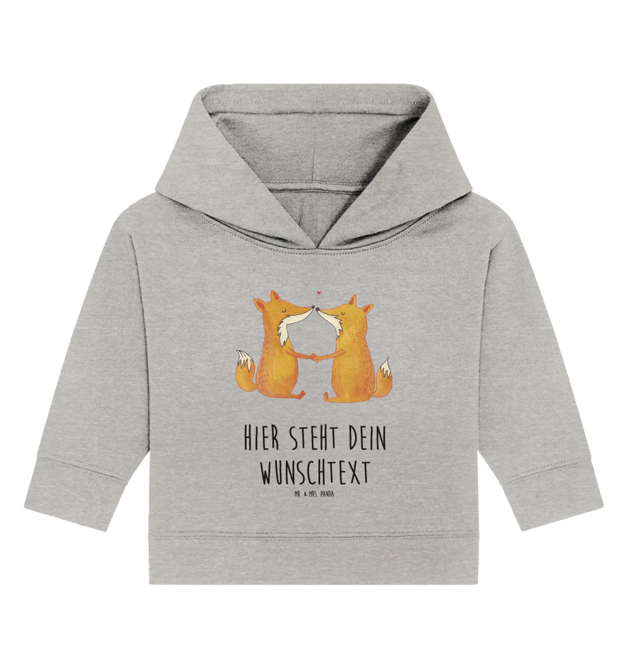 Der personalisierte Baby Hoodie mit dem bezaubernden Motiv "Füchse Liebe" von Mr. & Mrs. Panda ist das perfekte Geschenk für junge Eltern oder als süße Überraschung zur Geburt eines kleinen Wunders. Mit viel Liebe von Mrs. Panda handgezeichnet, zeigt dieser Hoodie zwei süße Füchse, die Hand in Hand sitzen und ein unvergängliches Gefühl von Verbundenheit ausstrahlen.