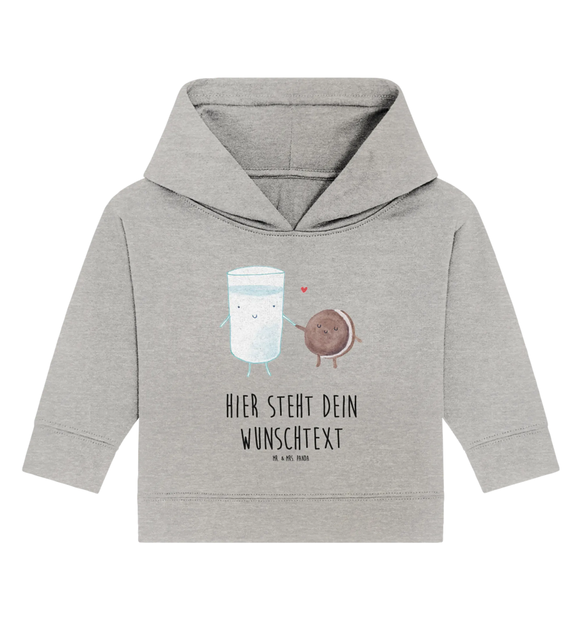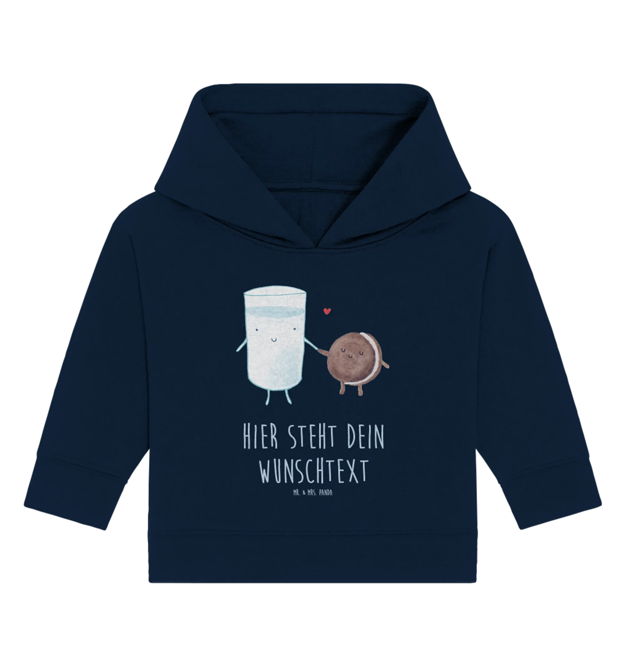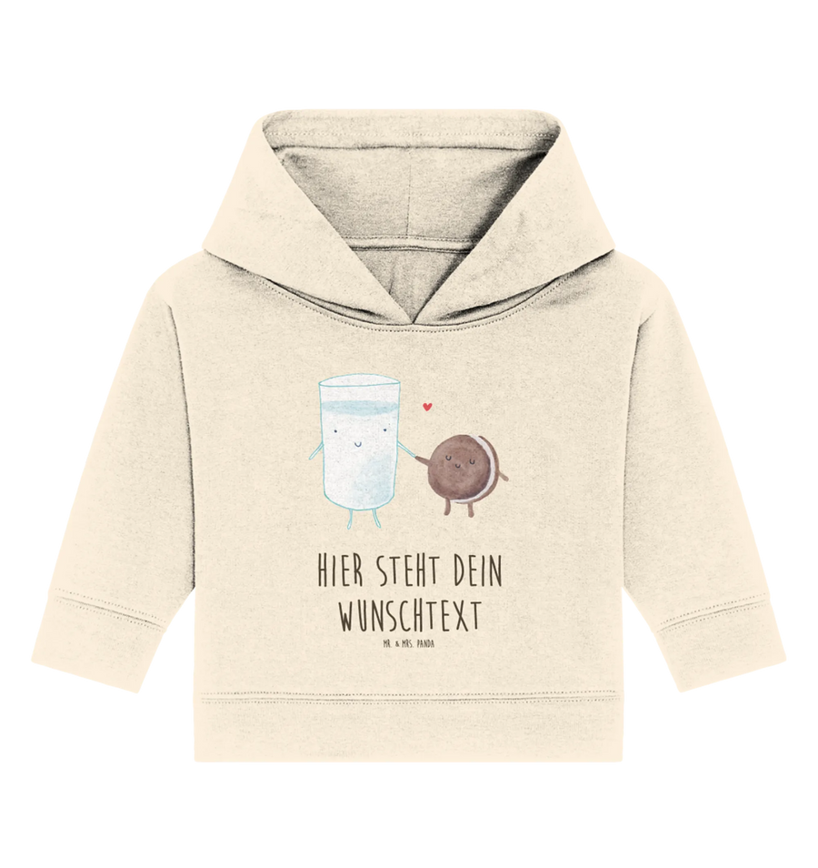 Besonders schön ist, dass der Hoodie personalisiert werden kann, sodass der Name Deines kleinen Schatzes oder ein Wunschtext hinzugefügt werden kann. Damit wird jeder Hoodie zu einem ganz besonderen Unikat. Der Anblick des niedlichen Motivs "Milch & Keks" bringt nicht nur gute Laune, sondern ist auch eine tolle Ergänzung zur Baby-Garderobe.