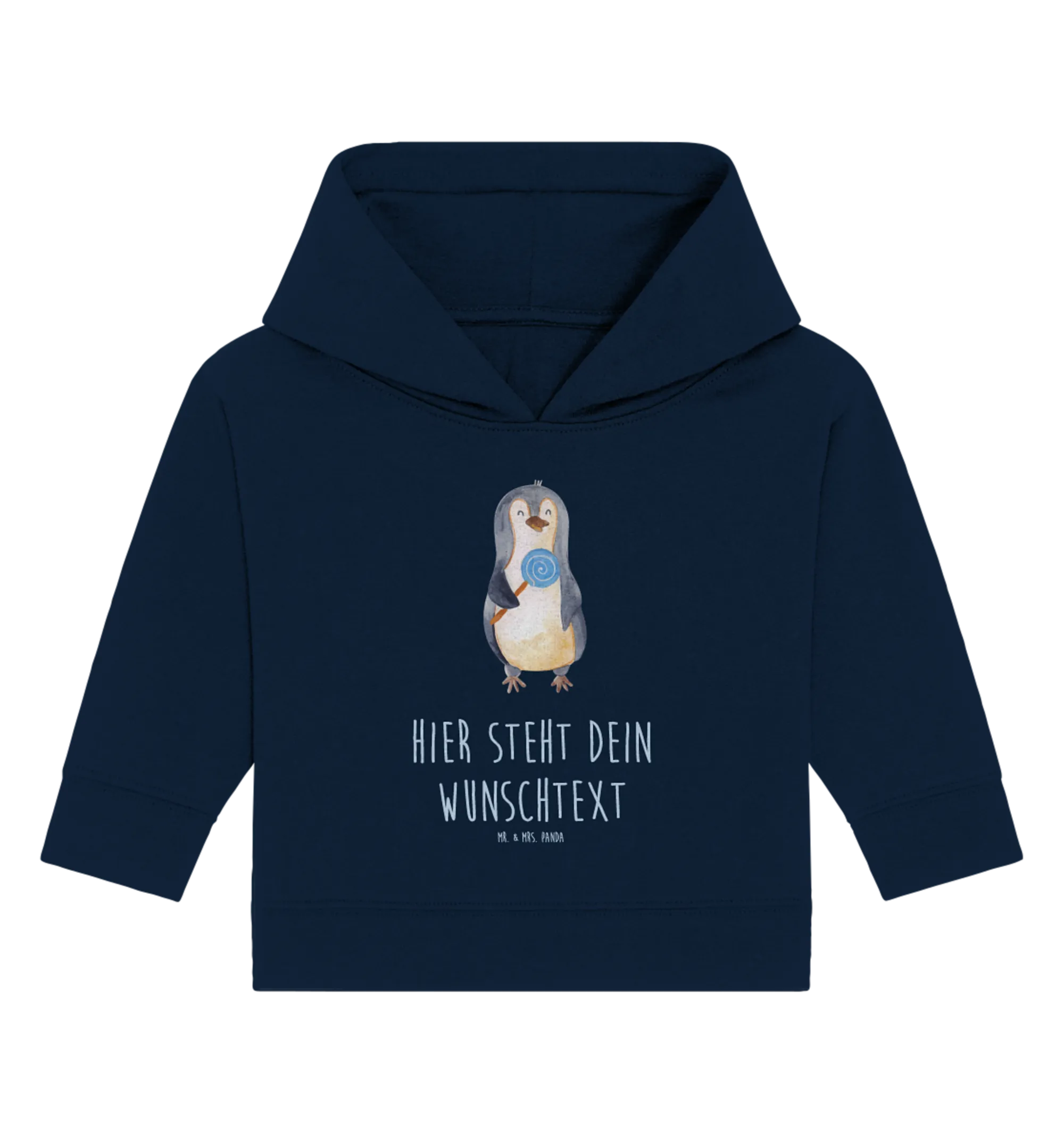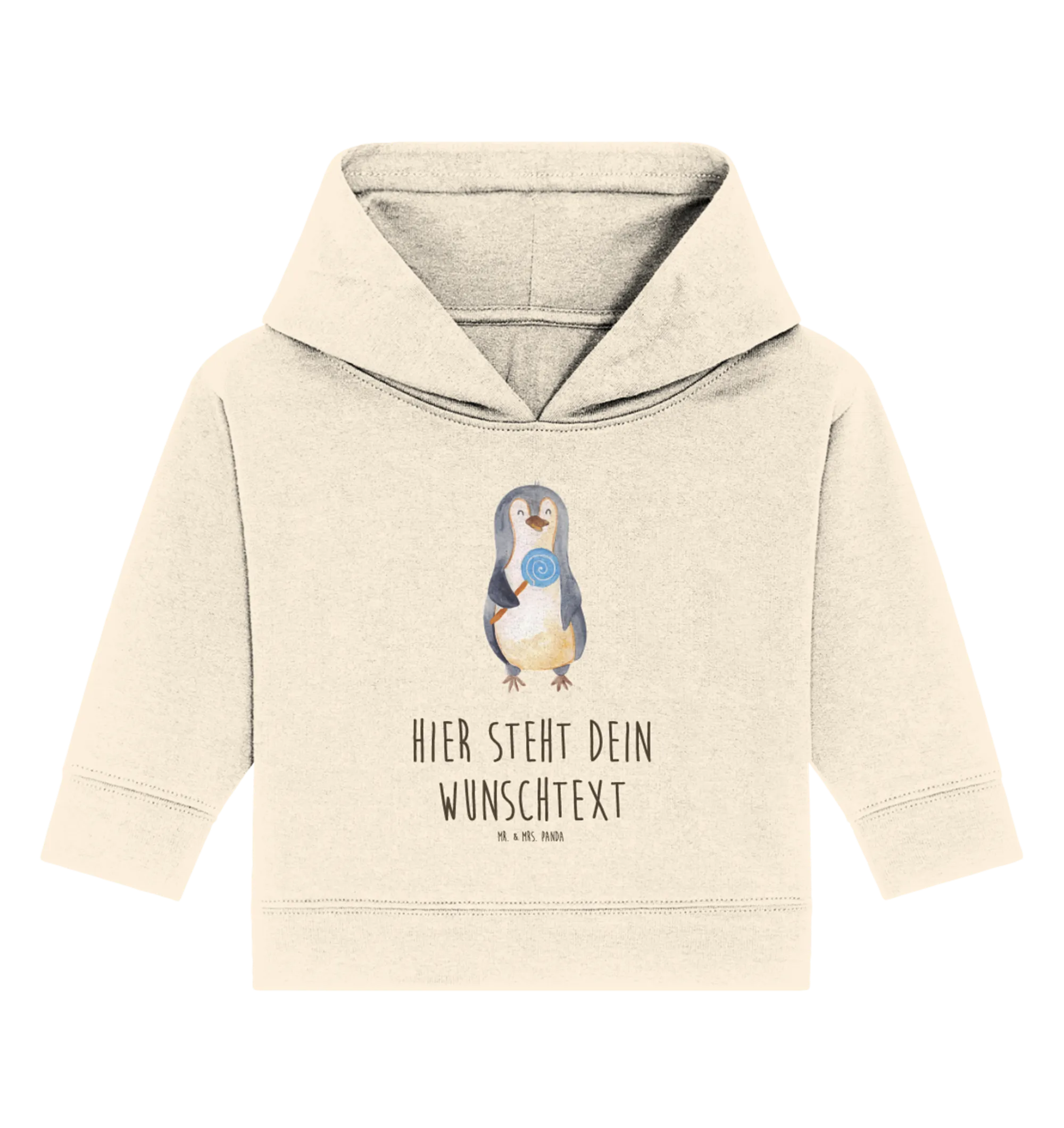 Der personalisierte Baby Hoodie mit dem süßen Pinguin Lolli Motiv aus der Pinguin-Kollektion von Mr. & Mrs. Panda ist das perfekte Geschenk für kleine Rabauken und ihre Eltern. Dieser Hoodie ist nicht nur stylisch, sondern auch unglaublich praktisch und sorgt für jede Menge Freude beim Tragen. Der niedliche Pinguin mit seinem Lolli verzaubert mit seinem herzlichen Blick und bringt die kindliche Unbeschwertheit direkt mit. Die Kombination aus hochwertiger Öko-Baumwolle sorgt dafür, dass sich der Hoodie angenehm weich auf der Haut anfühlt – ideal für die zarte Babyhaut.