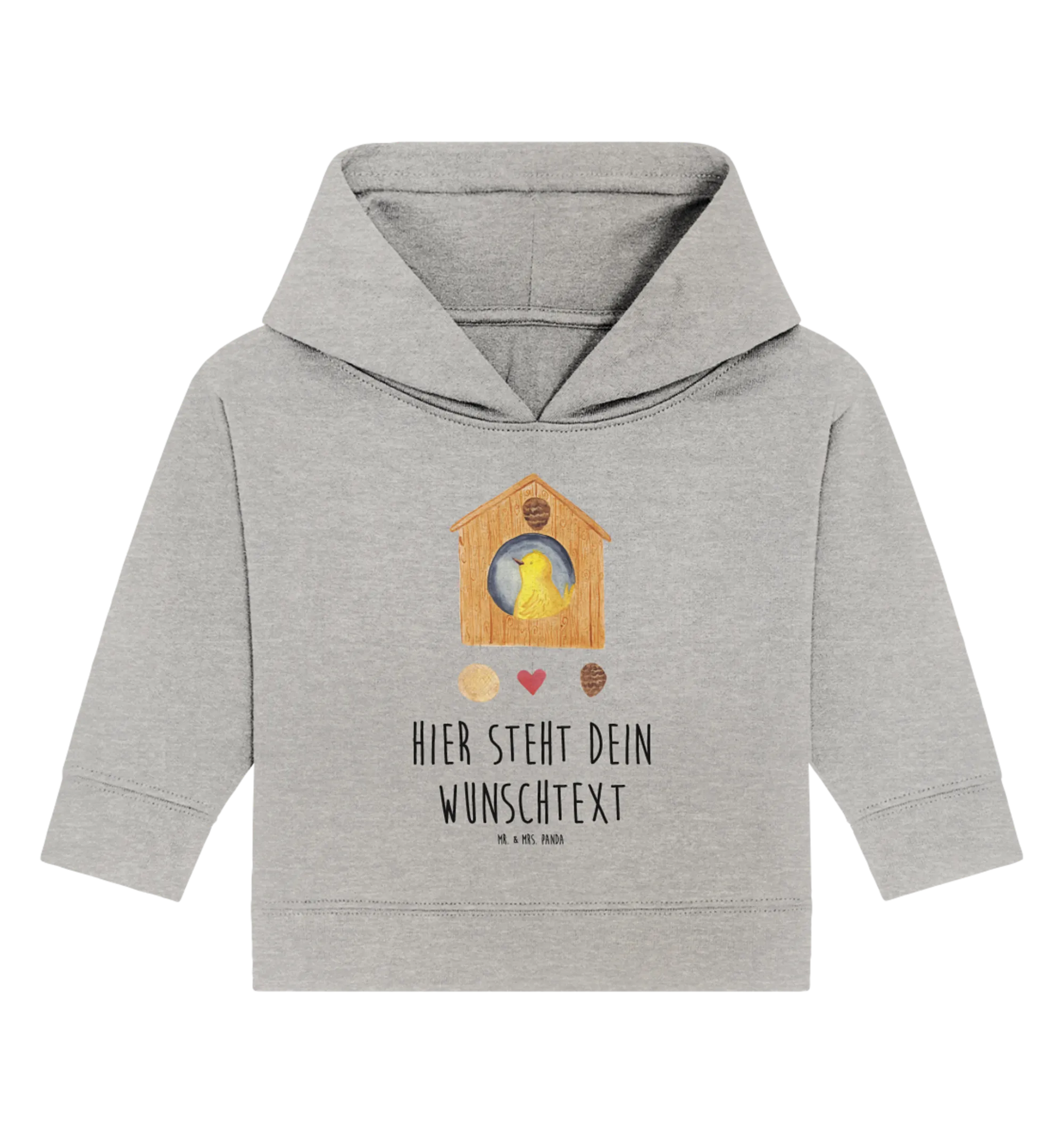Der personalisierte Baby Hoodie "Vogelhaus sweet Home" aus der bezaubernden Small World Kollektion von Mr. & Mrs. Panda ist das ideale Geschenk für kleine Zuhause-Entdecker!
