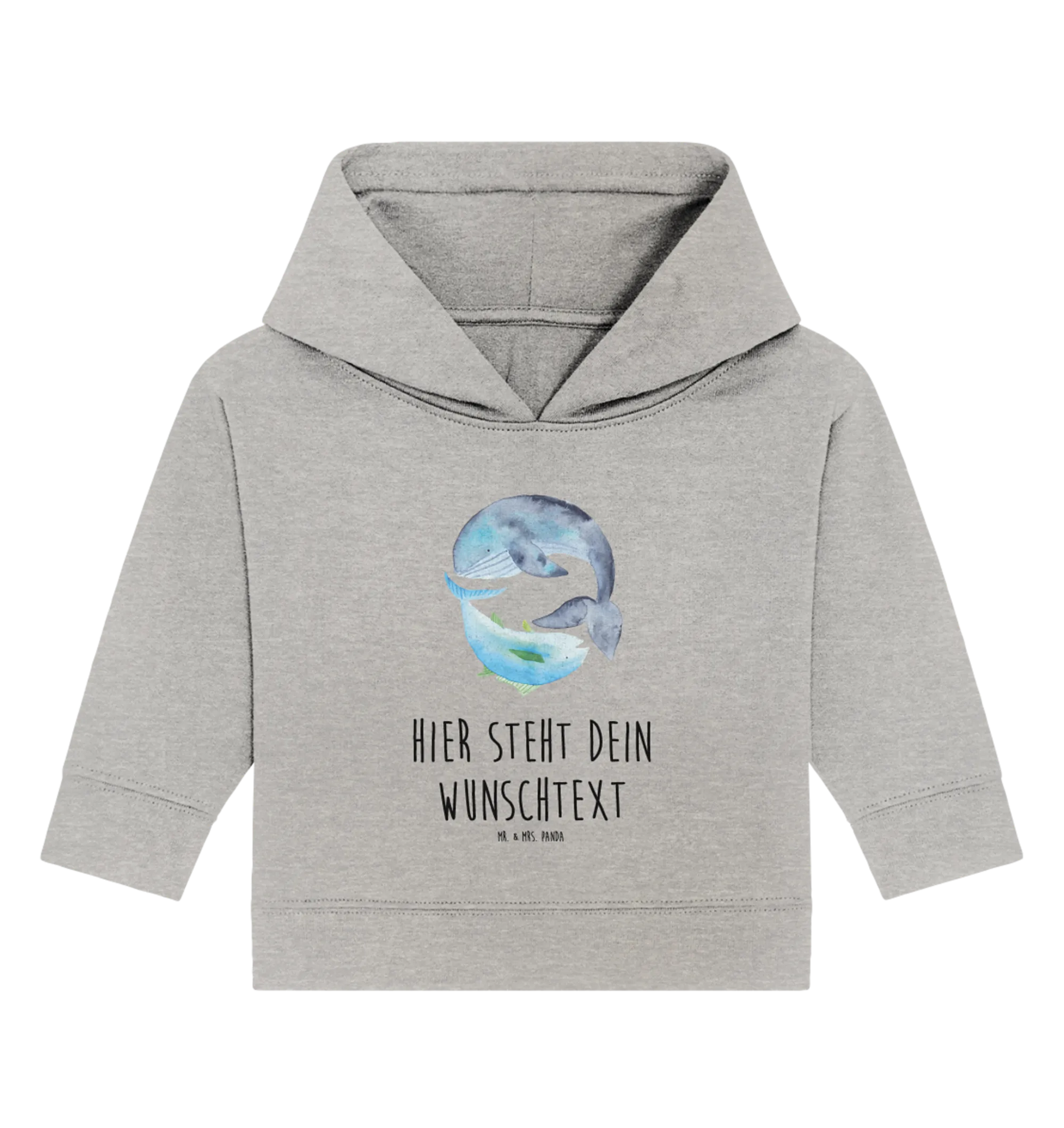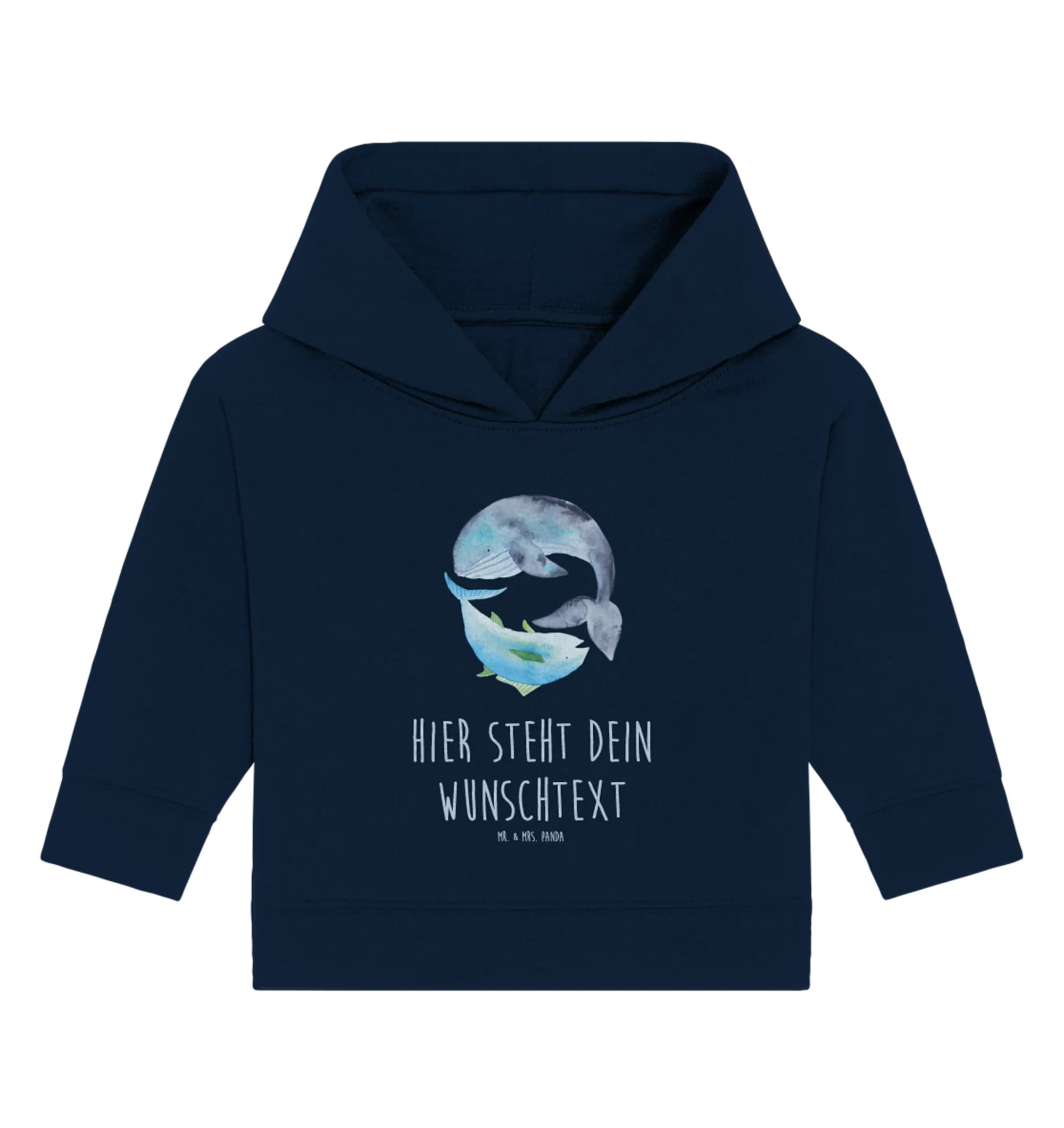 Der personalisierte Baby Hoodie mit dem lustigen Walmotiv und dem Spruch "Sagt der Walfisch zum Thunfisch: ‚Was soll ich tun, Fisch?‘ Sagt der Thunfisch zum Walfisch: ‚Du hast die Wahl, Fisch.‘" ist das perfekte Geschenk für kleine Abenteurer. Dieser süße Hoodie aus hochwertiger Öko-Baumwolle ist nicht nur überaus bequem, sondern bringt auch eine Portion gute Laune und einen Hauch von maritimem Flair in den Alltag der Kleinen.