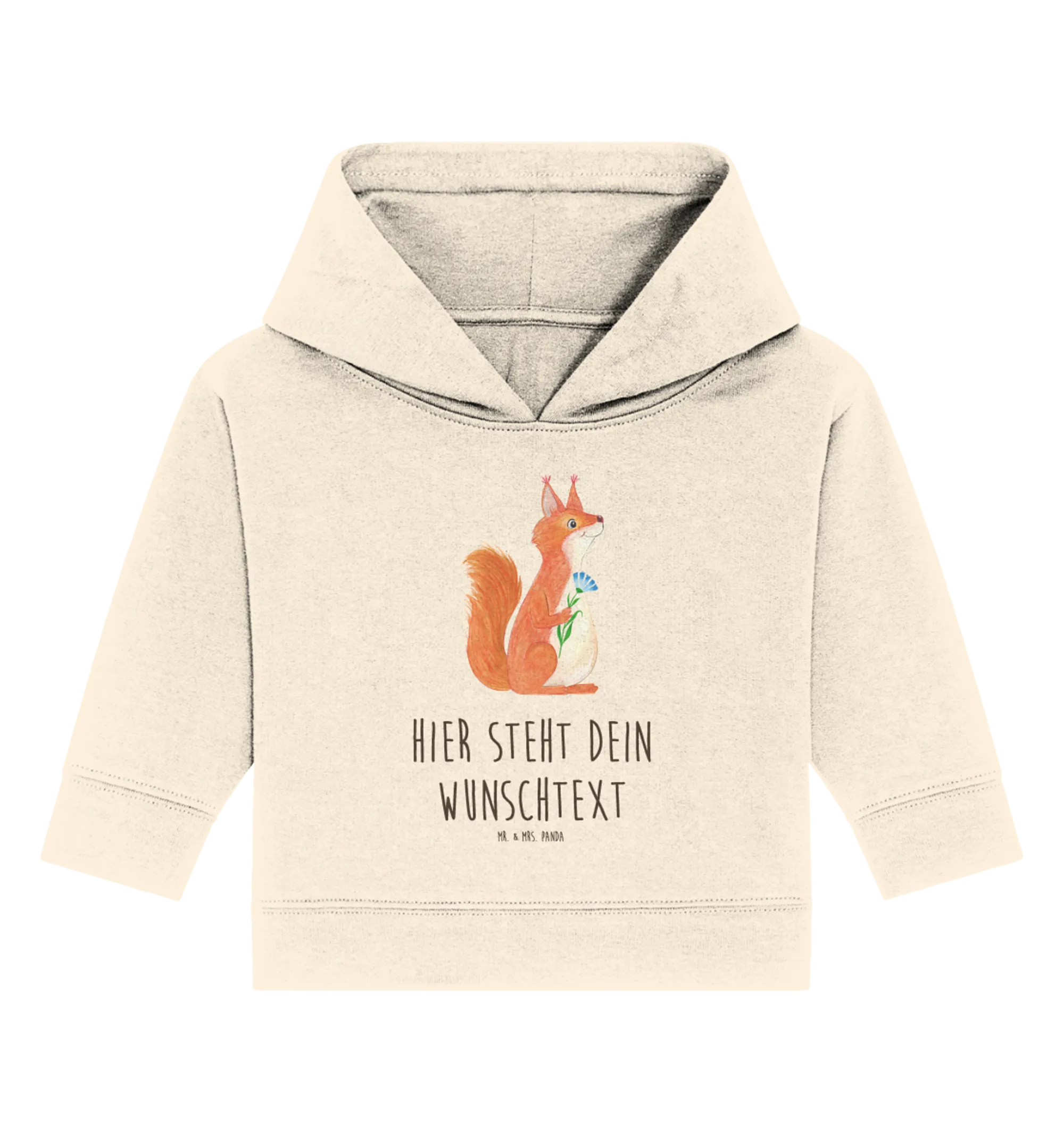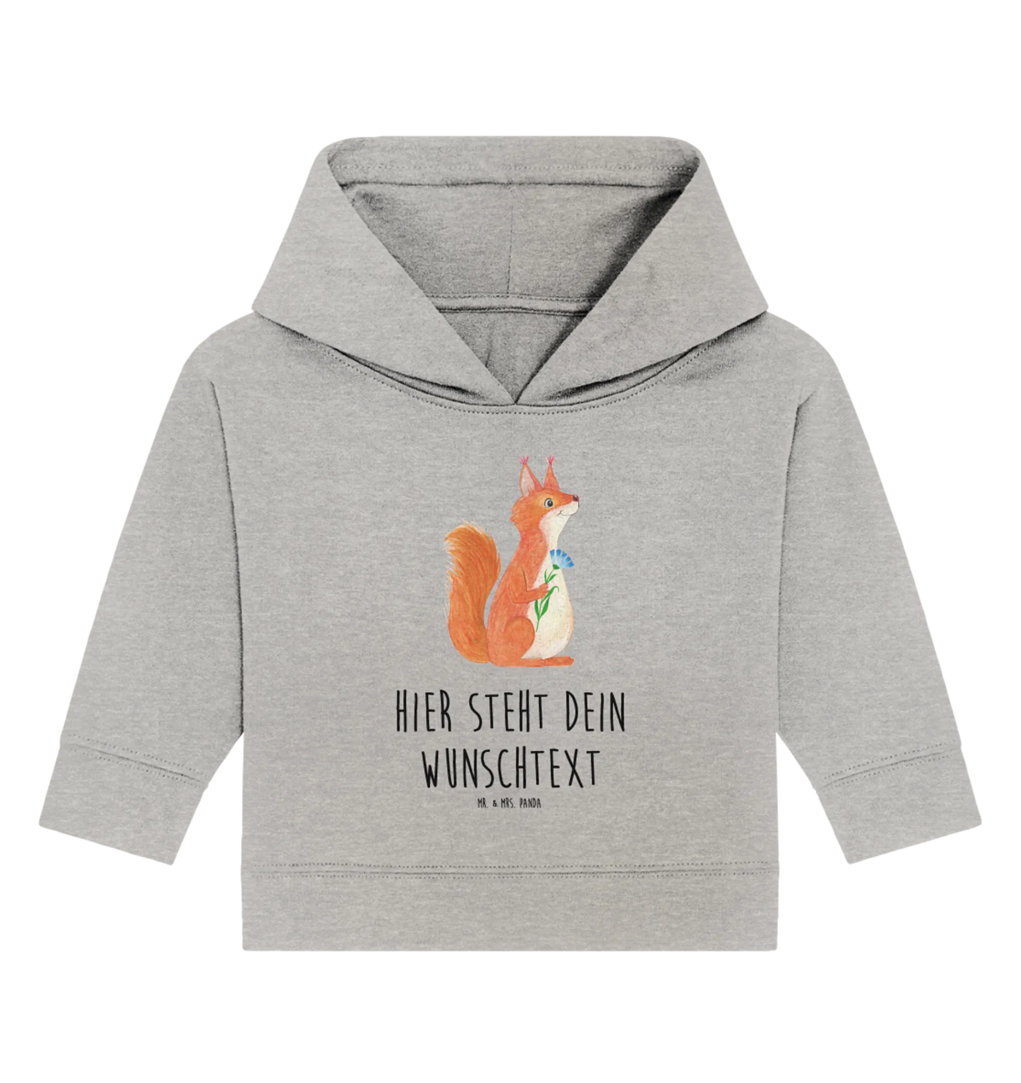 Mit diesem Hoodie steht dem Spiel im Freien oder den ersten Schritten nichts mehr im Weg! Die Größen sind ideal für Kinder im Alter von 12 bis 18 Monaten. Dieser Hoodie ist nicht nur ein modisches Accessoire, sondern auch ein tolles Erinnerungsstück. Perfekt als Geschenk oder als besondere Freude für dein eigenes Kind. Greif zu und schenke Freude mit dem personalisierten Baby Hoodie Eichhörnchen Blume von Mr. & Mrs. Panda!