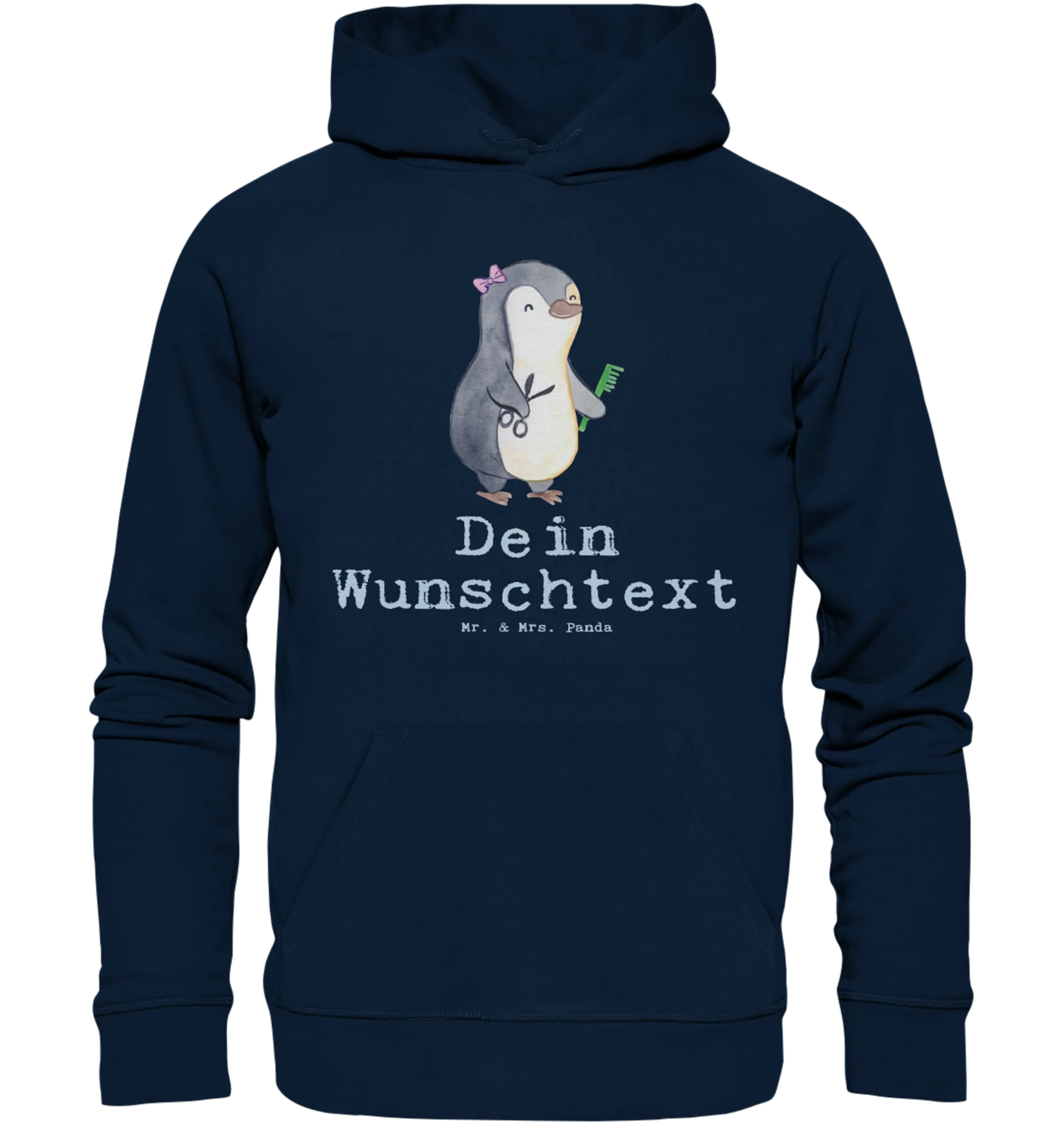 Besonders toll ist die Möglichkeit, den Hoodie mit Deinem Wunschnamen oder Wunschtext zu personalisieren! So wird er zu einem einzigartigen Unikat – perfekt, um sich selbst zu verwöhnen oder einer besonderen Kollegin ein Lächeln ins Gesicht zu zaubern. Der niedliche Pinguin mit Schere und Kamm auf dem Hoodie symbolisiert die Kreativität und Leidenschaft einer Frisörin und ist gleichzeitig ein perfektes Geschenk zum Berufsabschied, Jubiläum oder einfach nur als "Danke" für den Einsatz in der Friseurbranche.