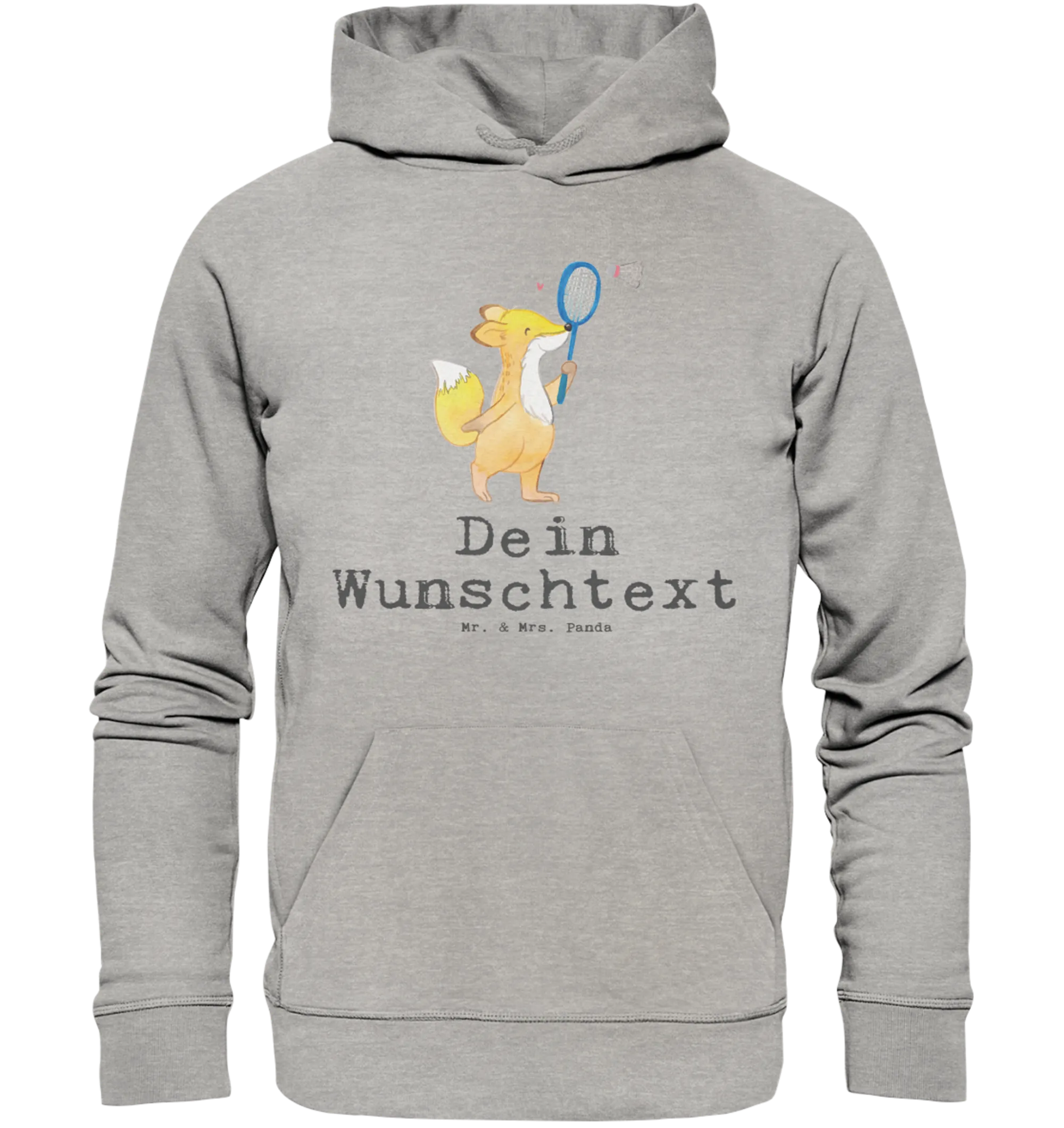 Der personalisierte Hoodie "Fuchs Federball spielen Tage" aus der Kollektion Hobby & Sport von Mr. & Mrs. Panda ist das perfekte Geschenk für alle, die das Federballspielen lieben und ihre Leidenschaft für diesen Sport zum Ausdruck bringen möchten.
