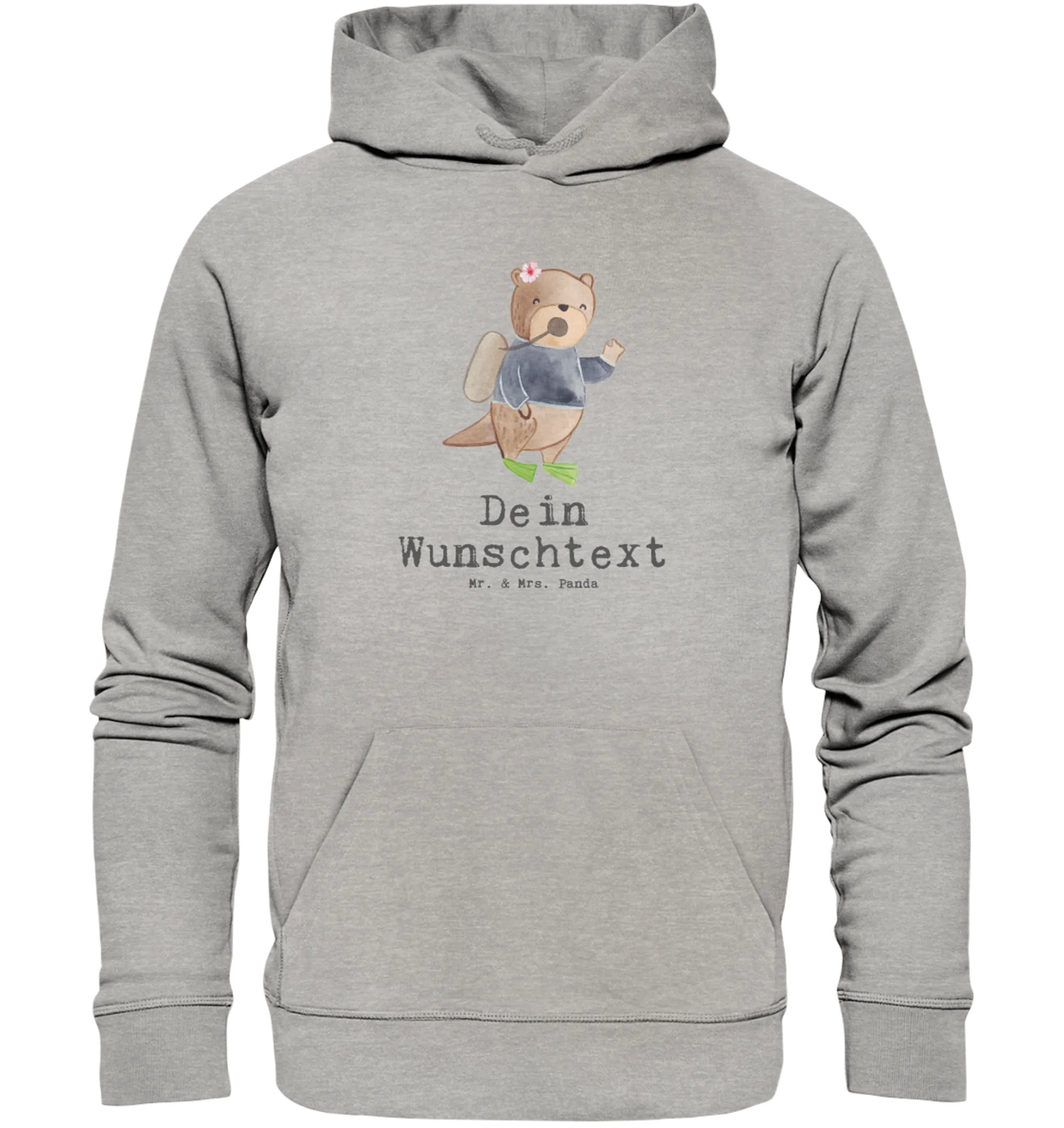 Entdecke den perfekten personalisierten Hoodie "Taucherin mit Herz" aus der außergewöhnlichen Berufe-Kollektion von Mr. & Mrs. Panda! Dieser wundervoll flauschige Kapuzenpullover wird aus 85 % hochwertiger Bio-Baumwolle und 15 % recyceltem Polyester hergestellt, was ihn nicht nur weich und angenehm zu tragen macht, sondern auch umweltfreundlich.