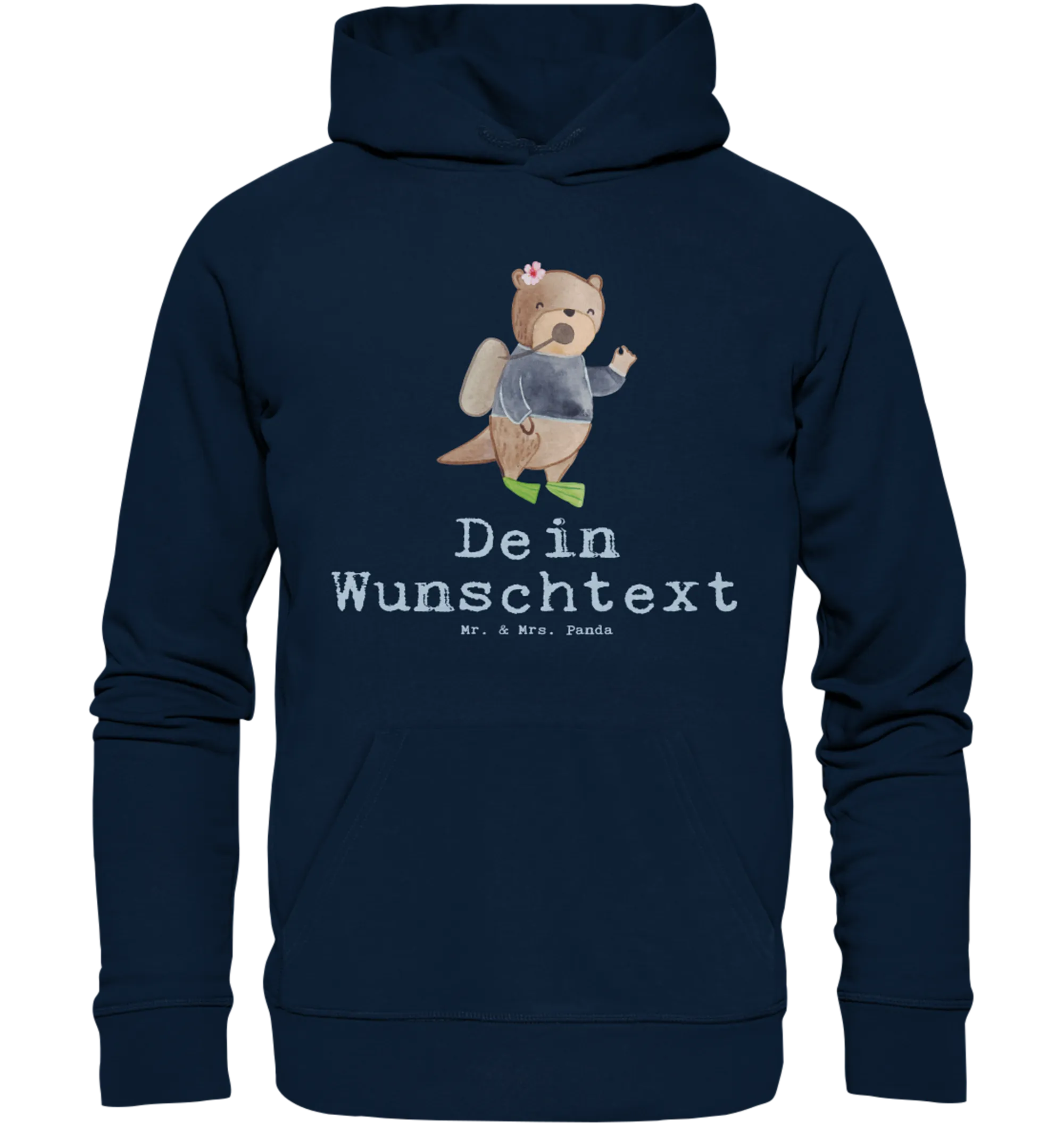 Das Besondere an diesem Hoodie ist die Möglichkeit, ihn mit deinem Wunschnamen oder Wunschtext zu personalisieren. Dadurch wird er zum Unikat und ein tolles Geschenk für jeden Anlass, sei es zum Berufsabschied, für ein Jubiläum oder einfach als liebevolle Überraschung für einen besonderen Menschen in deinem Leben. Das süße Motiv mit dem netten Otter in einem Neoprenanzug wird garantiert für Freude sorgen und ist ein wirklich kreatives Geschenk.