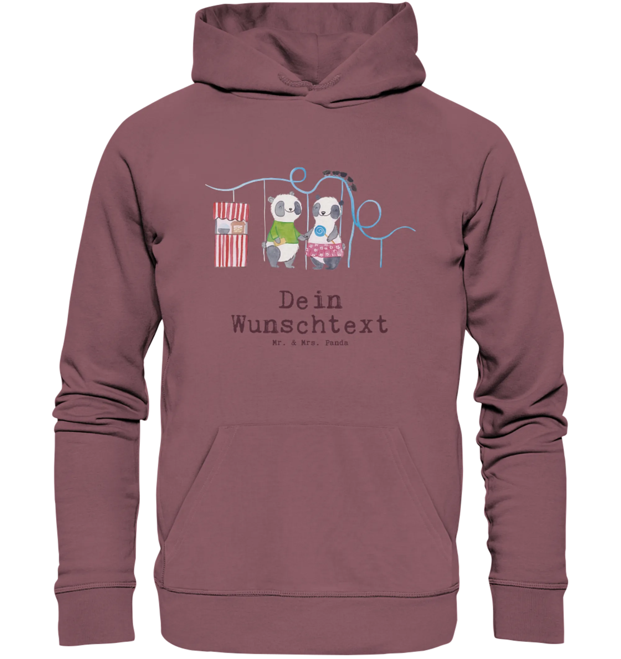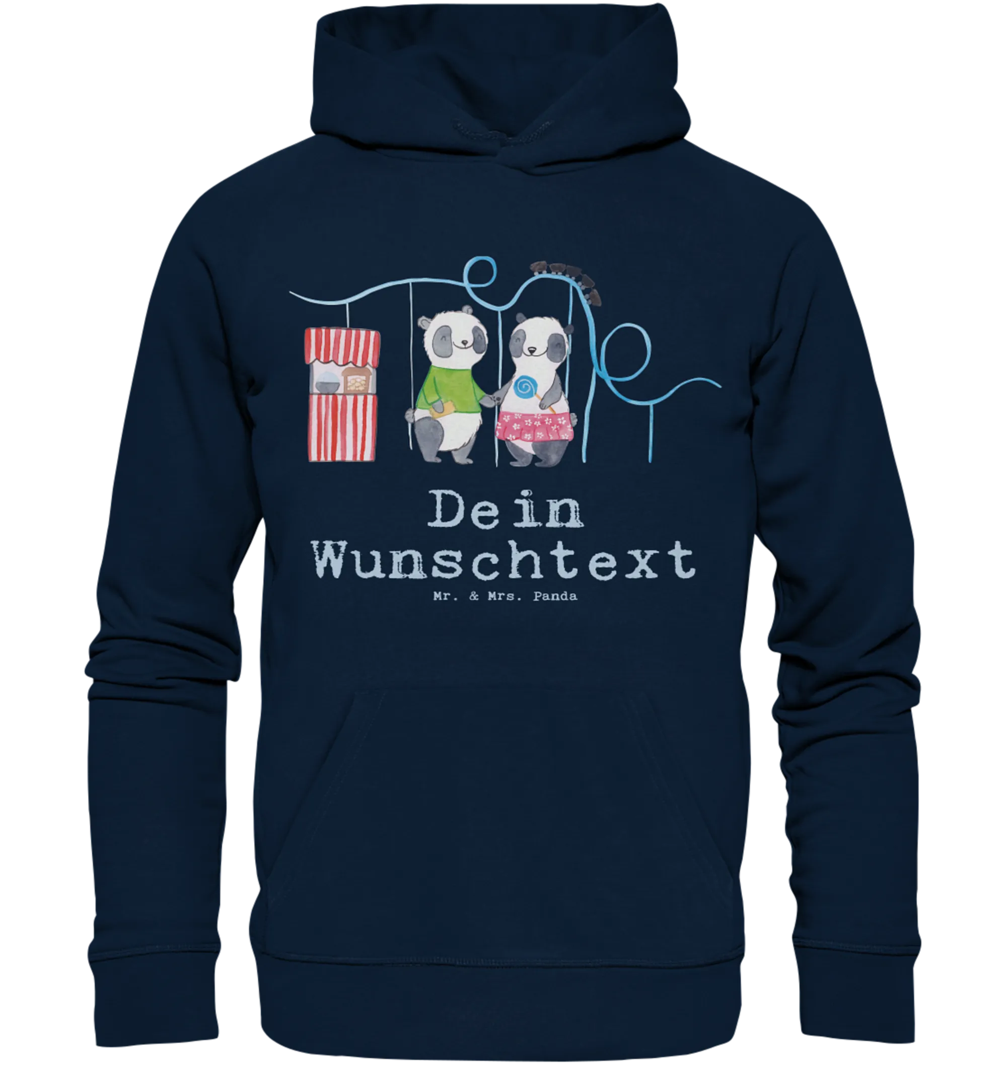 Ideal für einen Tag im Freizeitpark oder beim entspannten Chillen auf der Couch, der Hoodie lässt sich durch deinen Wunschtext oder Wunschnamen personalisieren. Die liebevoll handgezeichneten Pandas, die voller Freude den Freizeitpark besuchen, bringen garantiert ein Lächeln in dein Gesicht.