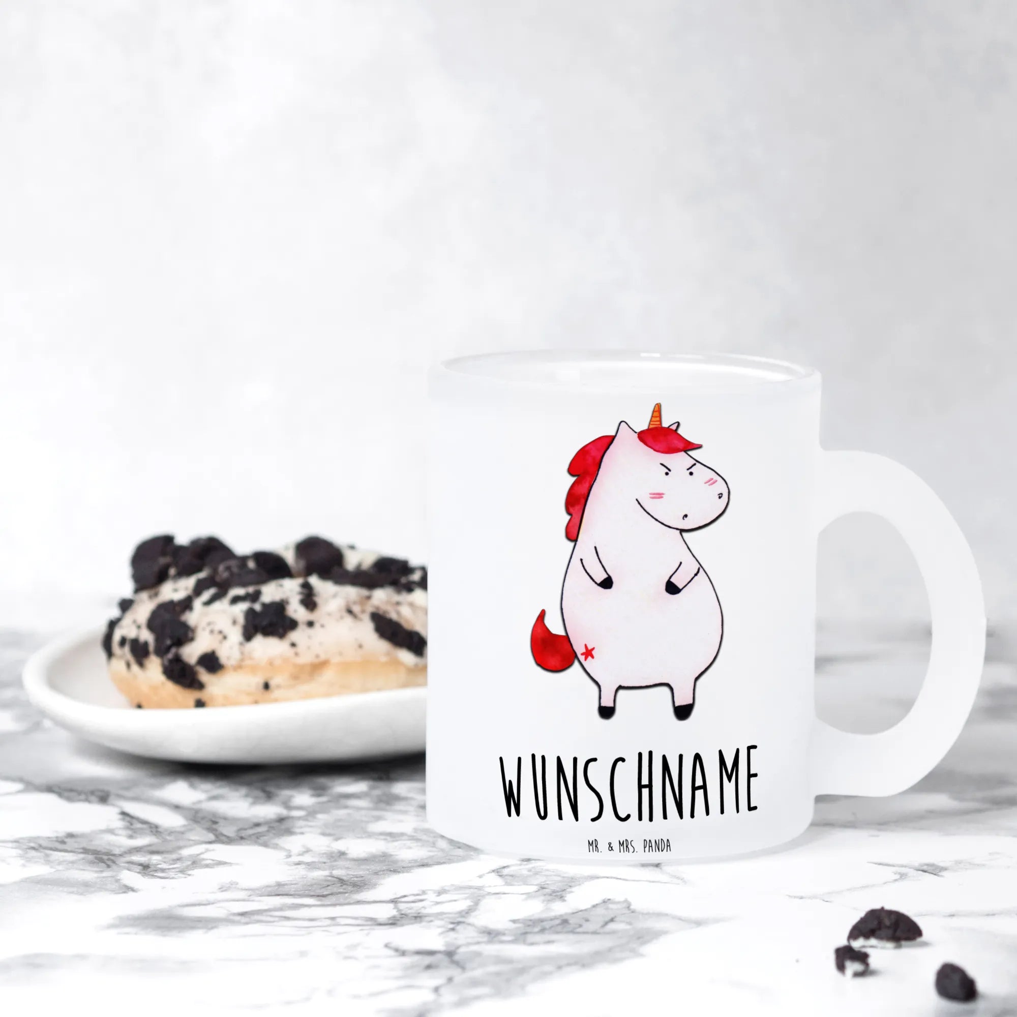 Die personalisierte Teetasse "Einhorn wütend" aus der zauberhaften Einhorn-Kollektion von Mr. & Mrs. Panda ist das perfekte Geschenk für alle, die Einhörner lieben und eine Prise Humor in ihren Alltag bringen möchten. Egal, ob für den Büroalltag oder als persönliches Geschenk für Freunde, diese Tasse bringt immer ein Lächeln ins Gesicht. Bedruckt mit dem lustigen Spruch "Egal was du von mir willst, meine Antwort lautet 'Nein'! Warum? Weil mein Einhorn keinen Bock drauf hat, darum!" ist sie ein echtes Statement im Alltag.