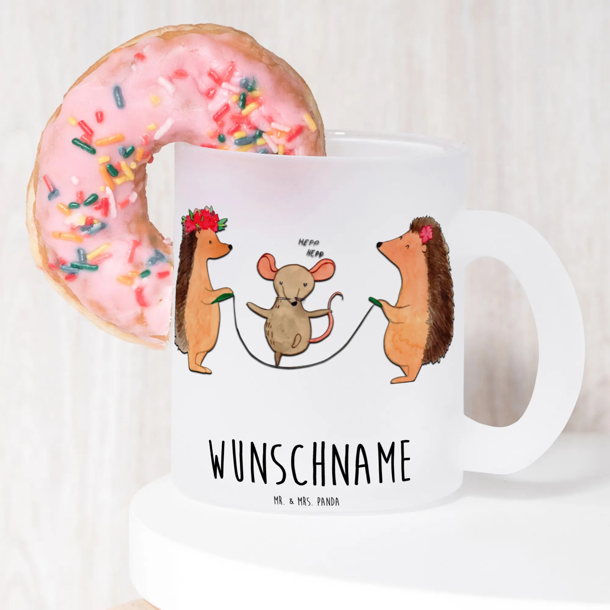 Die personalisierte Teetasse "Igel Seilhüpfen" aus der Kollektion Small World ist das perfekte Geschenk für Groß und Klein! Diese liebevolle Teetasse ist nicht nur ein praktisches Alltagsobjekt, sondern auch ein bezauberndes Schmuckstück für dein Zuhause. Das fröhliche Motiv mit den putzigen Igeln, die fröhlich Seil springen, versprüht gute Laune und bringt ein Lächeln in jedes Zimmer.