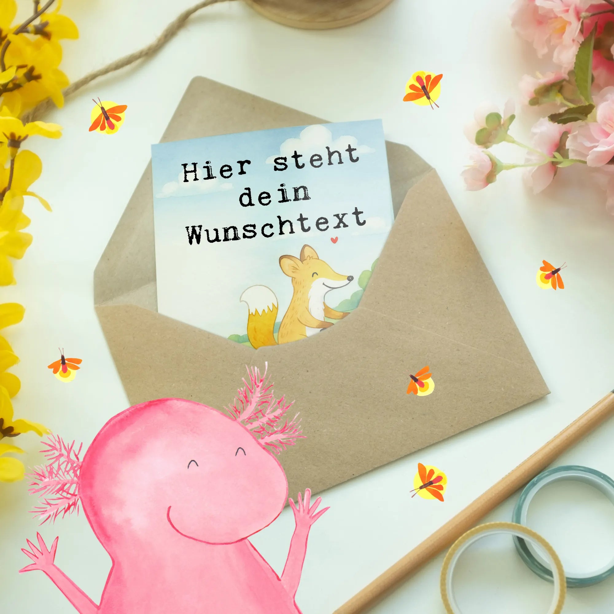Personalisierte Grußkarte Fuchs Fahrrad fahren Design