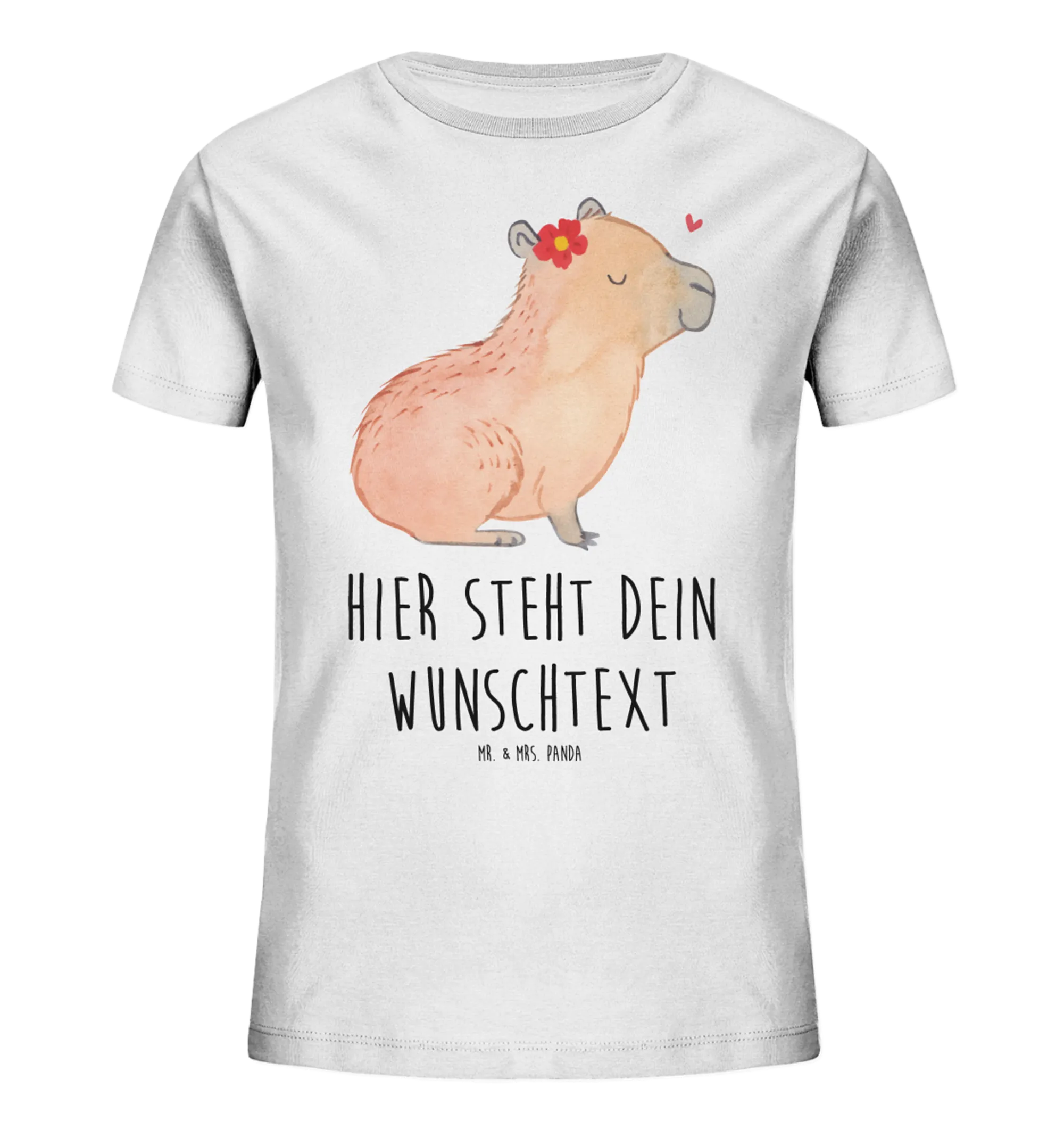 Entdecke das perfekte Geschenk mit unserem personalisierten Kinder T-Shirt "Capybara Blume" aus der bezaubernden Small World Kollektion!