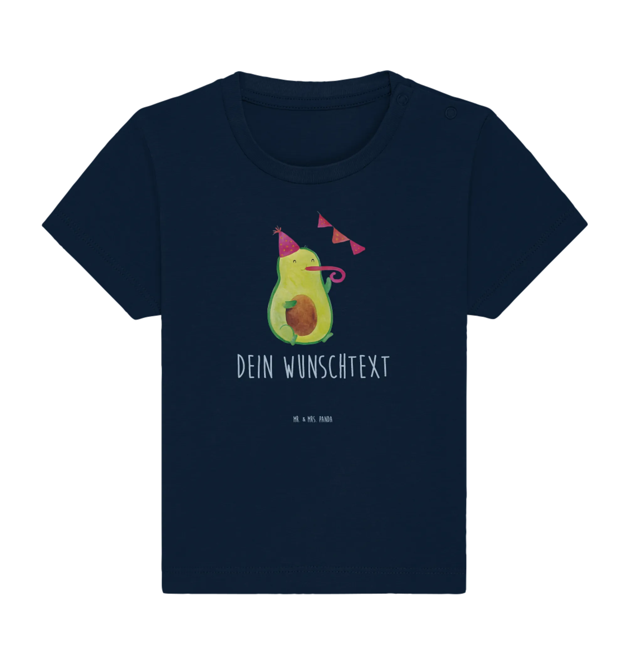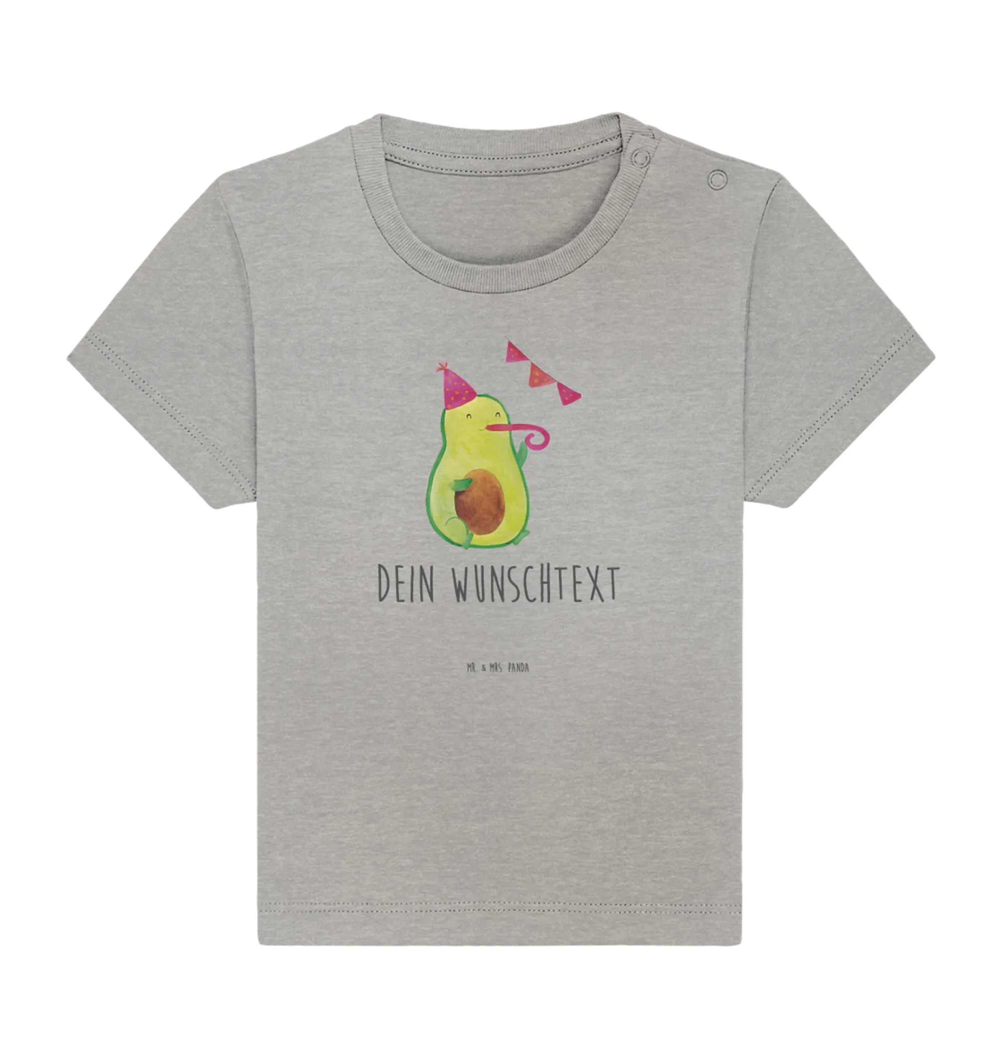 Entdecke das personalisierte Baby T-Shirt mit dem süßen Avocado Party Motiv von Mr. & Mrs. Panda! Dieses einzigartige Shirt ist wie gemacht für die kleinen Feinschmecker und bringt in jede Feier eine Portion gute Laune.