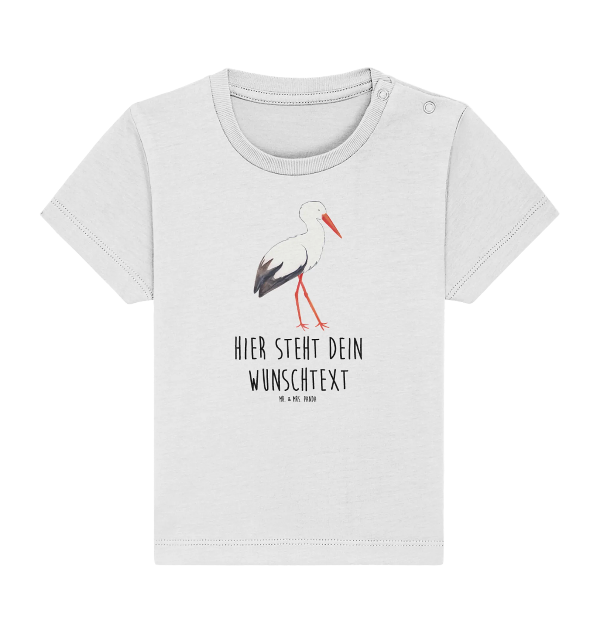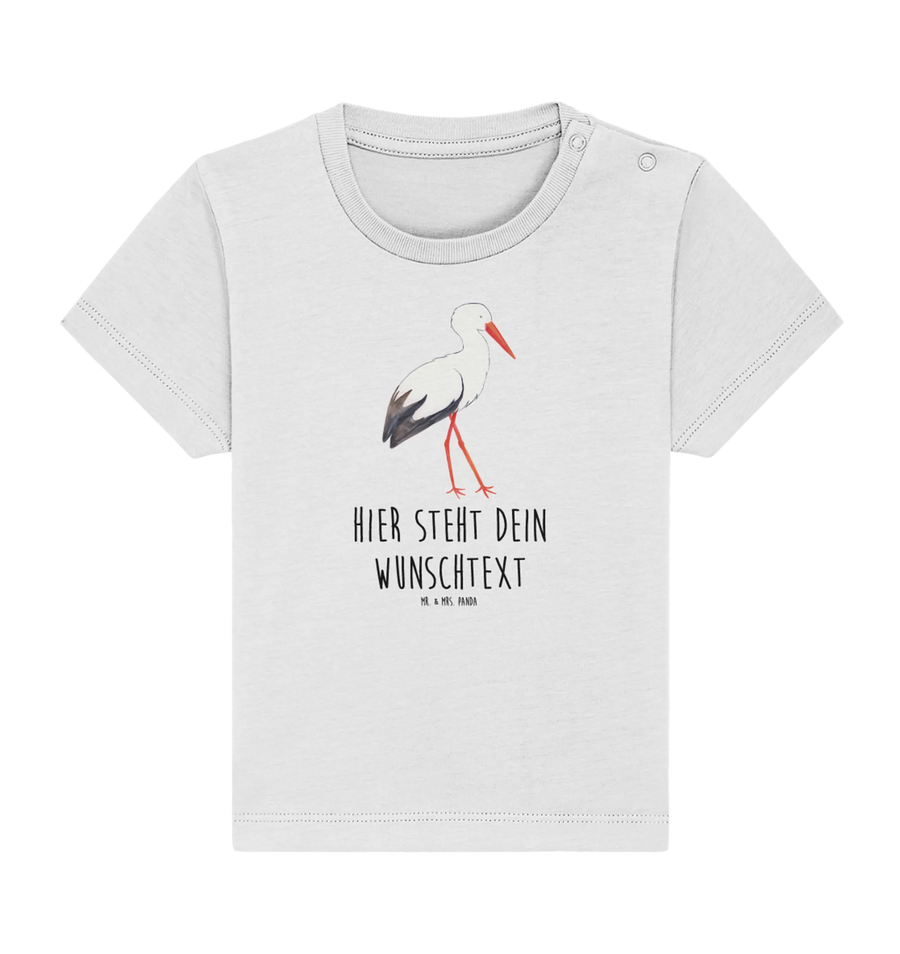 Entdecke das personalisierte Baby T-Shirt mit dem zauberhaften Storch-Motiv aus der Small World Kollektion von Mr. & Mrs. Panda!