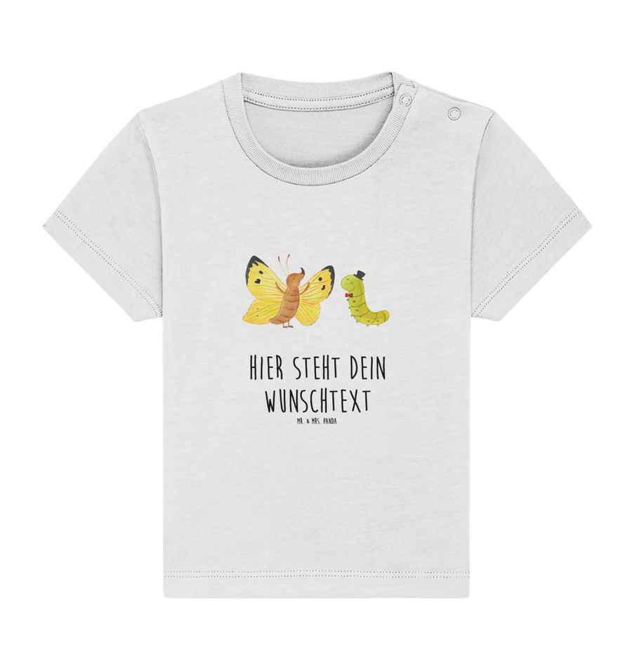 Entdecke das personalisierte Baby T-Shirt mit dem bezaubernden Motiv Raupe & Schmetterling aus der Small World Kollektion von Mr. & Mrs. Panda!