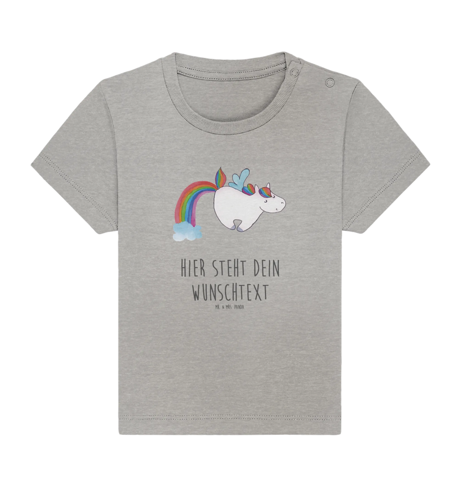 Das personalisierte Baby T-Shirt "Einhorn Fliegendes Pferd" aus der zauberhaften Einhorn-Kollektion von Mr. & Mrs. Panda ist das perfekte Geschenk für alle kleinen Einhornliebhaber. Mit seinem fantasievollen Design zeigt das fröhliche Einhorn, dass die Phantasie viel schönere Dinge bietet als die Realität. Wer möchte schon shoppen gehen, wenn man mit Meerjungfrauen und Einhörnern umherfliegen kann?