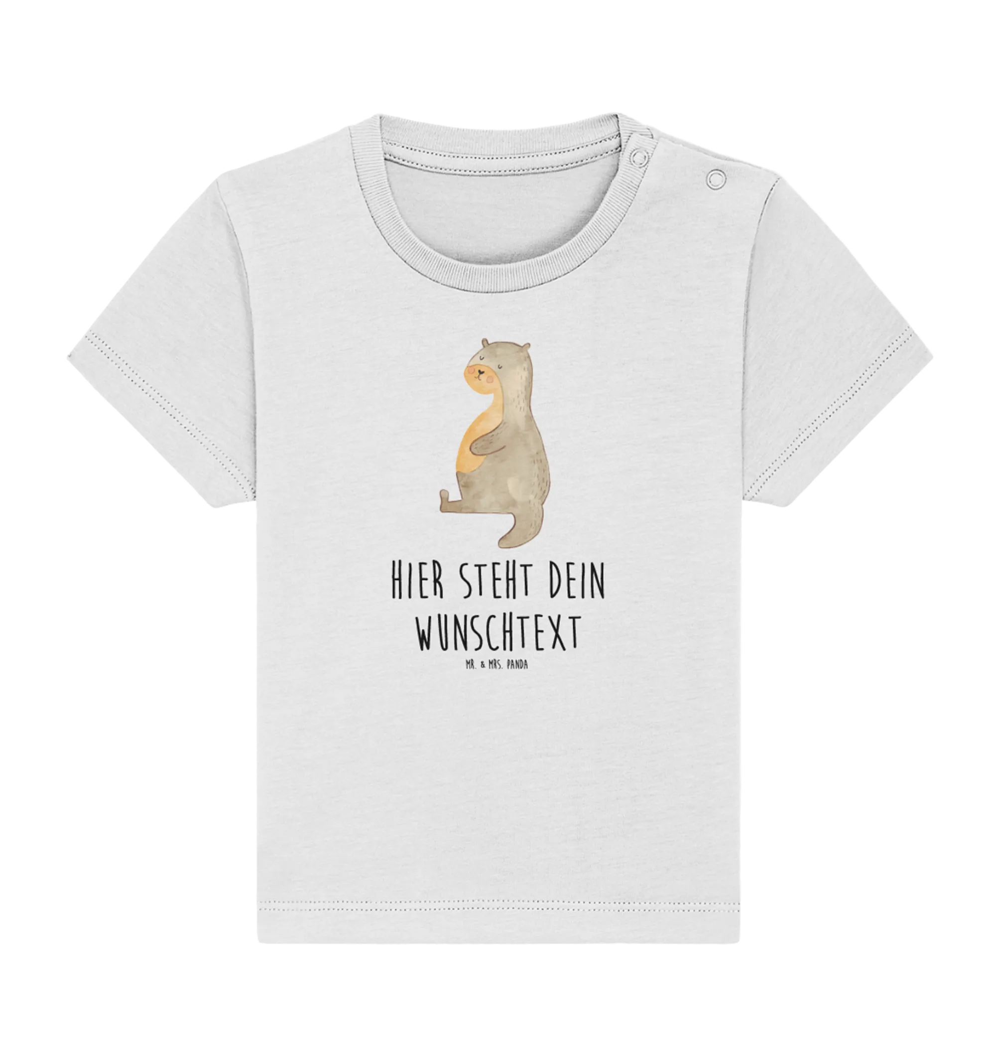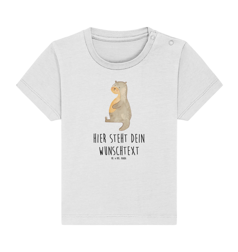 Das personalisierte Baby T-Shirt mit dem süßen Motiv "Otter Bauch" aus der Otter-Kollektion von Mr. & Mrs. Panda ist das perfekte Geschenk für kleine Wasserratten und ihre Eltern! Schau dir den niedlichen Otter mit seinem dicken Bauch an und du fühlst dich gleich happy: Sein zufriedenes Lächeln strahlt Entspannung und Gemütlichkeit aus.