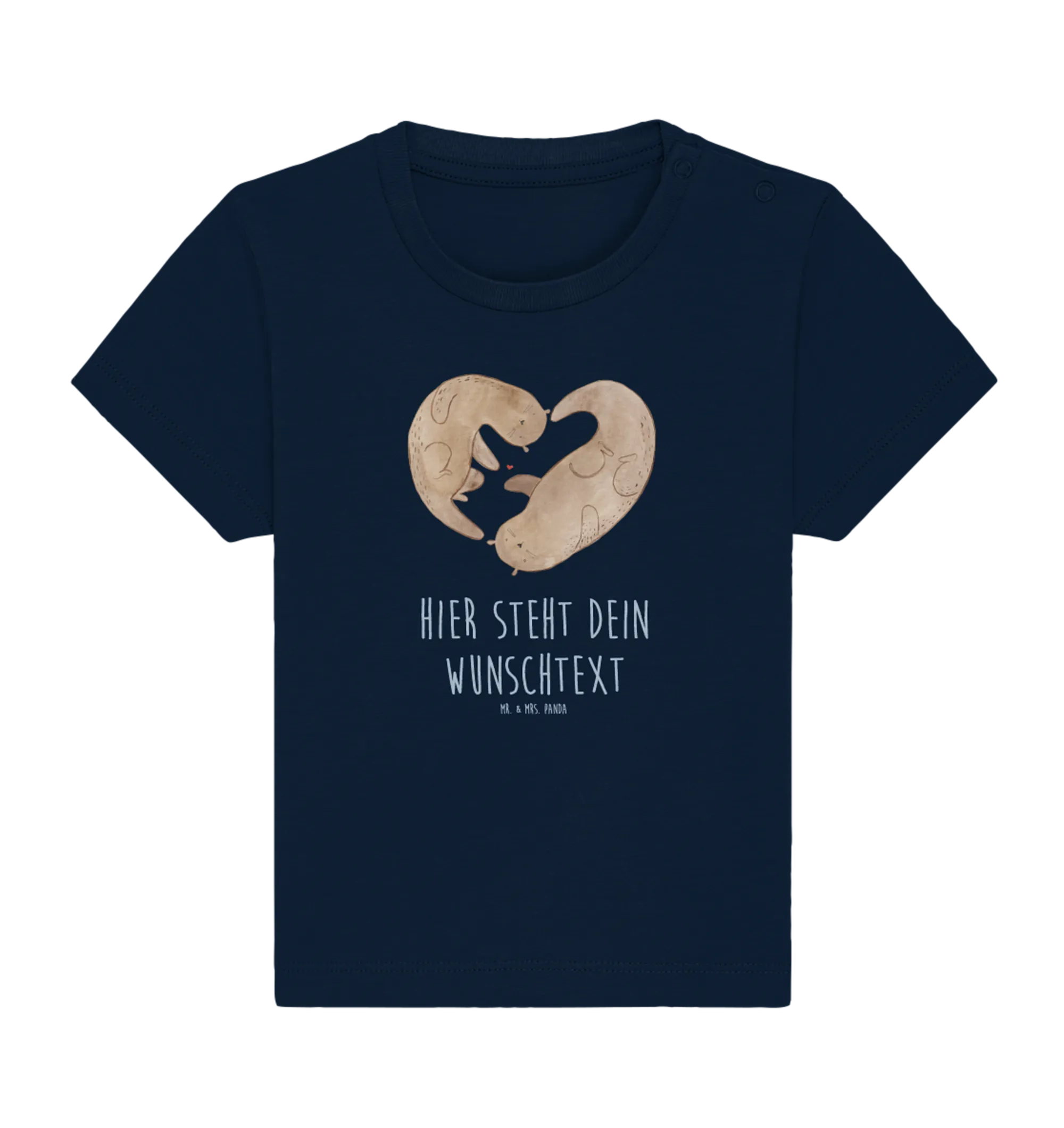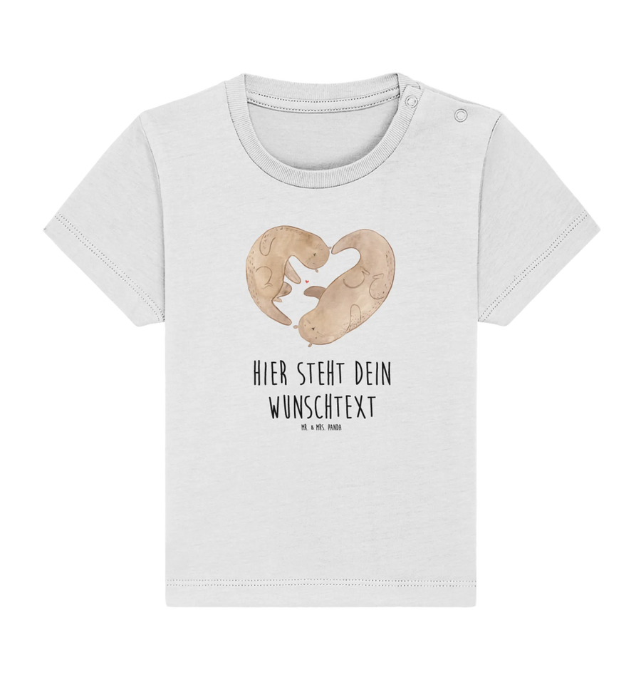 Das personalisierte Baby T-Shirt mit dem süßen Otter Herz Motiv aus der Otter - Kollektion von Mr. & Mrs. Panda ist das perfekte Geschenk für deine kleinen Lieblinge! Dieses niedliche Shirt, in der Größe 6-12 Monate erhältlich, vereint bezaubernde Tiere mit einer liebevollen Botschaft.
