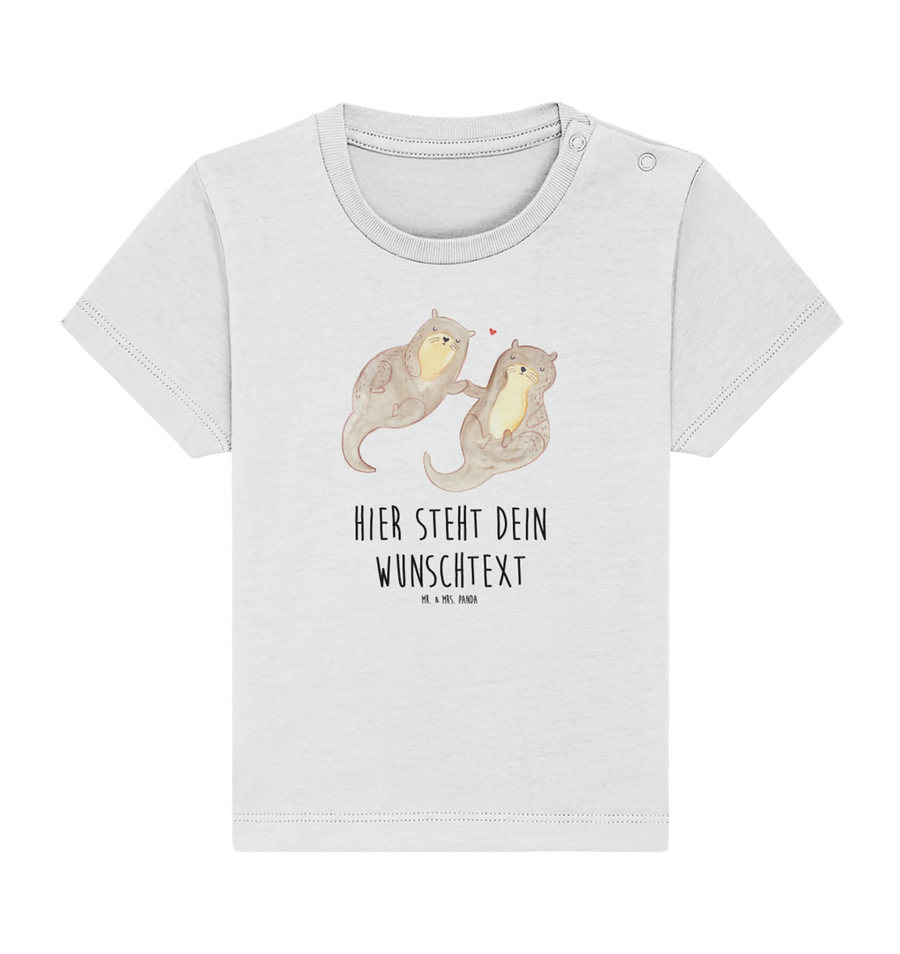 Das personalisierte Baby T-Shirt mit dem niedlichen Motiv der händchenhaltenden Otter ist das perfekte Geschenk für kleine Abenteurer und deren Eltern. Dieses süße T-Shirt mit den zwei verliebten Ottern, die glücklich auf dem Rücken schwimmen, bringt jeden zum Schmunzeln und macht aus jedem Baby einen kleinen Charmeur!