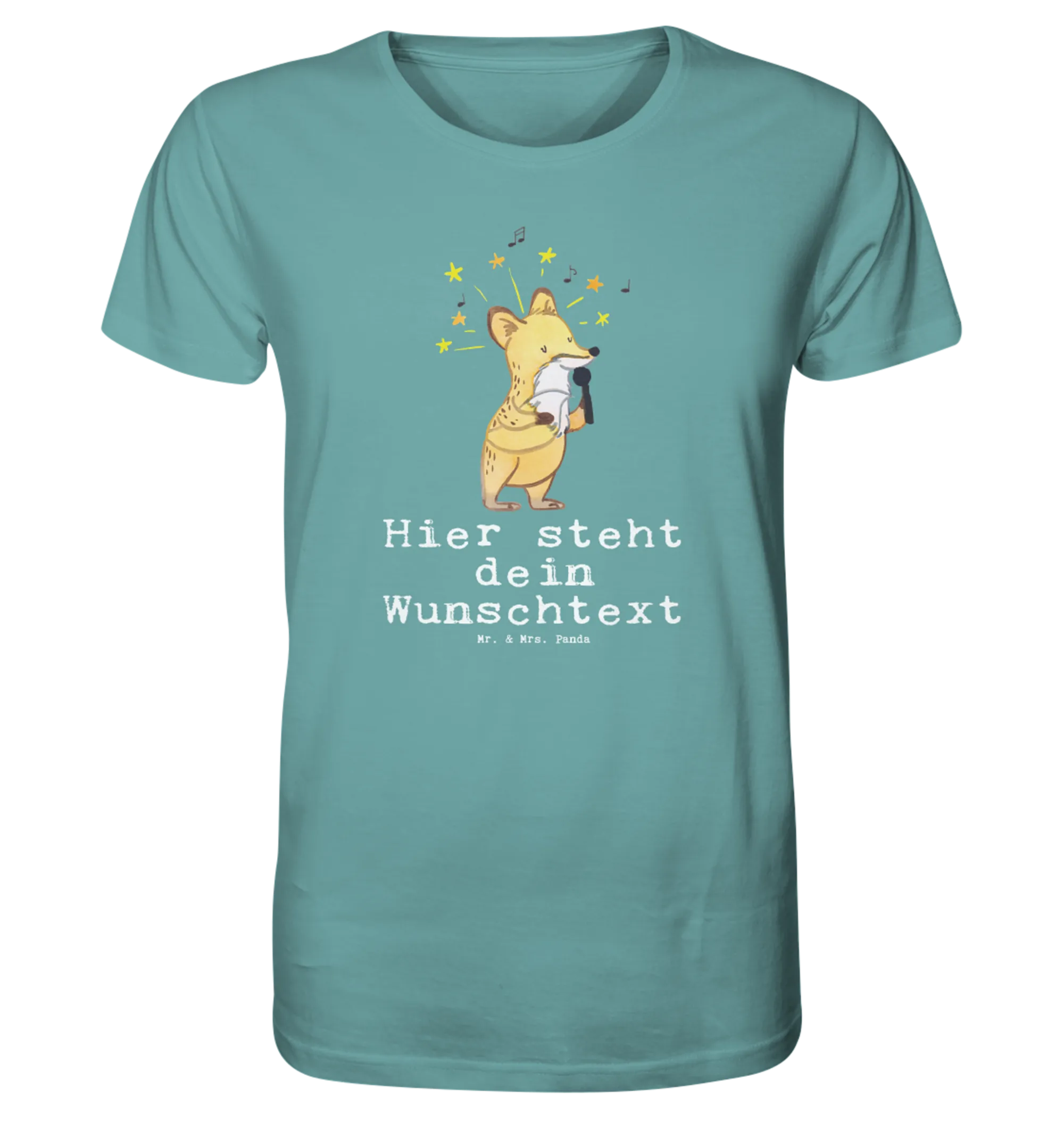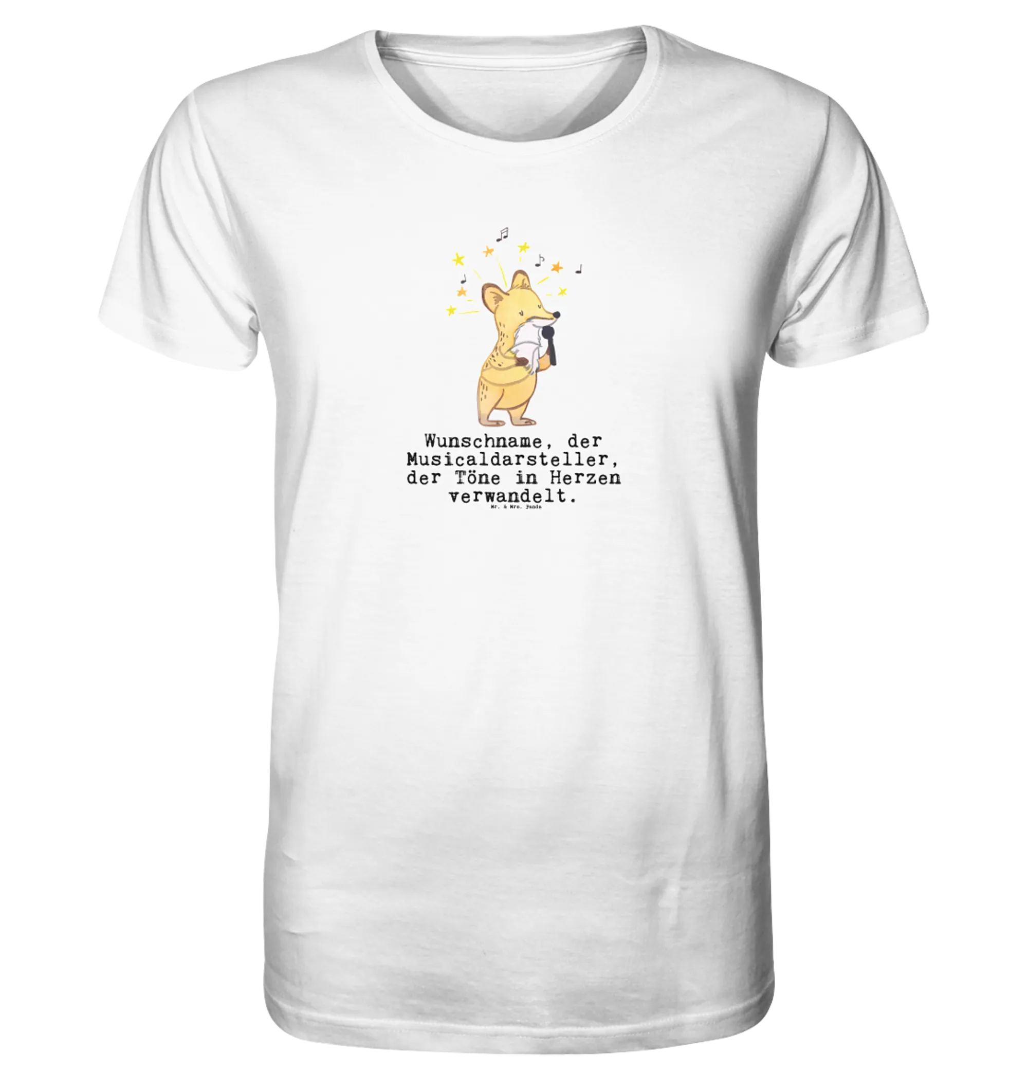 Das personalisierte Shirt Herren "Musicaldarsteller mit Herz" ist das perfekte Geschenk für jeden, der die Bühne liebt! Mit dem charmanten Motiv eines süßen Fuchses, der ein Mikrofon in der Hand hält und wundervoll singt, wird dieses Shirt zum absoluten Hingucker.