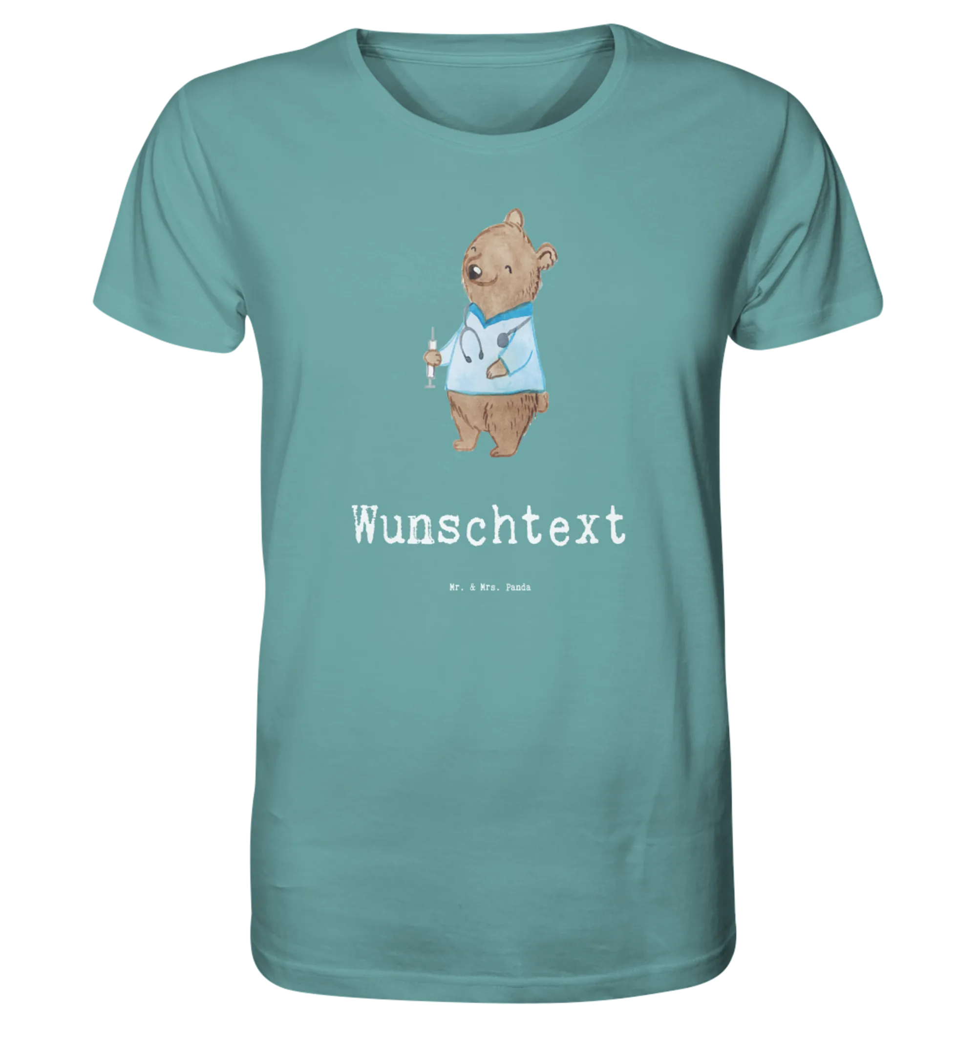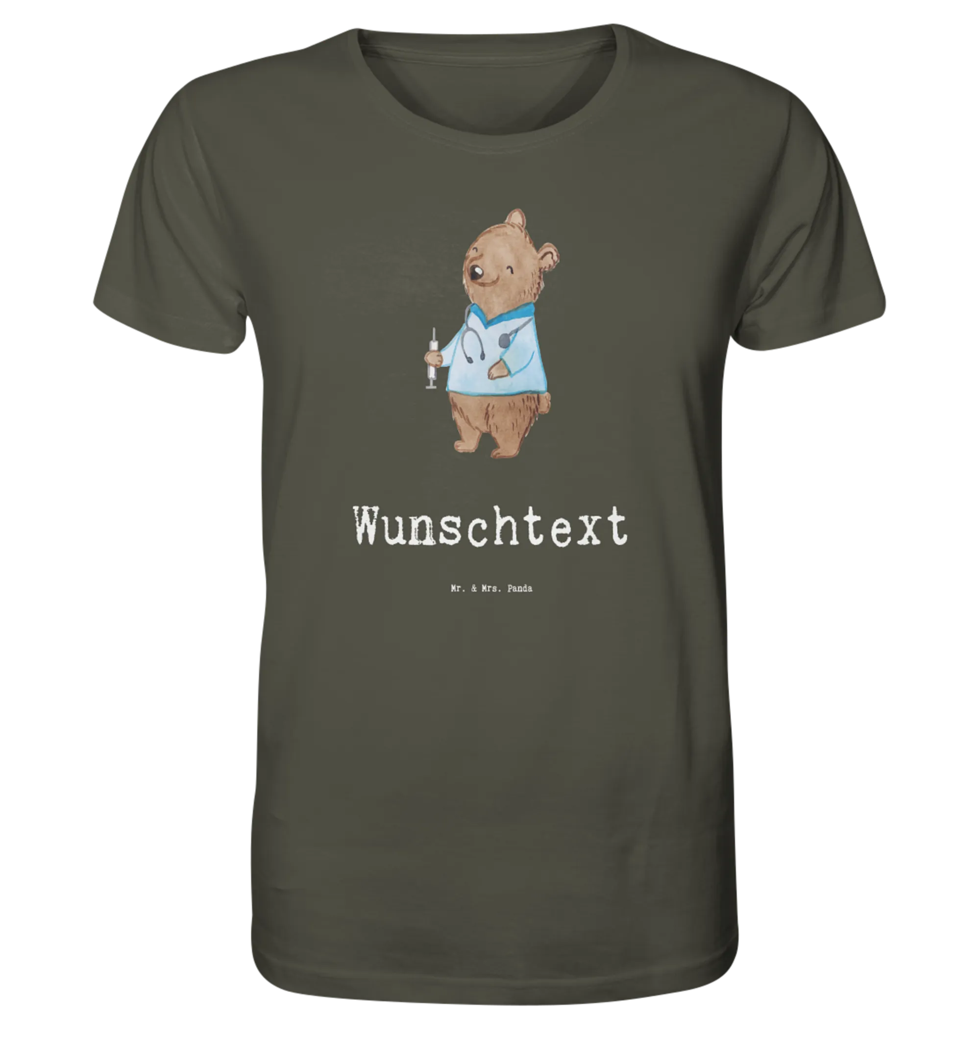 Das personalisierte Shirt Herren Anästhesist mit Herz ist das perfekte Geschenk für all jene, die im Bereich der Anästhesie tätig sind oder sich in der Ausbildung zum Anästhesisten befinden. Mit seinem charmanten Motiv, das einen liebevollen Bären zeigt, der einen weißen Kittel trägt und eine Spritze in der Hand hält, macht dieses T-Shirt nicht nur Spaß, sondern vermittelt auch Wertschätzung für den wichtigen Beruf des Anästhesisten.