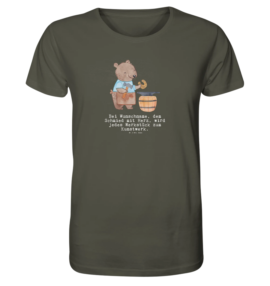 Das Personalisiertes Shirt Herren mit dem liebevollen Motiv 'Schmied mit Herz' aus der Berufe Kollektion von Mr. & Mrs. Panda ist das perfekte Geschenk für alle Schmiede und Schmiedinnen.