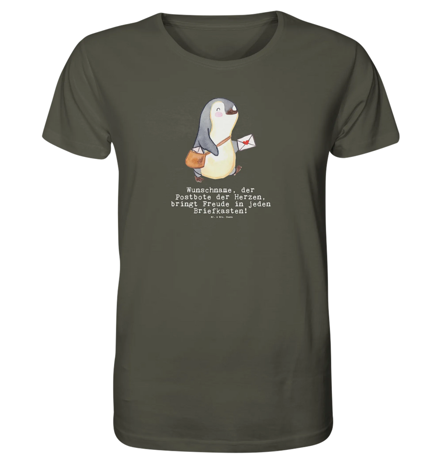 Bestelle jetzt dieses einzigartige T-Shirt und zaubere damit einem besonderen Menschen ein Lächeln ins Gesicht! Es eignet sich nicht nur für den Alltag, sondern kann auch als Schlafshirt oder Nachthemd getragen werden. Lass deine Wertschätzung bei jeder Gelegenheit durchscheinen und verschenke ein Stück Freude – mit dem personalisierten Shirt Herren 'Postbote mit Herz' von Mr. & Mrs. Panda!
