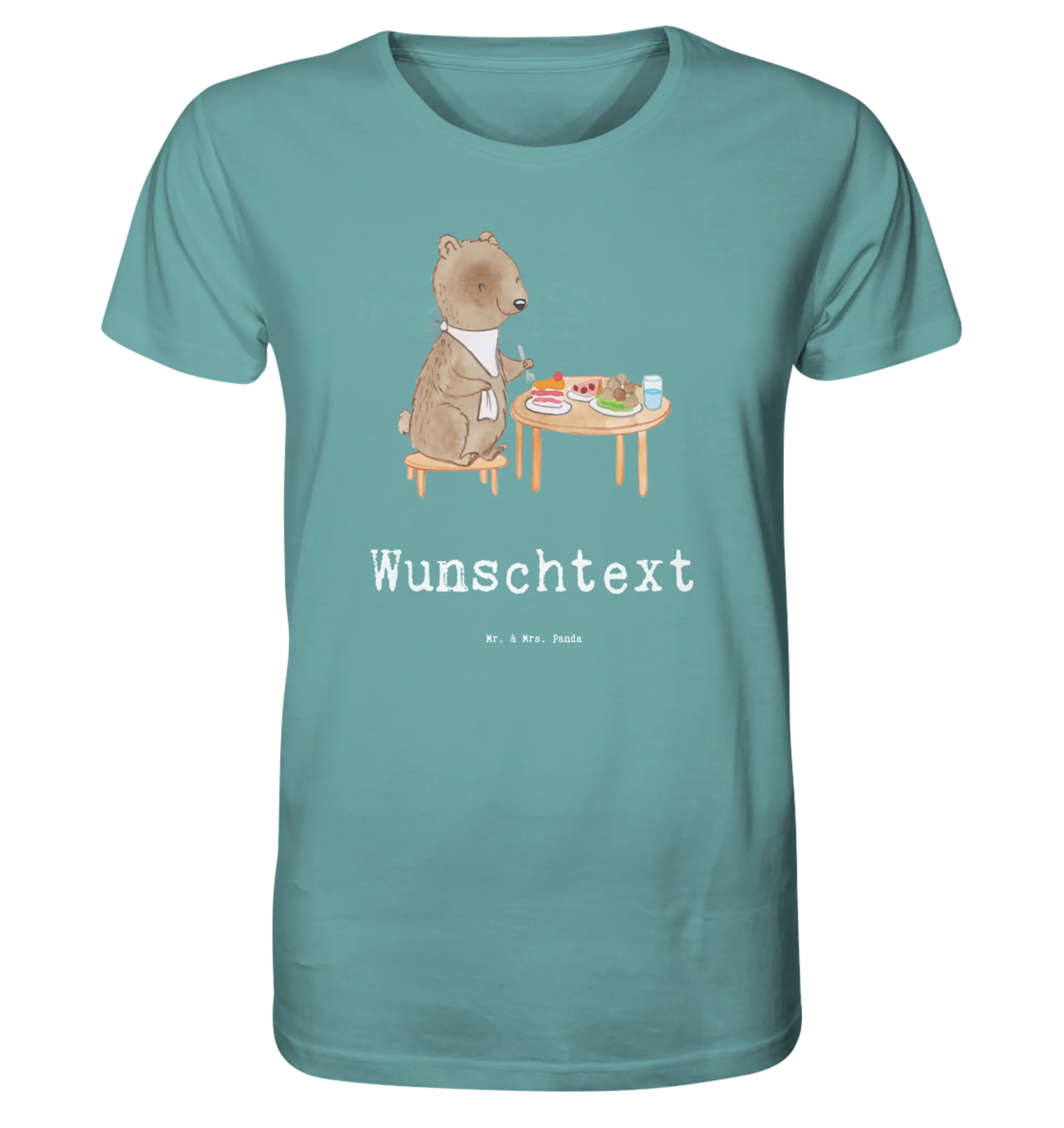 Ihr fröhliches Design macht es leicht, sich beim Essen und Feiern wohlzufühlen und sorgt dafür, dass du stets im Mittelpunkt der Aufmerksamkeit stehst. Mit einem personalisierten T-Shirt zeigst du nicht nur deinen eigenen einzigartigen Stil, sondern unterstützt auch die Kunst der Handarbeit mit viel Liebe zum Detail von Mr. & Mrs. Panda. Hol dir dieses tolle Shirt und zeige jedem, dass du ein wahres Gourmet-Herz hast!