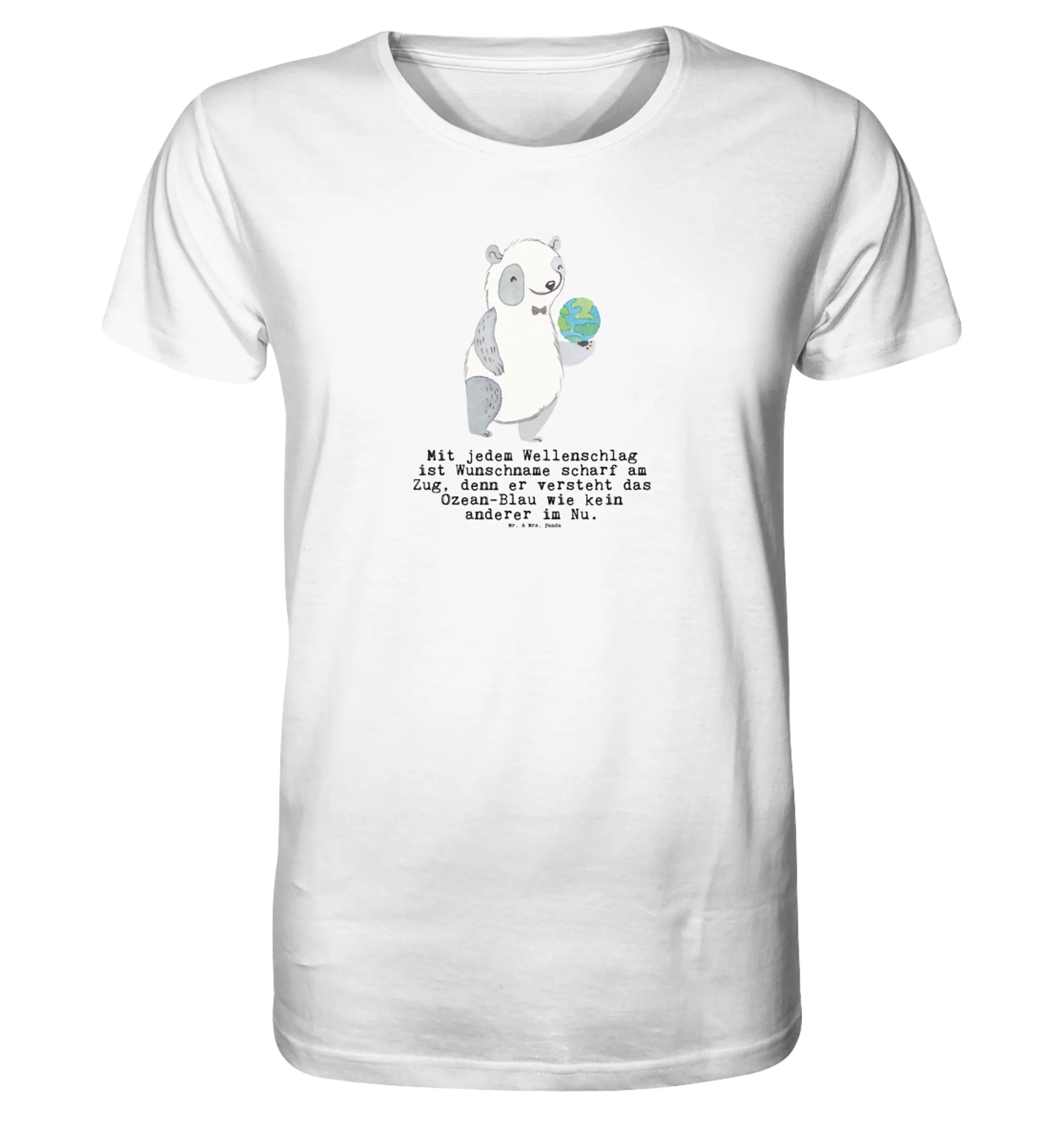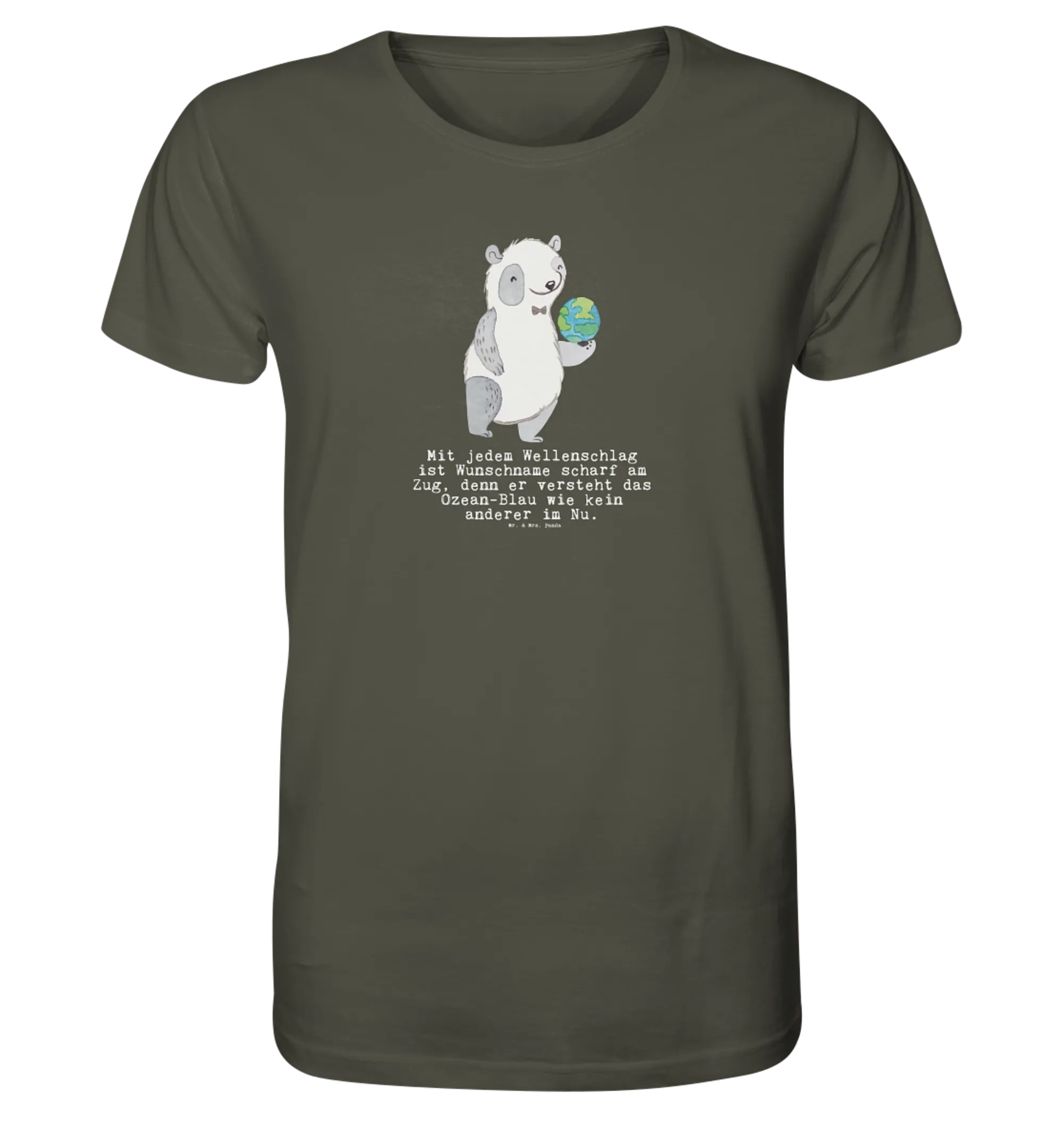Entdecke das perfekte Geschenk für Ozeanografen und Meeresbiologen mit unserem personalisierten Shirt Herren 'Ozeanograf mit Herz'. Dieses T-Shirt aus 100% Baumwolle ist nicht nur bequem zu tragen, sondern auch ein wahres Kunstwerk! Handgezeichnet von Mrs. Panda, zeigt das Motiv einen süßen Panda, der eine Weltkugel hält – eine liebevolle Hommage an die maritime Forschung und das Studium des Ozeans.