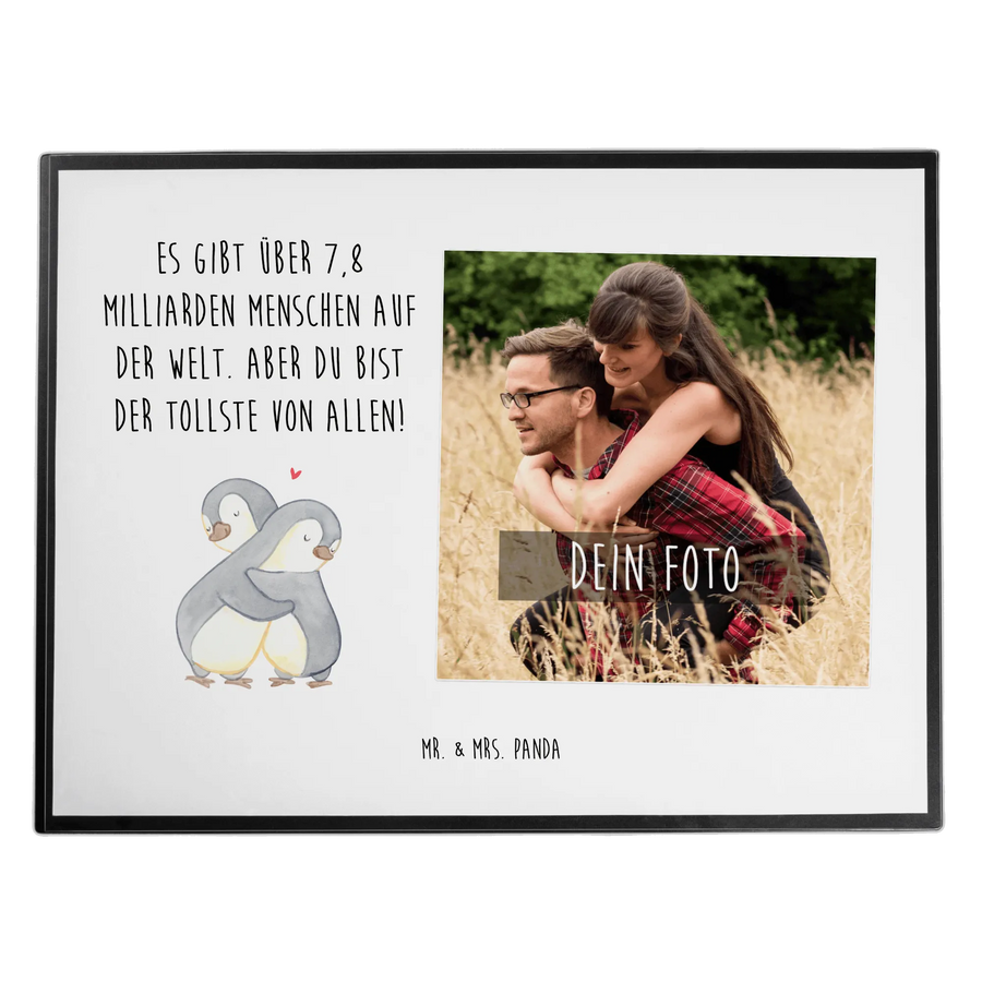 Die perfekte Geschenkidee für deine Liebsten! Mit unserer personalisierten Foto Schreibtischunterlage mit dem Motiv "Pinguine Kuscheln" aus der Liebe Kollektion von Mr. & Mrs. Panda bringst du ein Stück Zuneigung und Geborgenheit auf jeden Arbeitsplatz. Ob zum Valentinstag, zum Jahrestag oder als liebevolles Mitbringsel zum Geburtstag – diese Unterlage schafft nicht nur Ordnung, sondern zaubert auch täglich ein Lächeln ins Gesicht deiner Freundin, deines Partners oder Ehemannes.