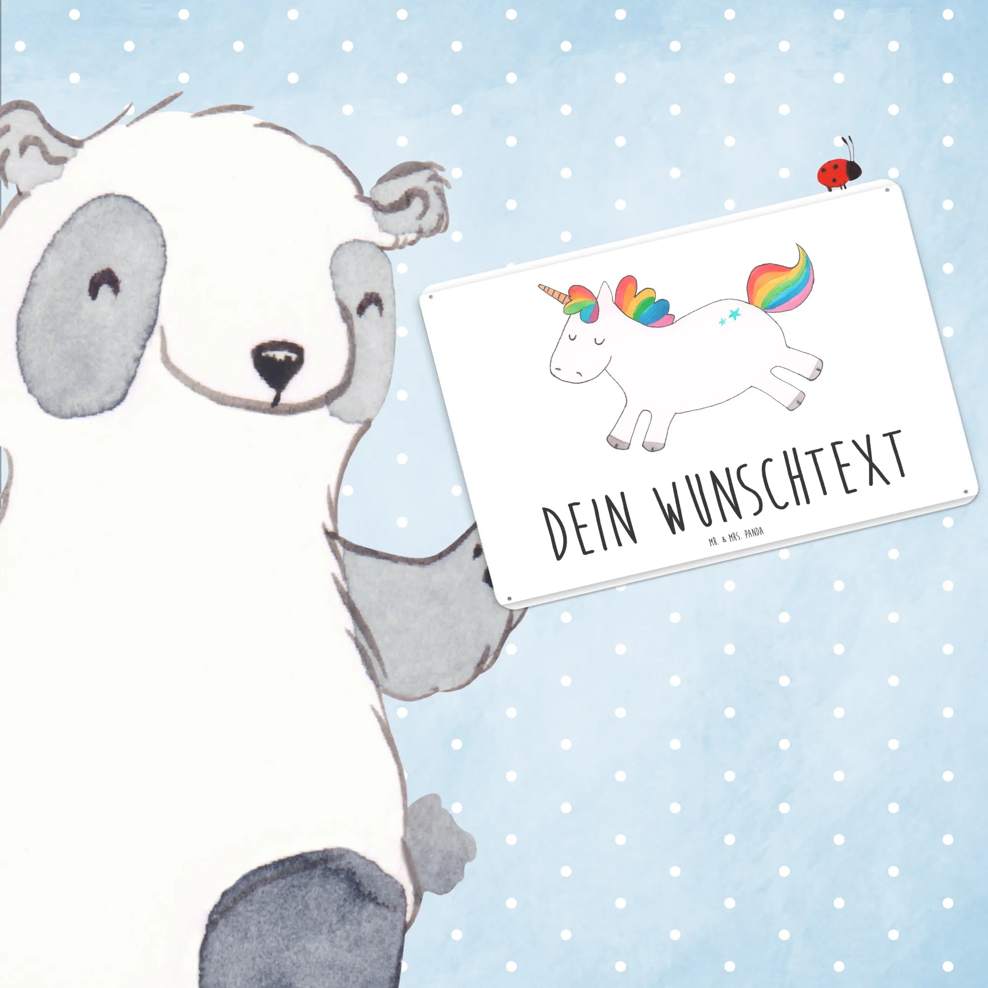 Das personalisierte Blechschild "Einhorn Happy" von Mr. & Mrs. Panda ist der perfekte Begleiter für alle, die Freude und Lebensfreude ausstrahlen möchten. Mit seinem liebevoll handgezeichneten Motiv zeigt das süße Einhorn seine bunte Seite und bringt jedes Herz zum Lächeln. Ob für das eigene Zuhause oder als Geschenk - dieses Schild ist ein echter Hingucker und sorgt garantiert für gute Laune!