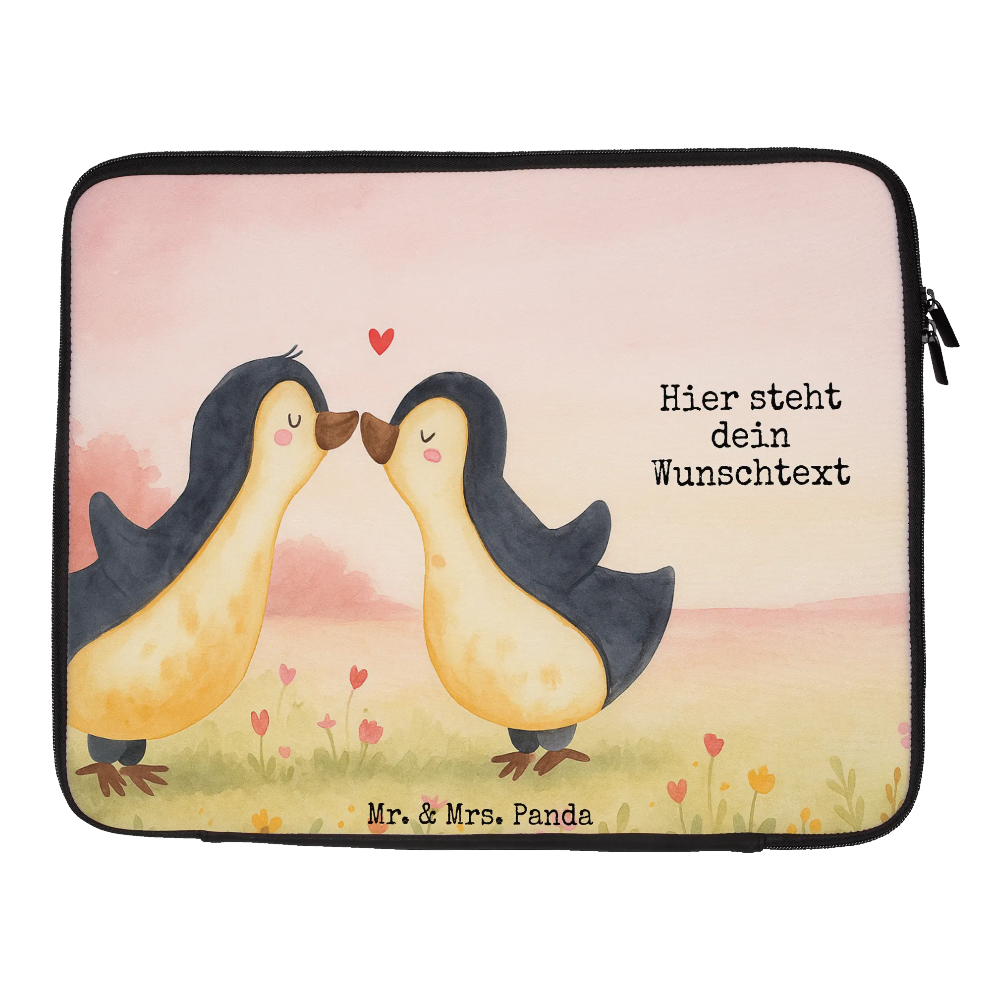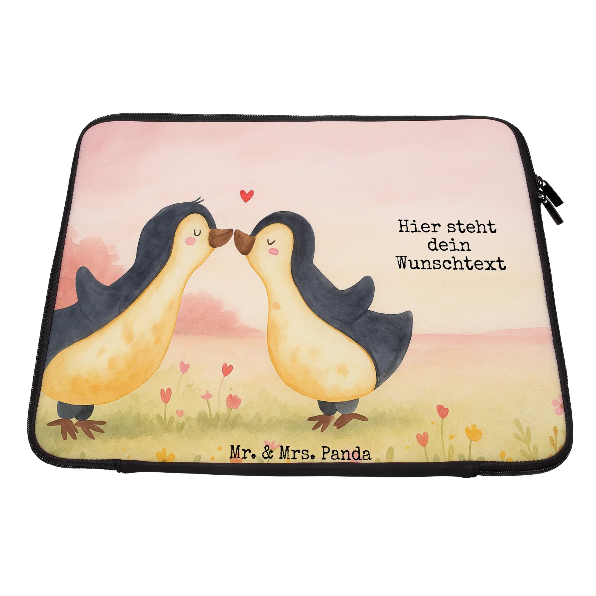 Personalisierte Notebook Tasche Pinguine Kuss Design – Mr. & Mrs. Panda