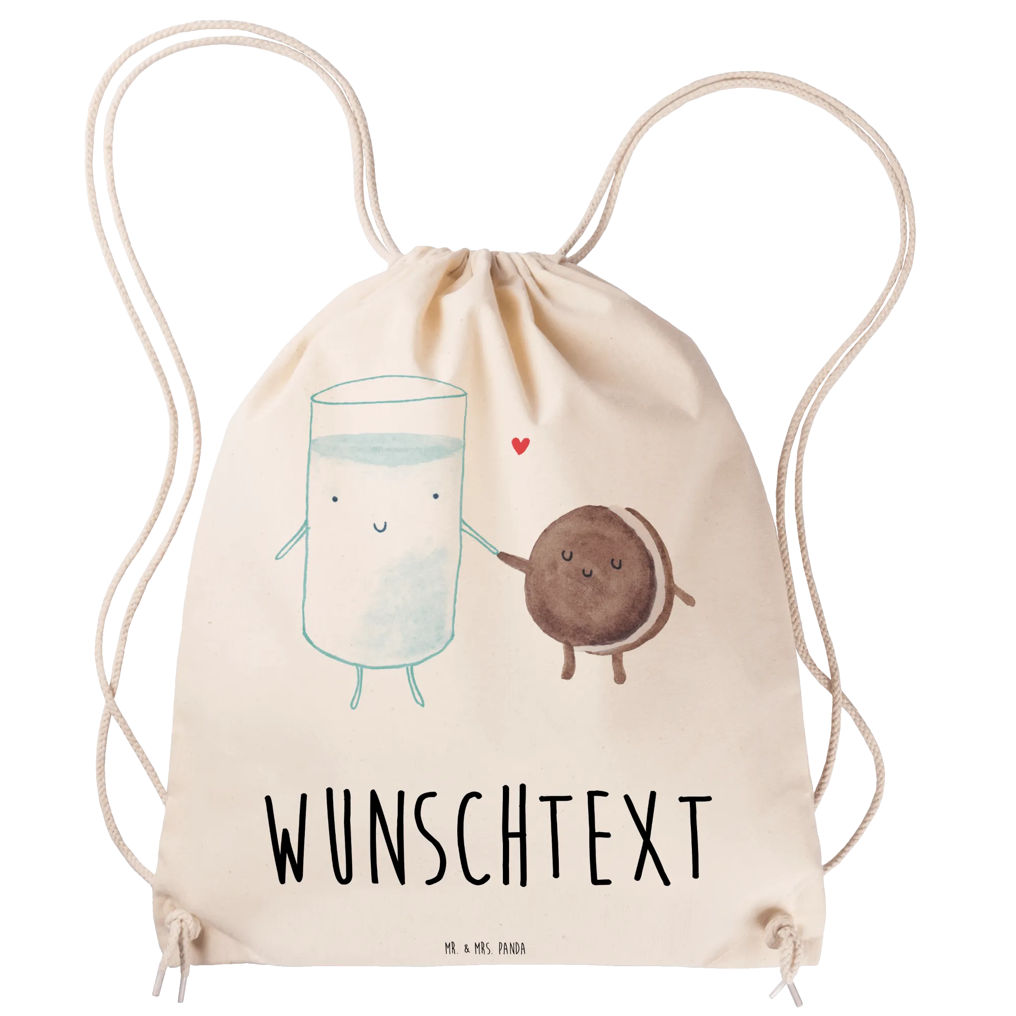 Du bist auf der Suche nach einem ganz besonderen Geschenk für Freunde, Familie oder einfach für dich selbst? Dann ist unser personalisierter Sportbeutel "Milch & Keks" aus der zauberhaften Small World Kollektion von Mr. & Mrs. Panda genau das Richtige! Diese süße Sporttasche begeistert mit ihrem niedlichen Design, das ein Glas Milch und einen Keks zeigt, die Händchen halten und ein Lächeln in dein Gesicht zaubern. Das Motiv ist perfekt für alle Naschkatzen und verleiht jedem Alltag einen fröhlichen Touch.