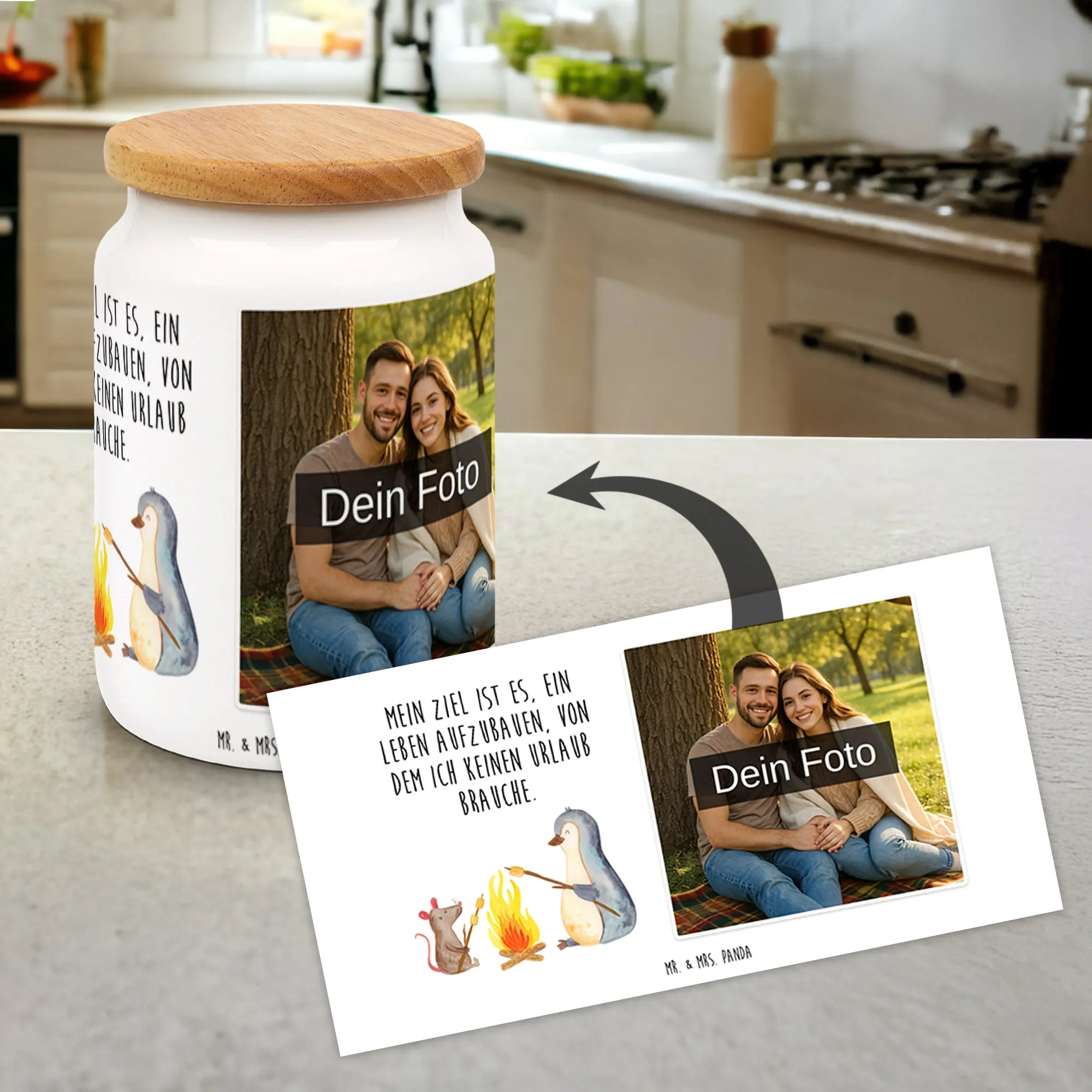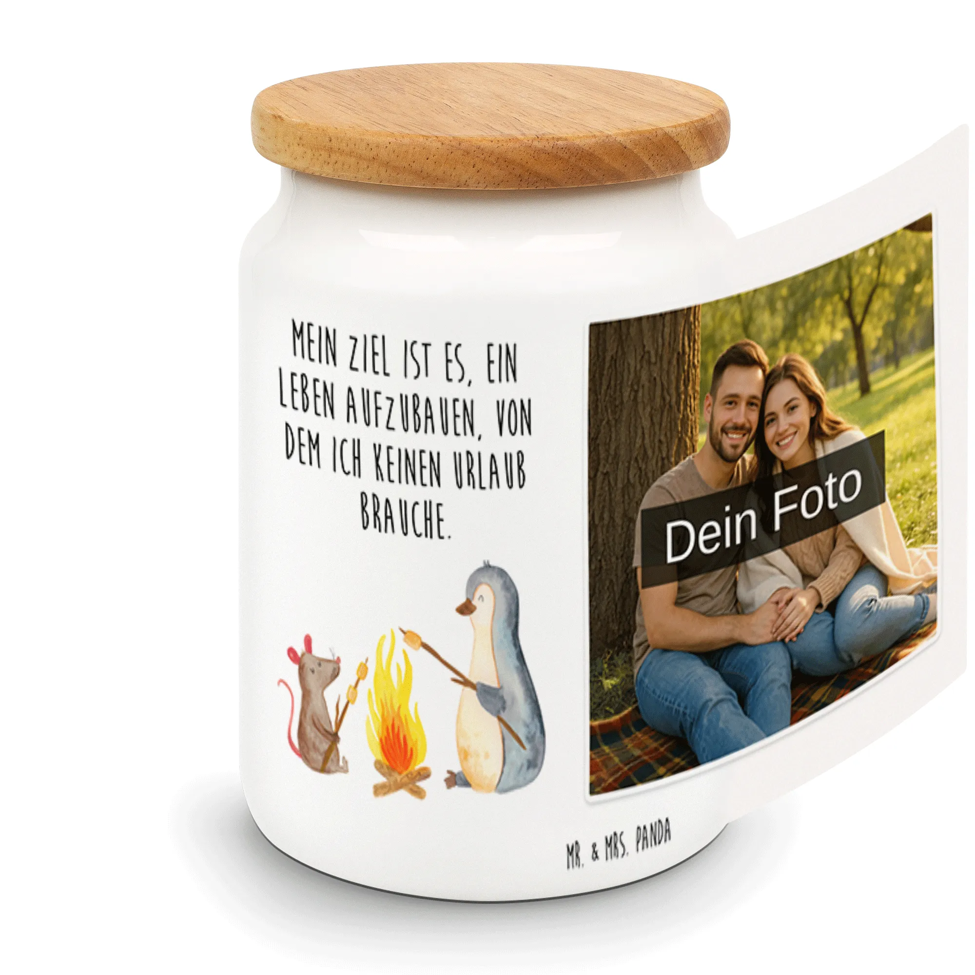 Personalisierte Foto Vorratsdose Pinguin Lagerfeuer